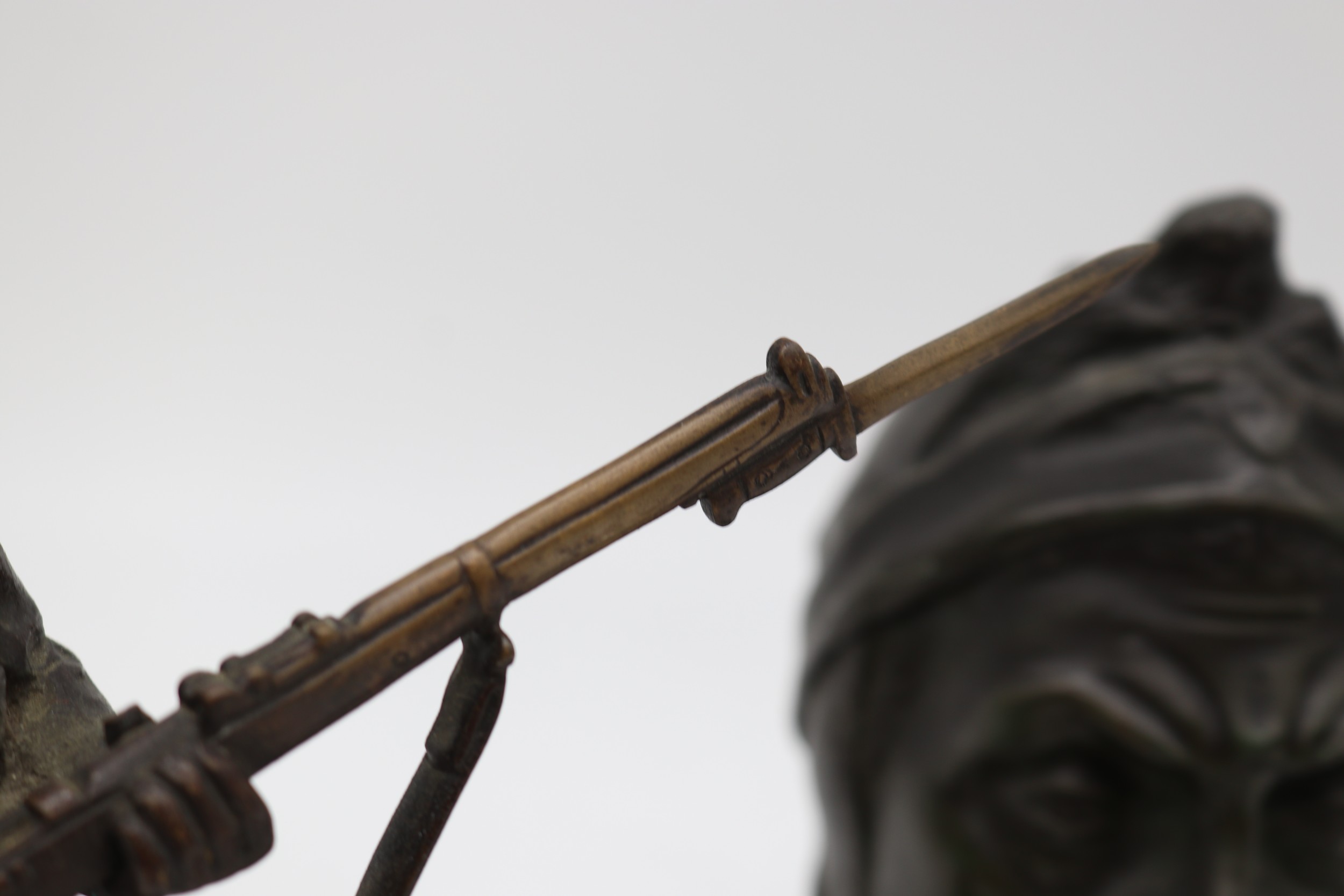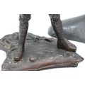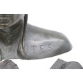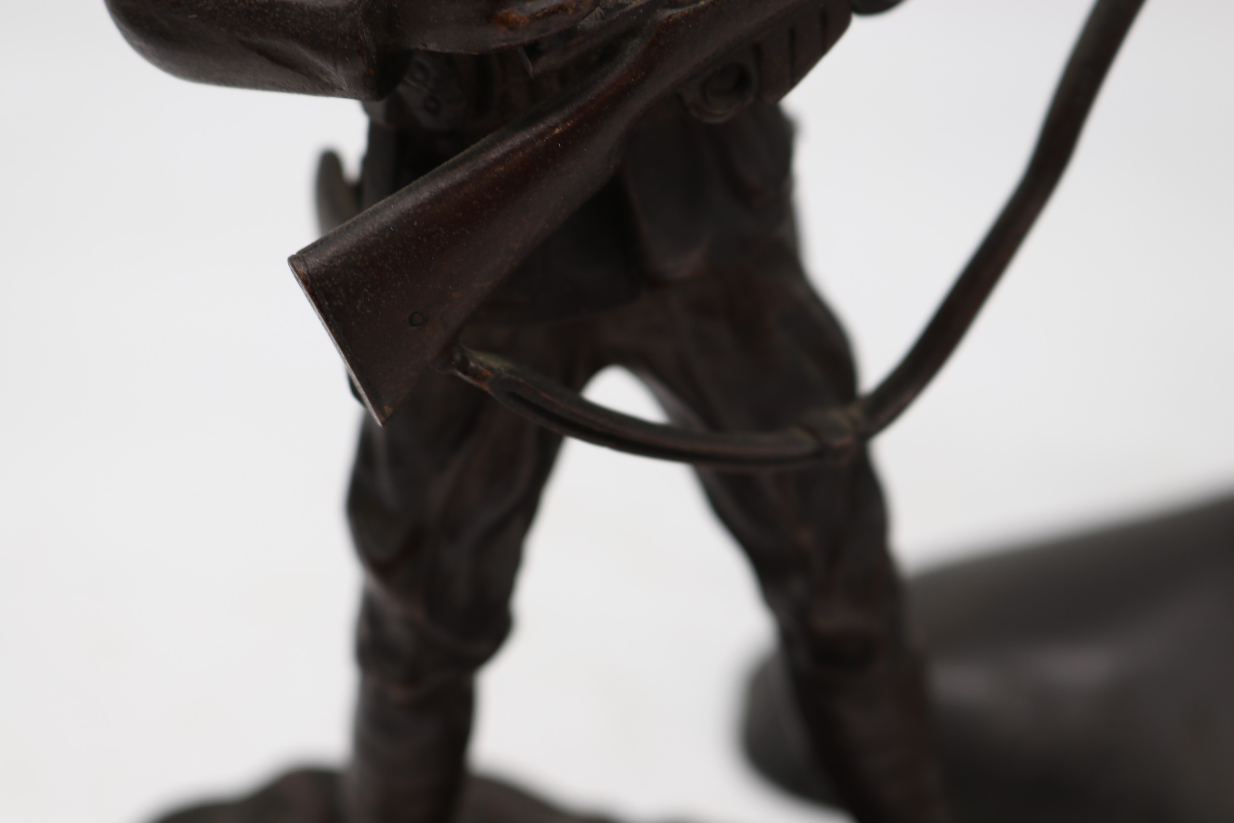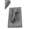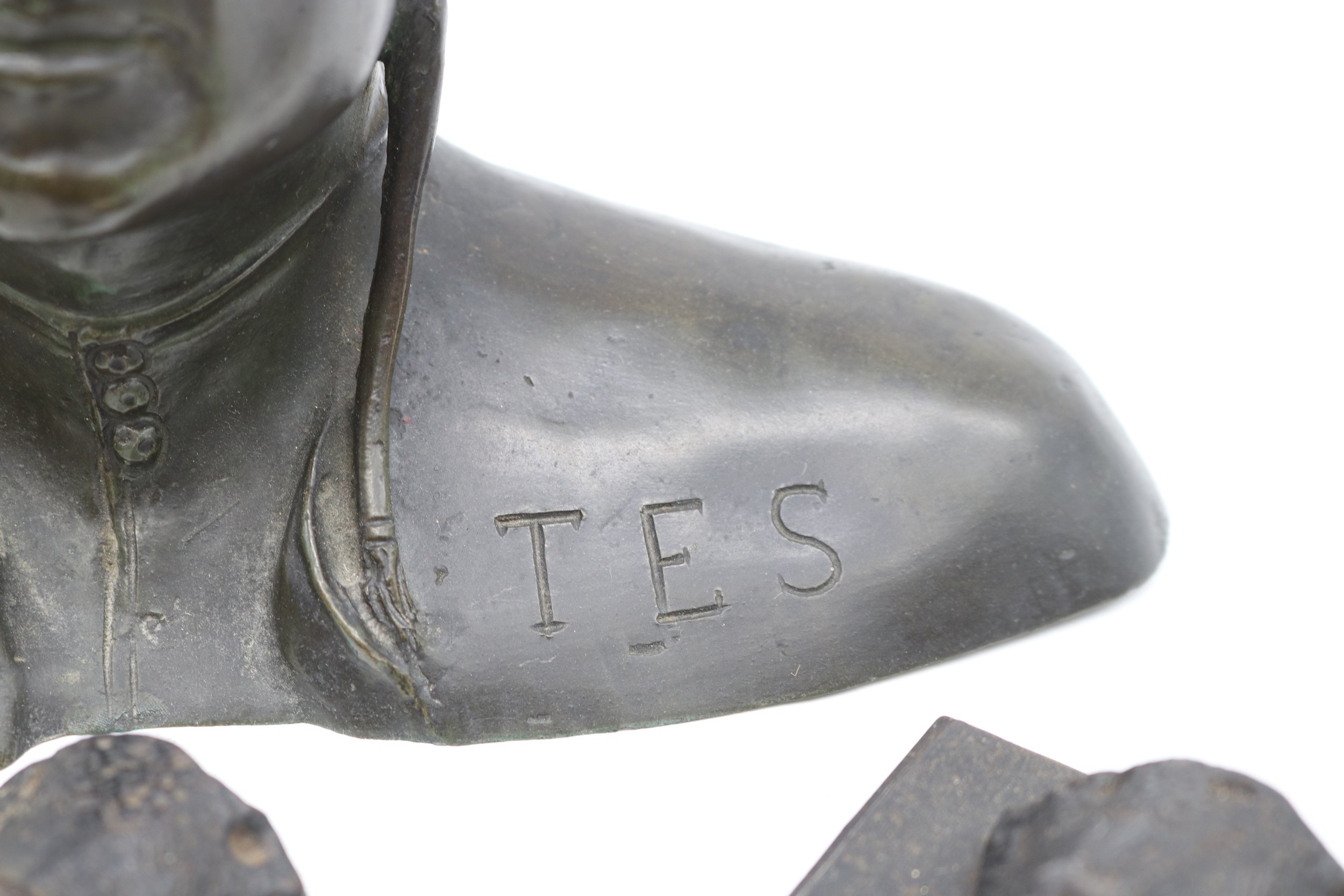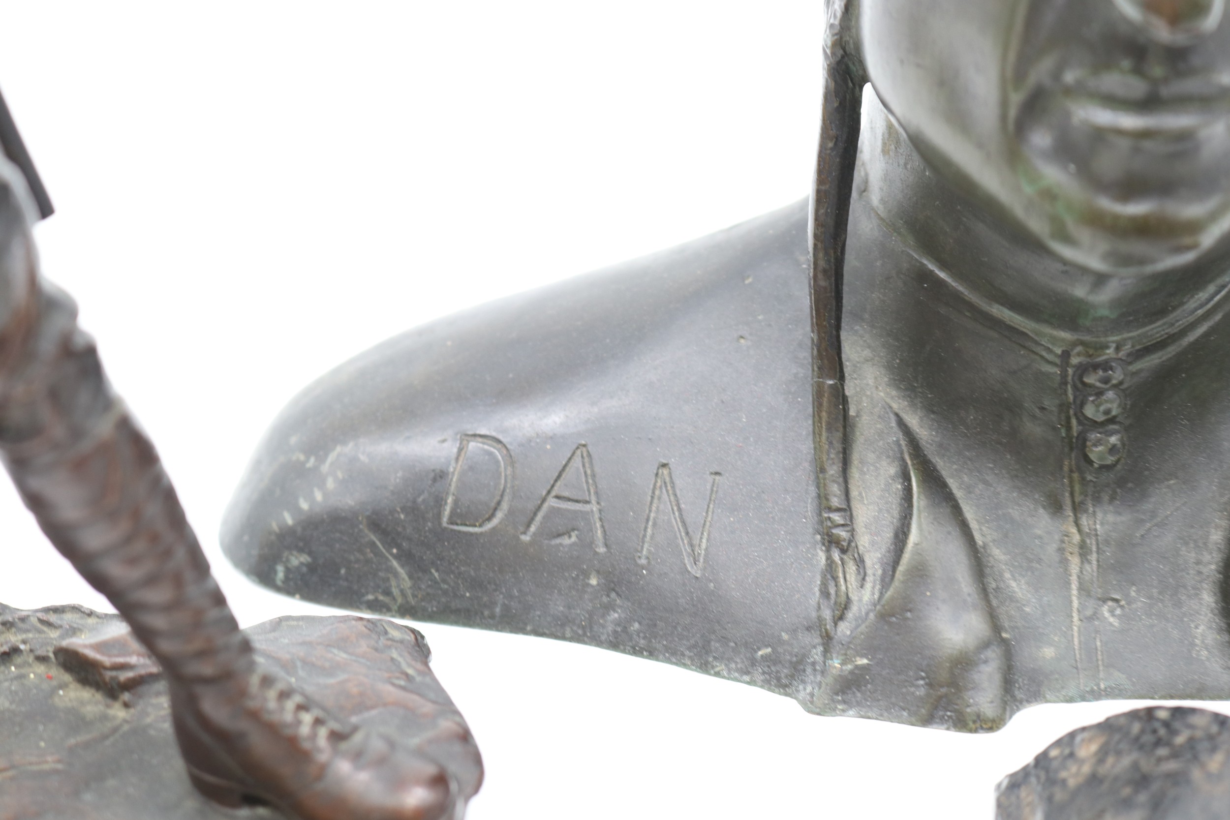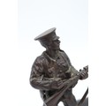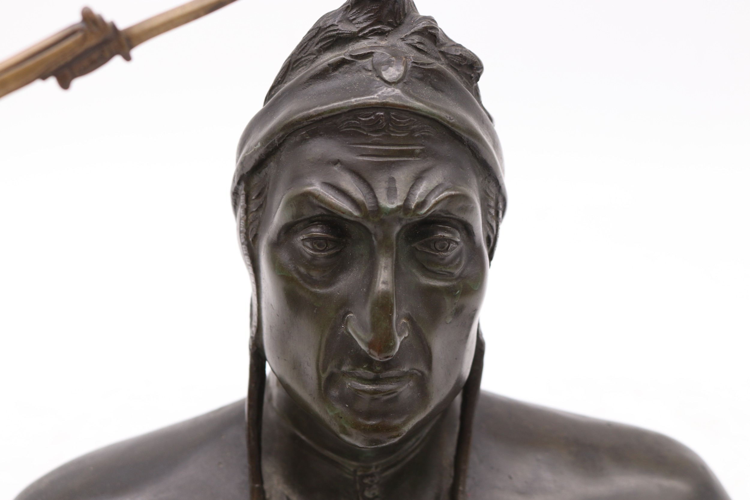 Bronzes, cast bronze First World War soldier, hollow bronze 'dantes' bust, and bronze hand on on plinth and bronze hand (4)