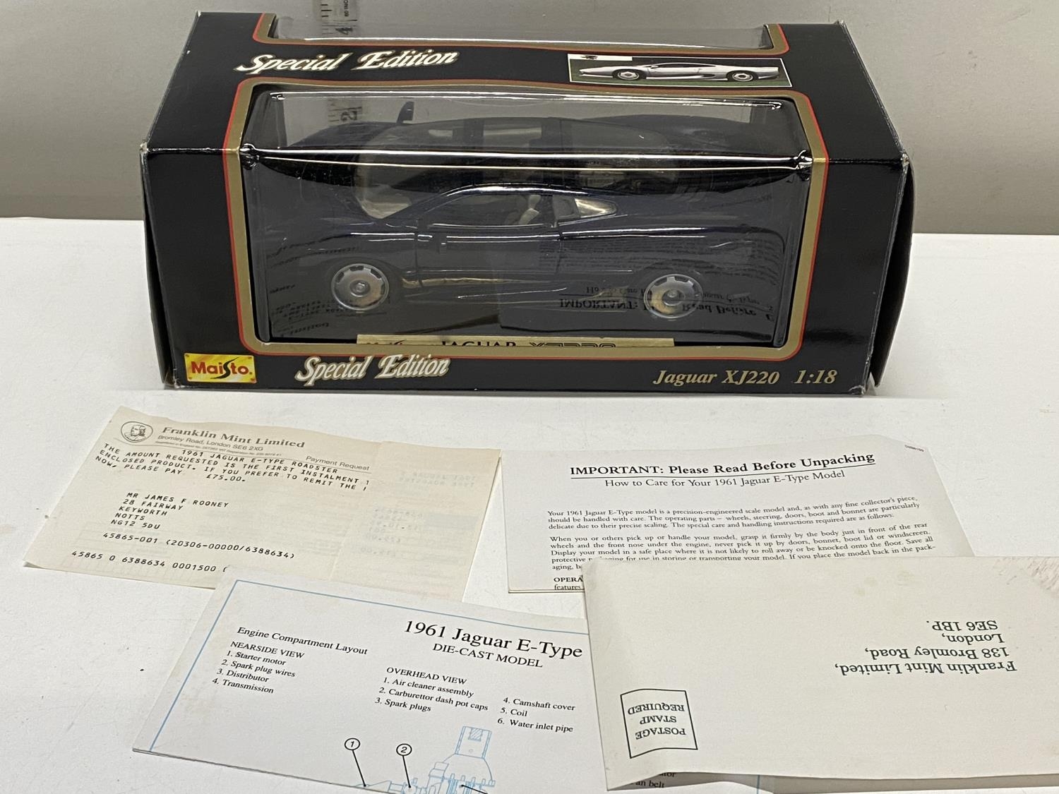 A boxed limited edition Maisto die-cast E type Jaguar model