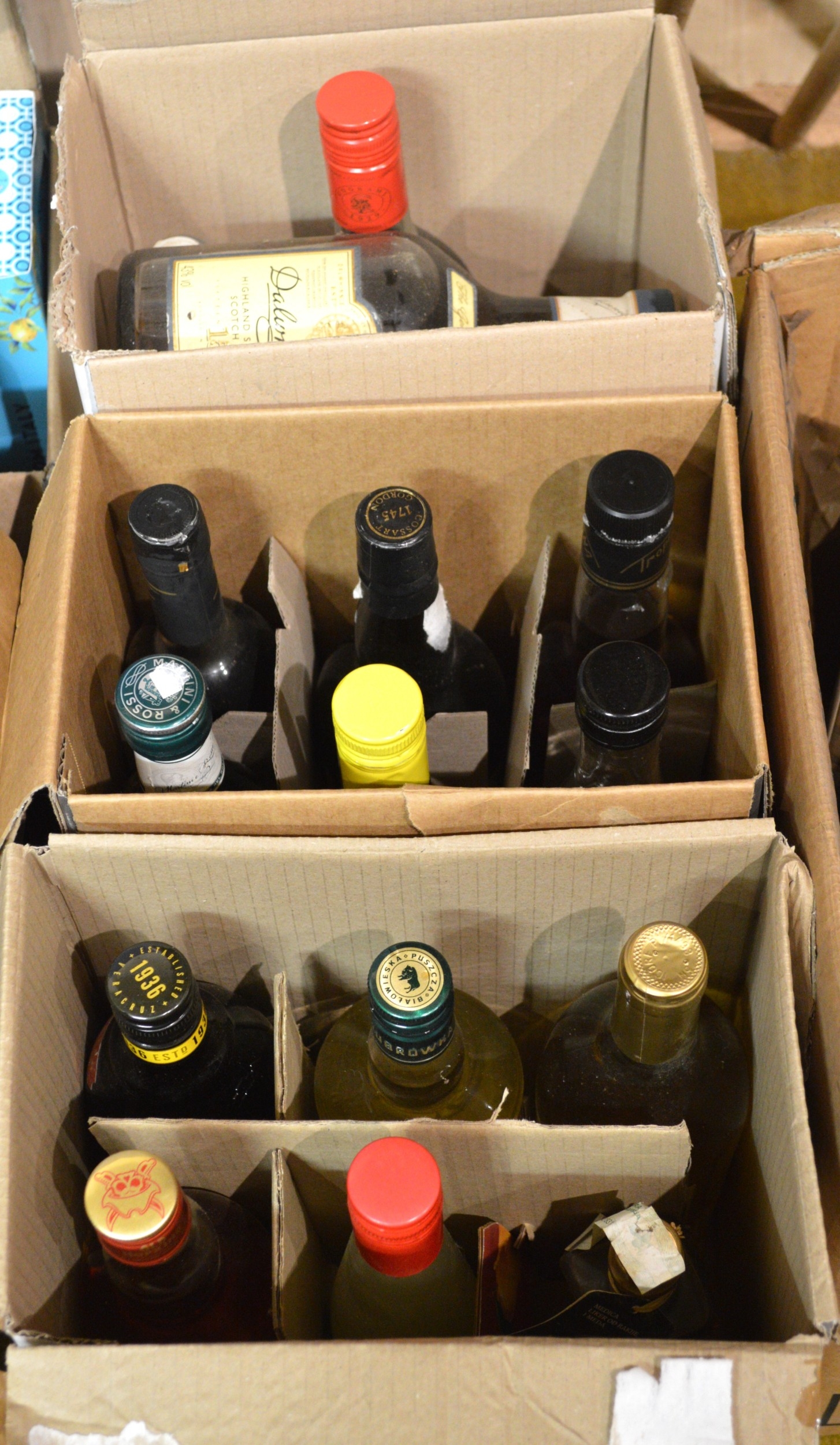 One bottle Dalwhinnie single malt Scotch whisky together with three boxes containing a quantity of miscellaneous liqueurs and spirits
