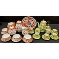 Japanese egg shell tea set including a three piece Kutani egg shell, a lime green coffee set including, a coffee pot, milk jug, sugar pot, six coffee cups and saucers.