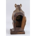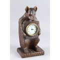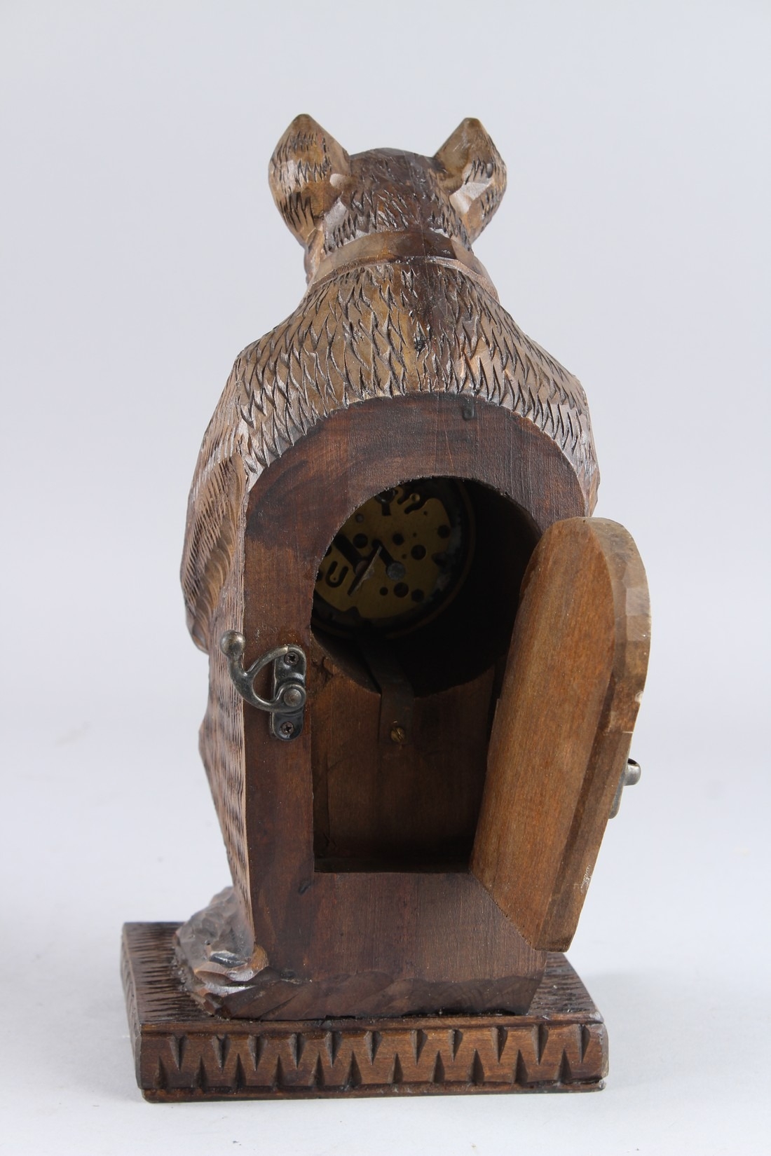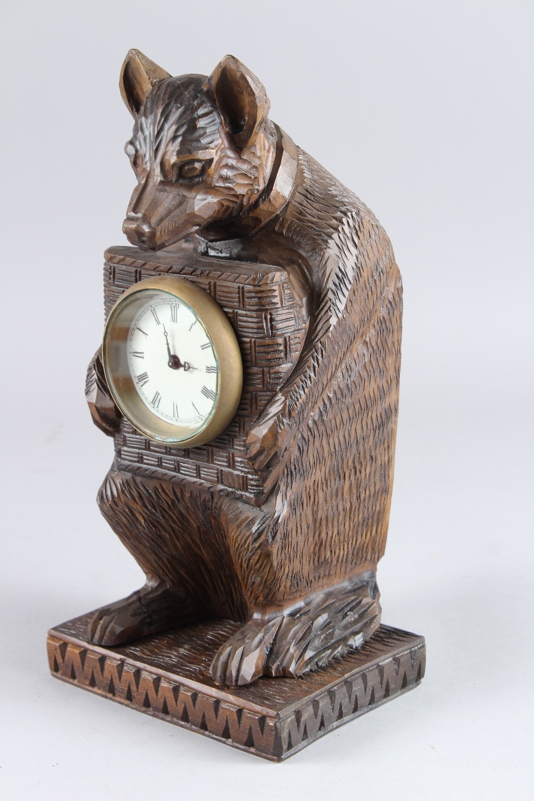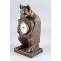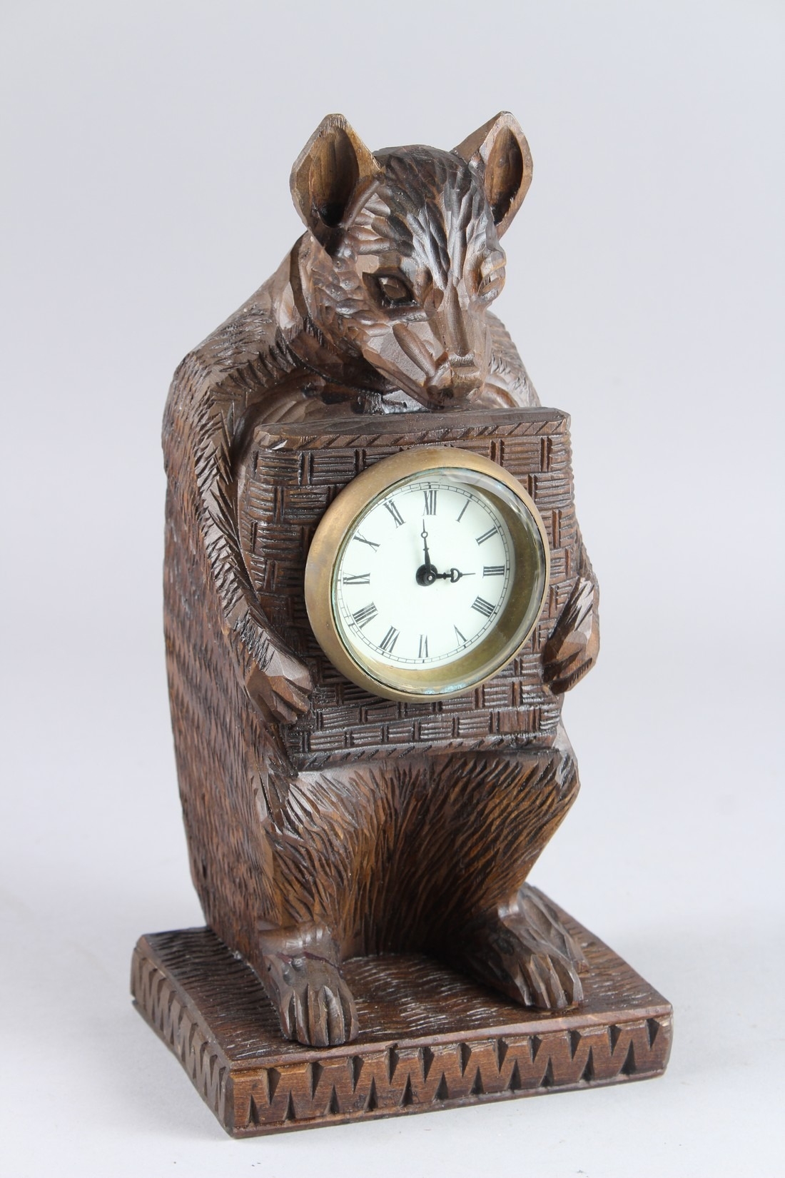 A BLACK FOREST STYLE CARVED WOOD BEAR MANTLE CLOCK. 12ins high.