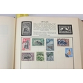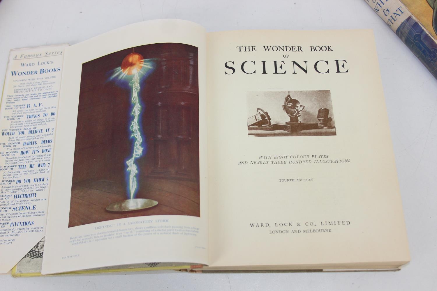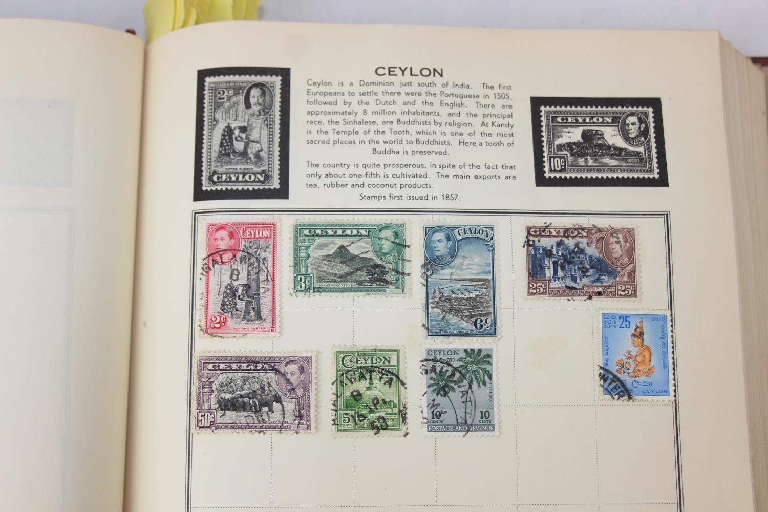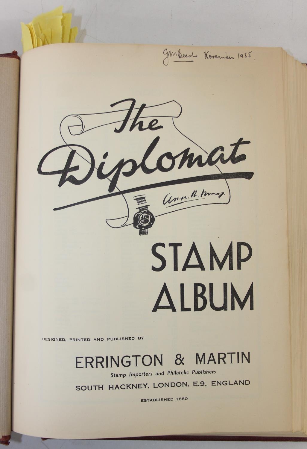 A mid-century Diplomat stamp album with a large qty of assorted mixed world stamps and two vintage Wonder Books, Science & Why & What [3]