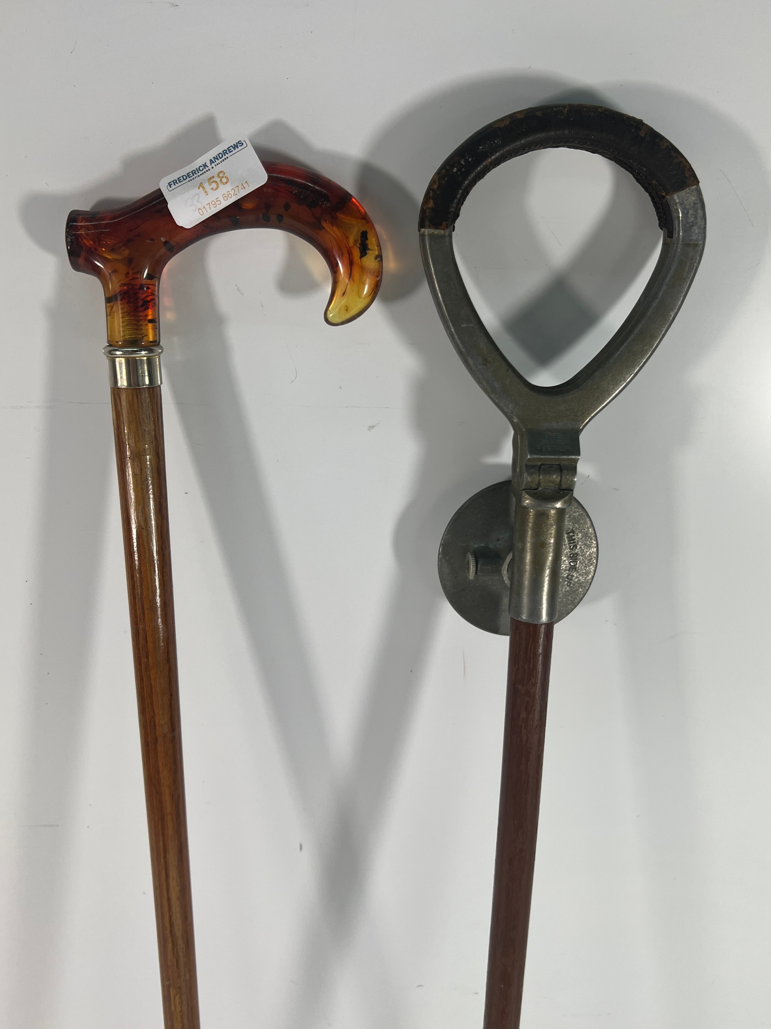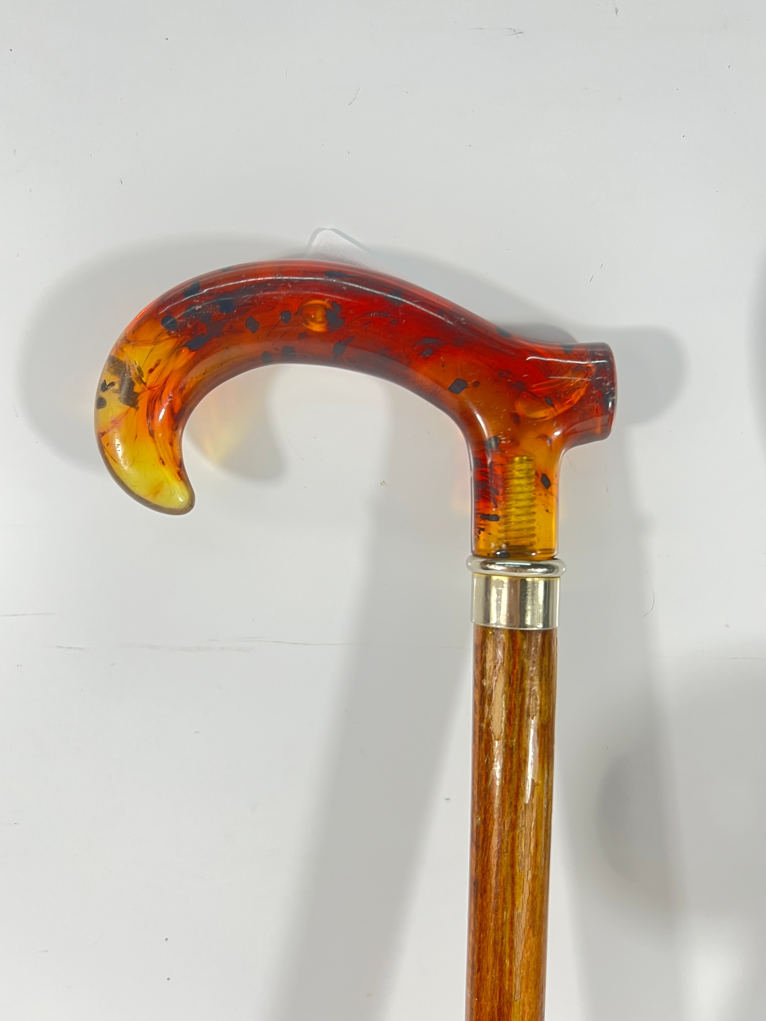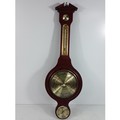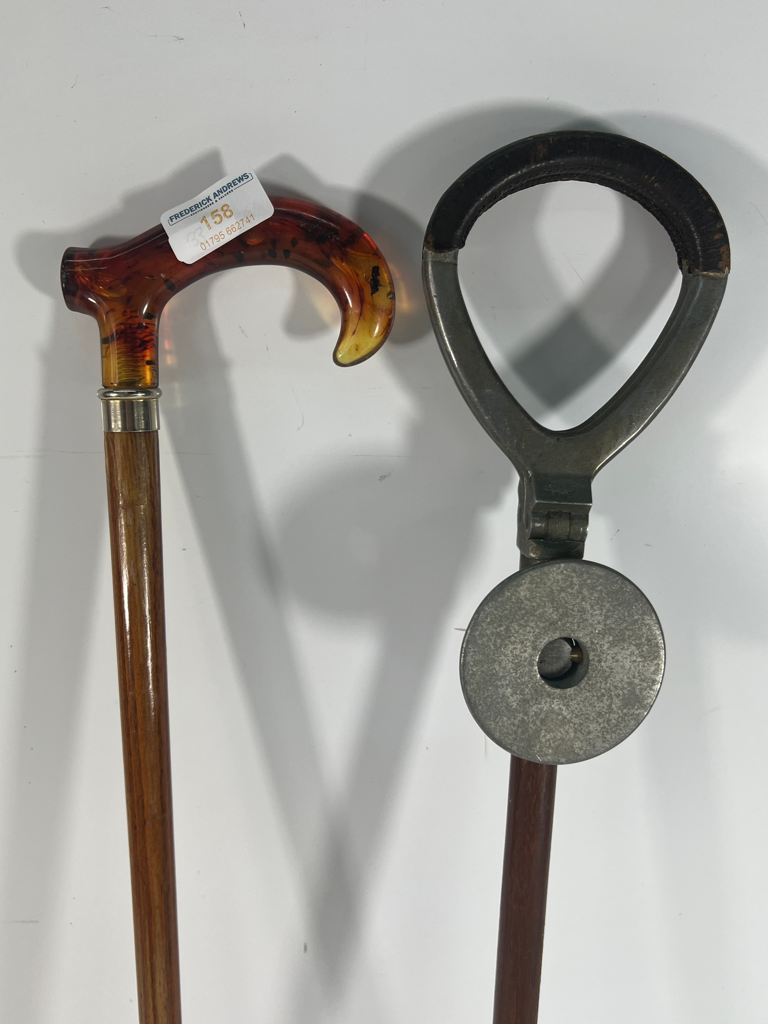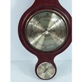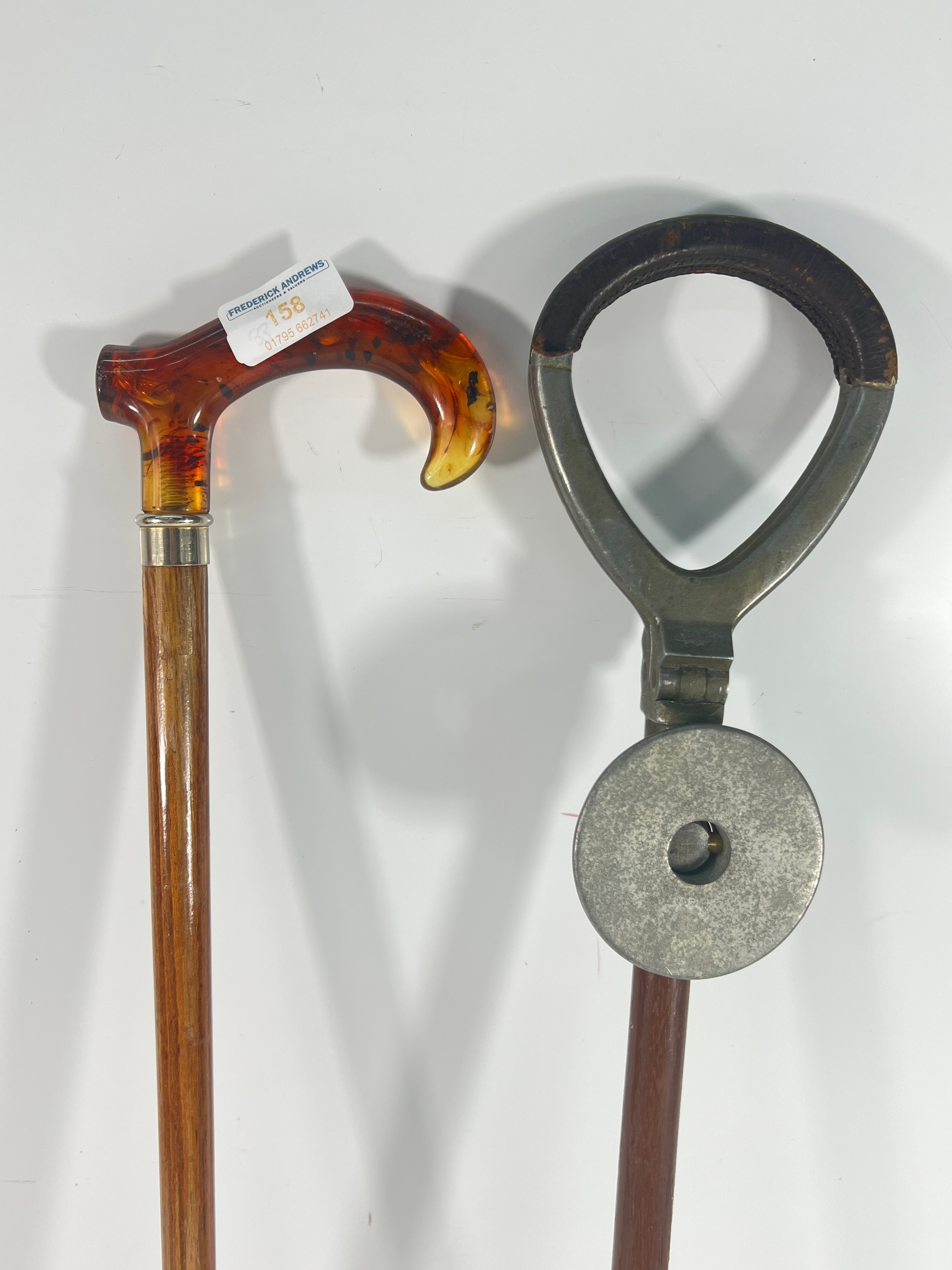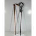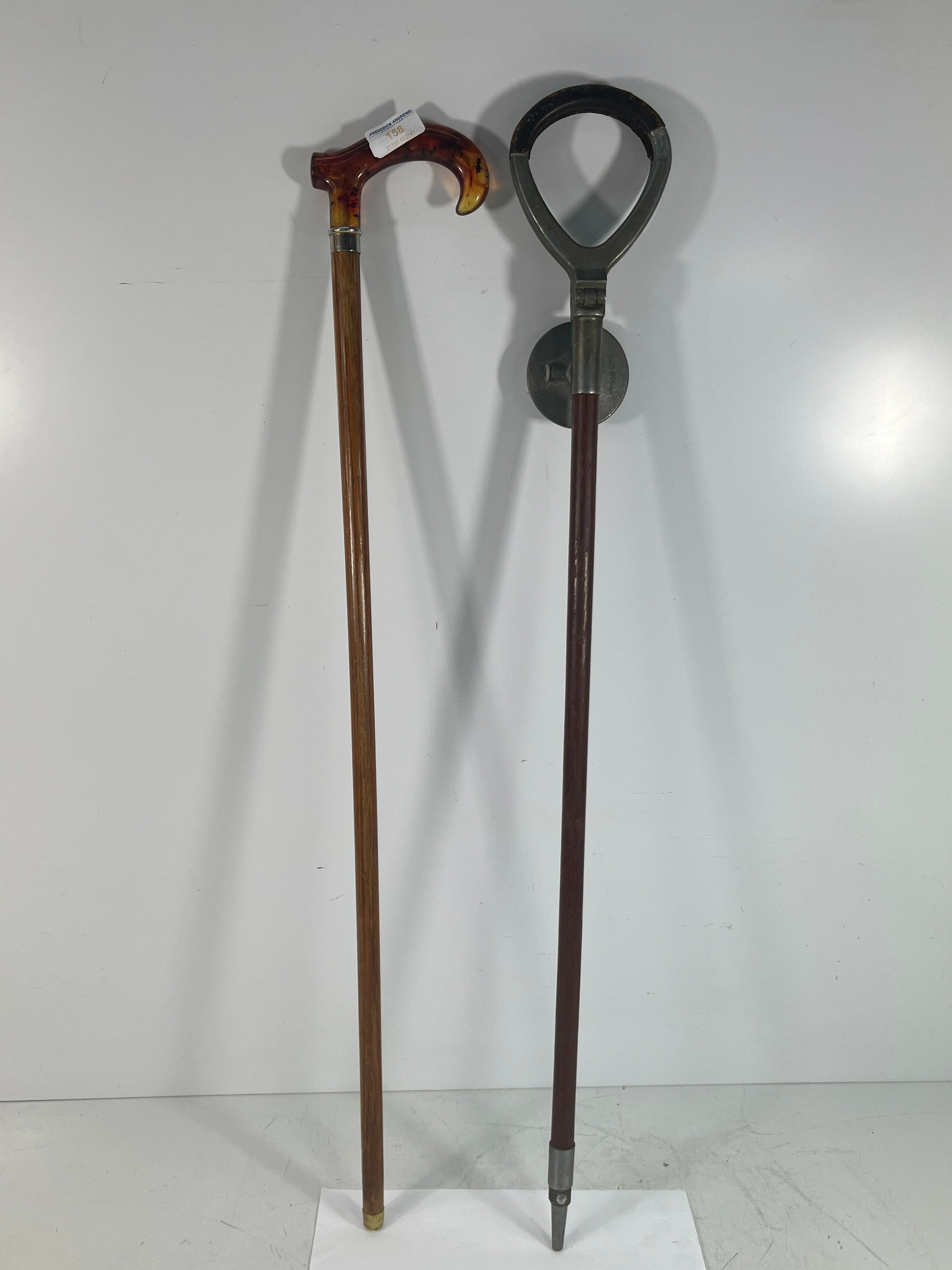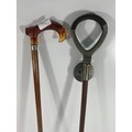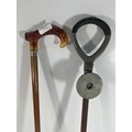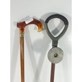 Shooting stick, walking stick and a wooden cased banjo barometer