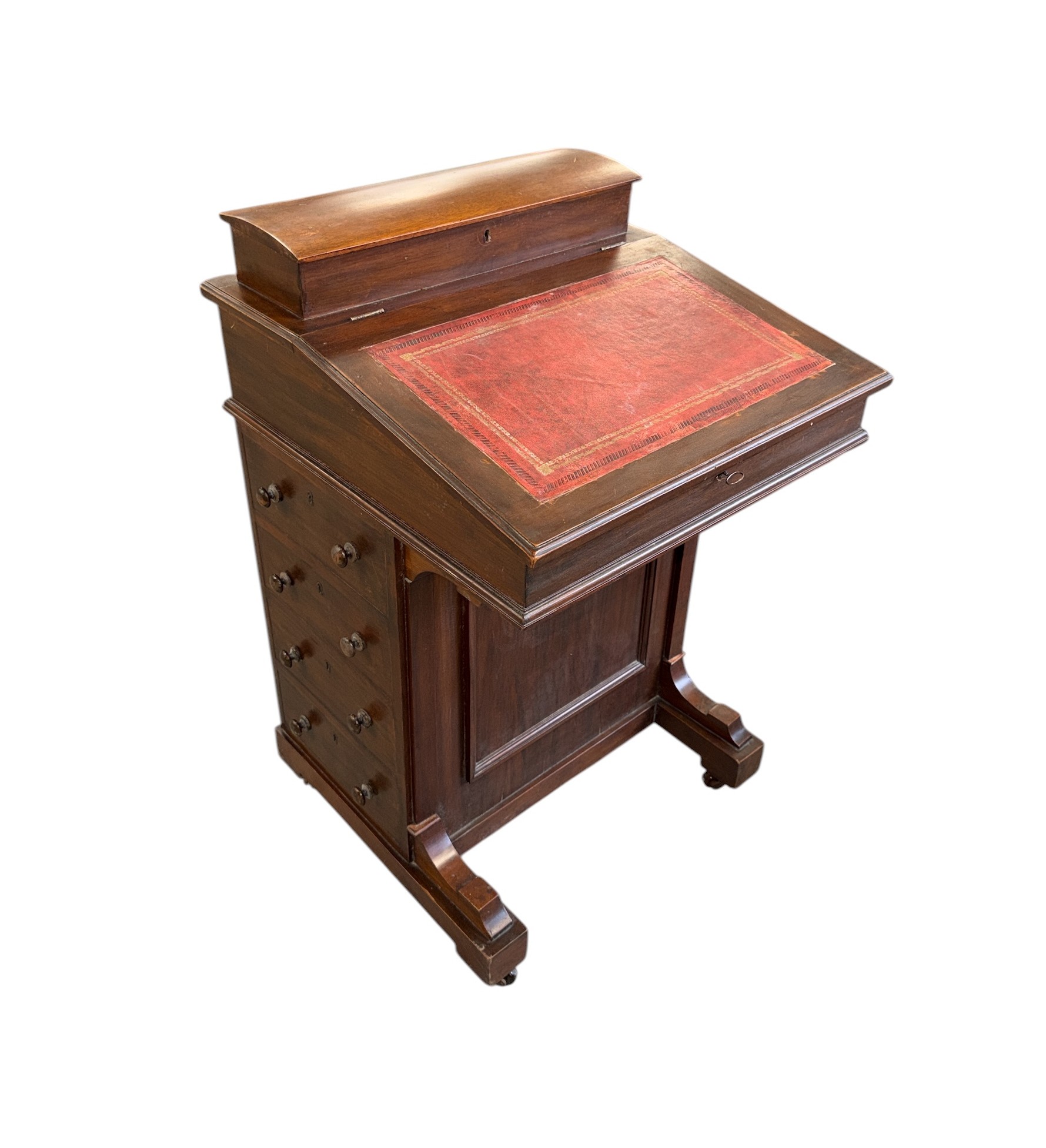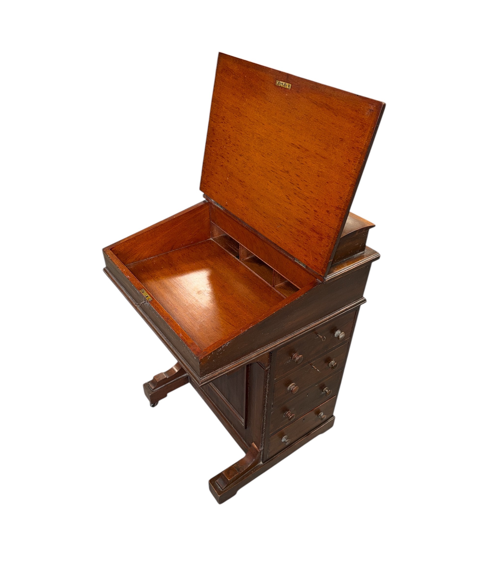 An Edwardian mahogany Davenport with four real and four faux drawers, 54cms wide.