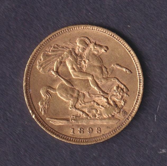 UK 1893 gold half Sovereign, in good condition