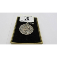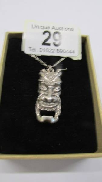 A silver tribal mask pendant.