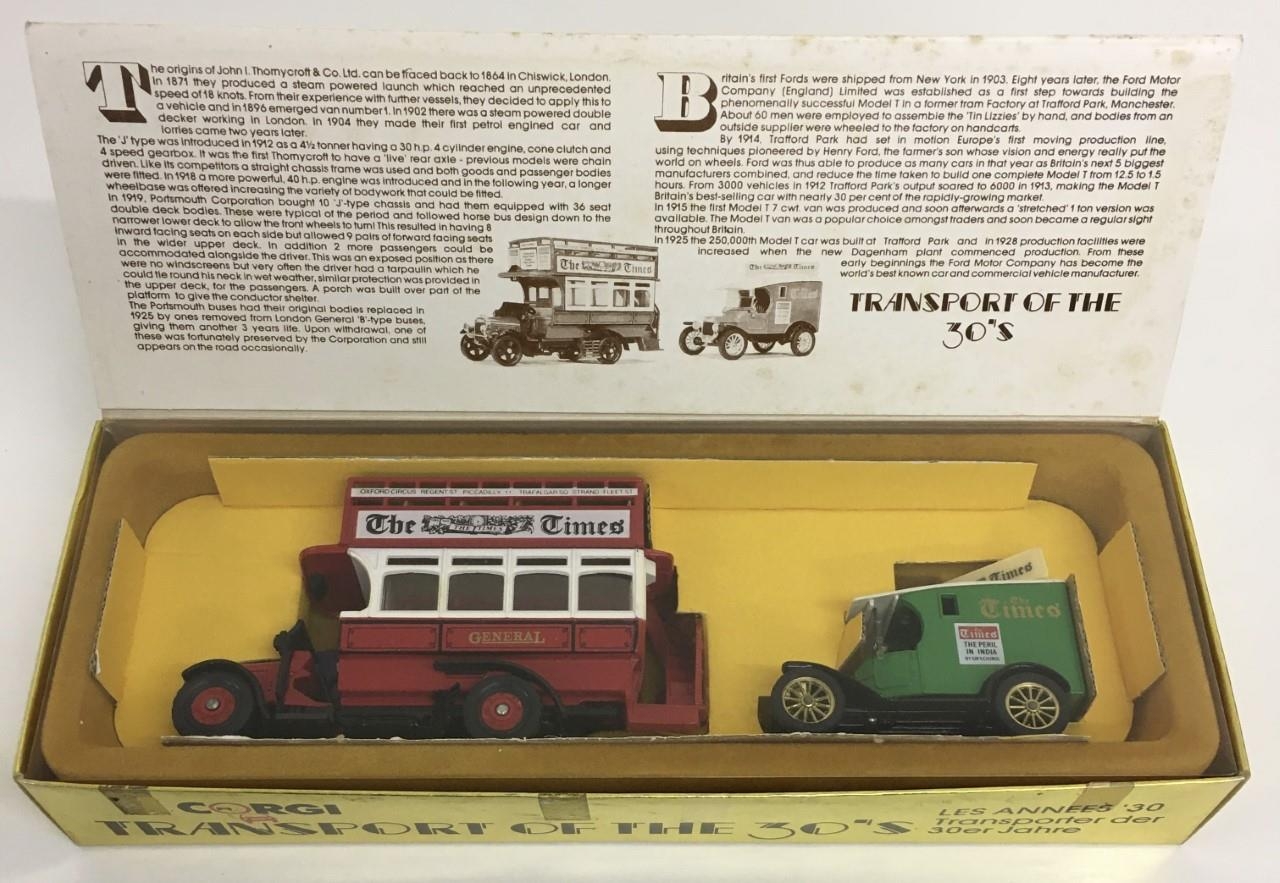 Corgi Transport of the 30's Set (The Times). Includes Thornycroft Bus & Model T Ford van.