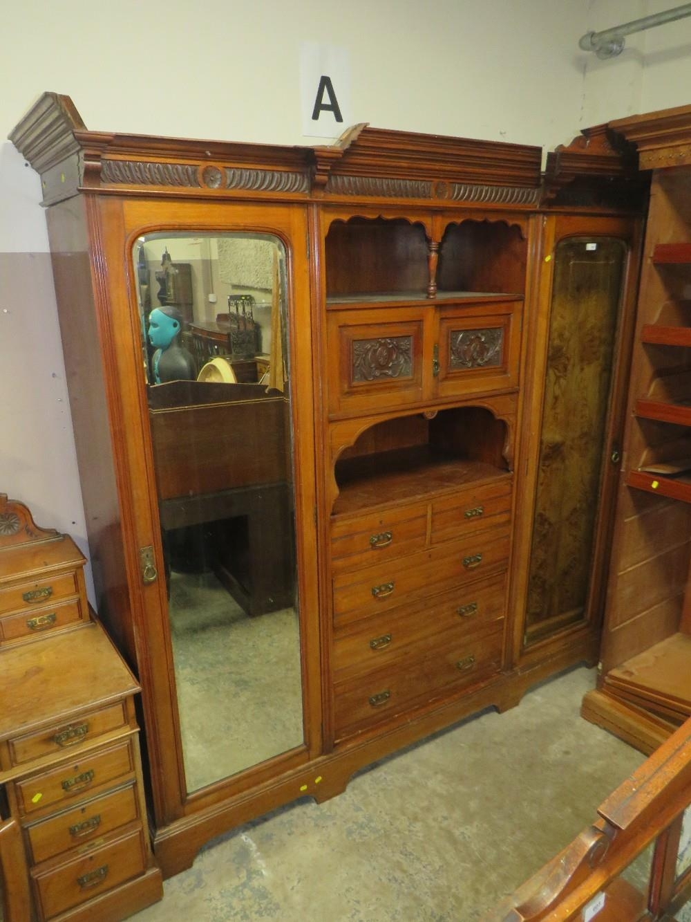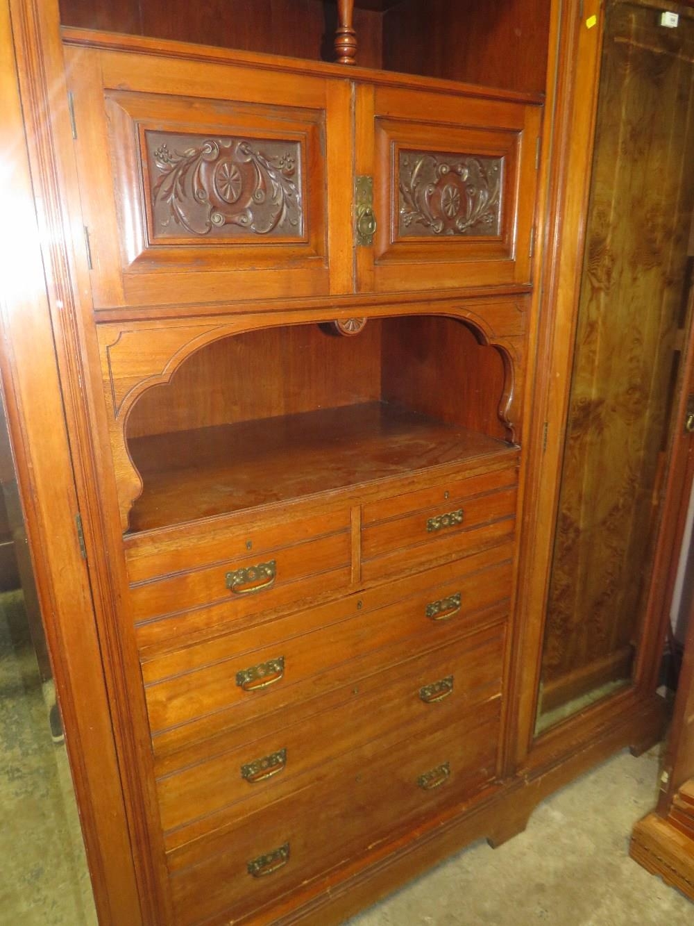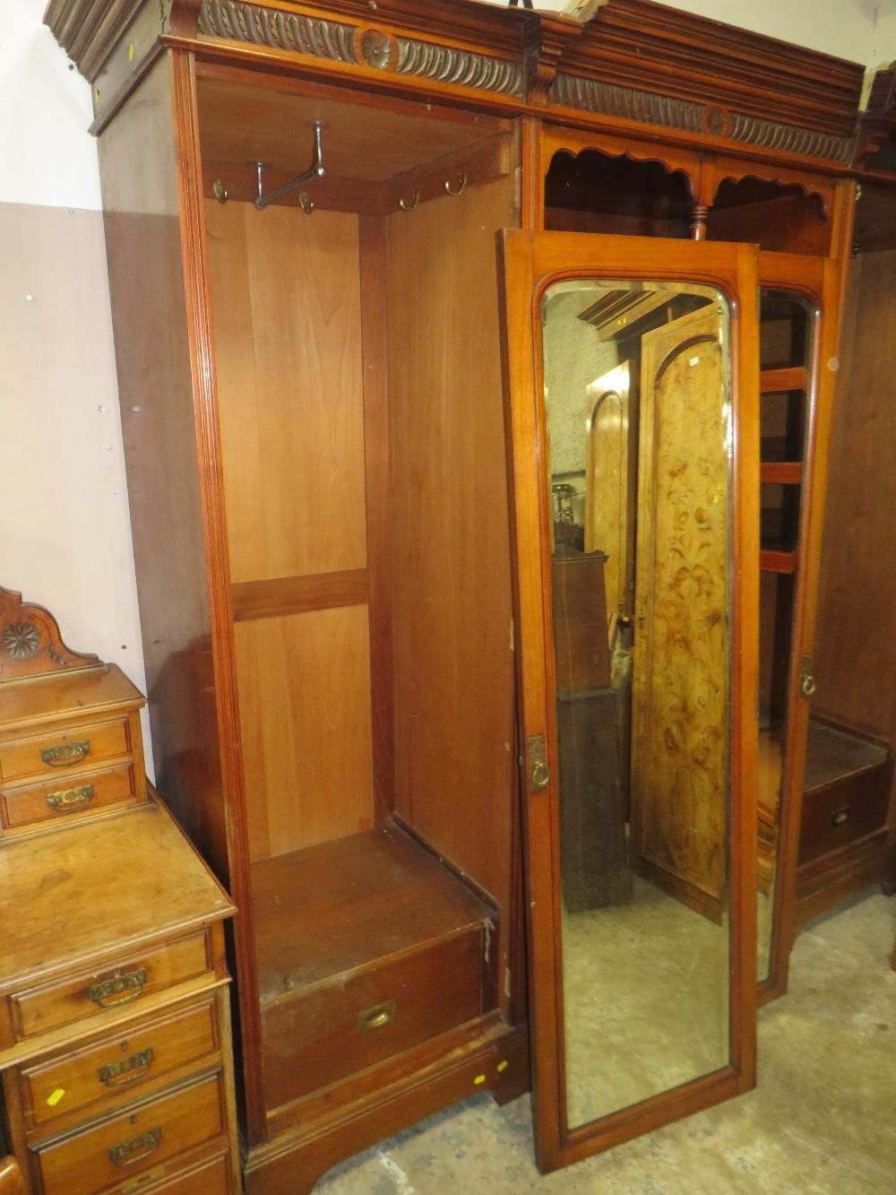 AN EDWARDIAN CARVED MAHOGANY TRIPLE WARDROBE H-229 W-220 CM S/D