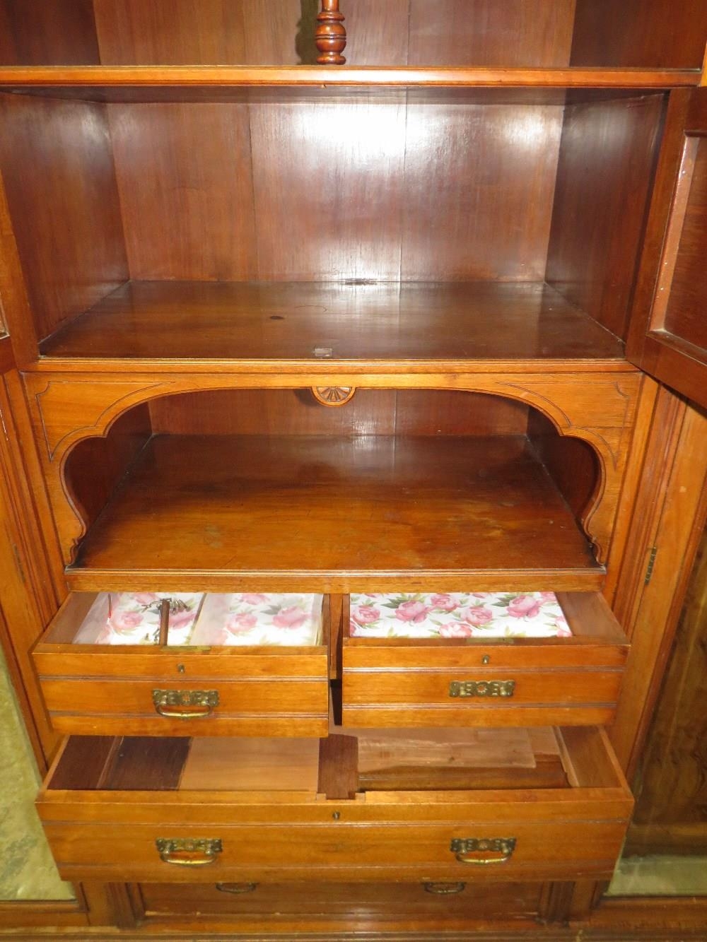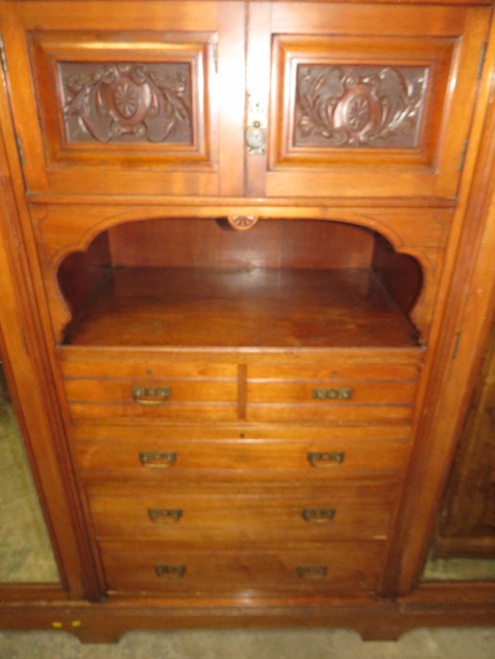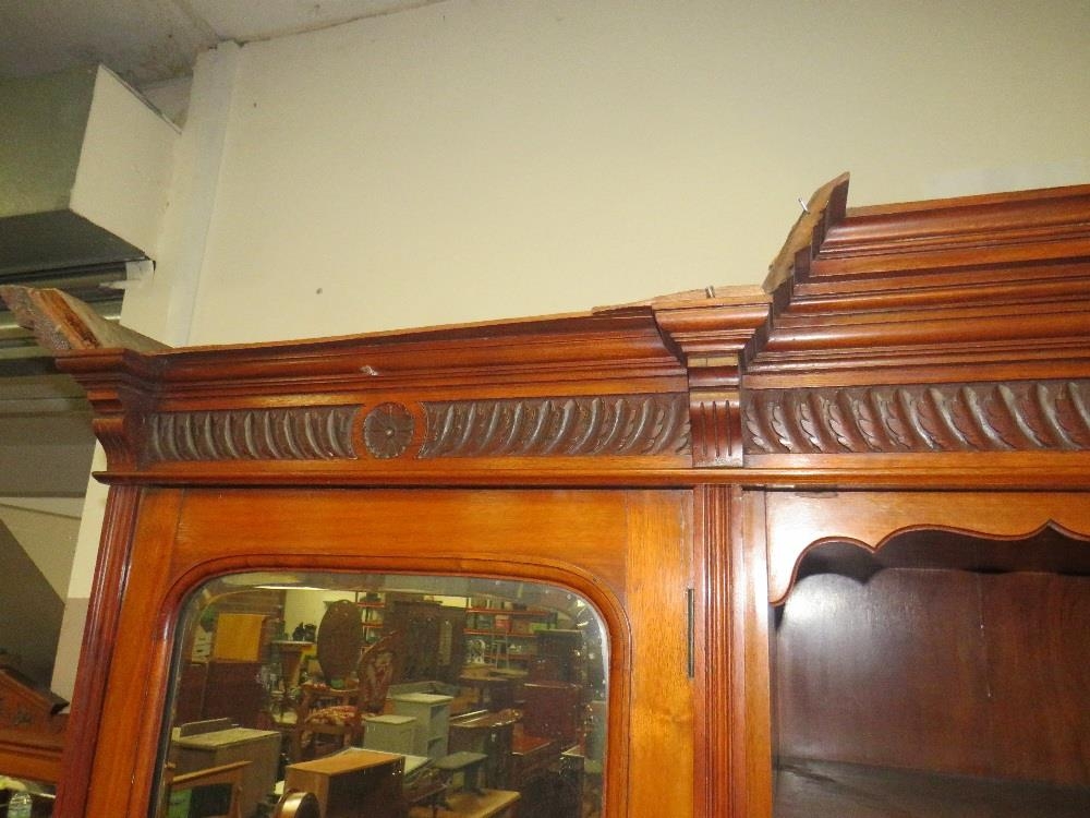 AN EDWARDIAN CARVED MAHOGANY TRIPLE WARDROBE H-229 W-220 CM S/D