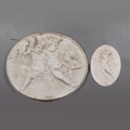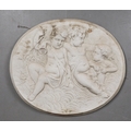 CLASSICAL STYLE PUTTI WALL PLAQUES, 2 DIFFERING. 68cm x 58cm at largest approx. (2).