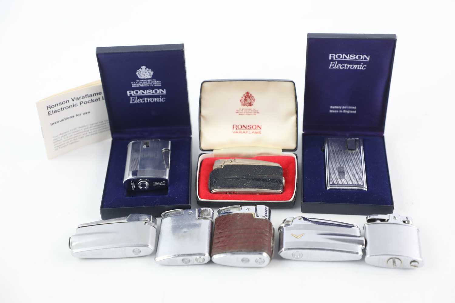 8 x Vintage RONSON Cigarette LIGHTERS Inc Varaflame, Leather, Boxed, Standard