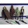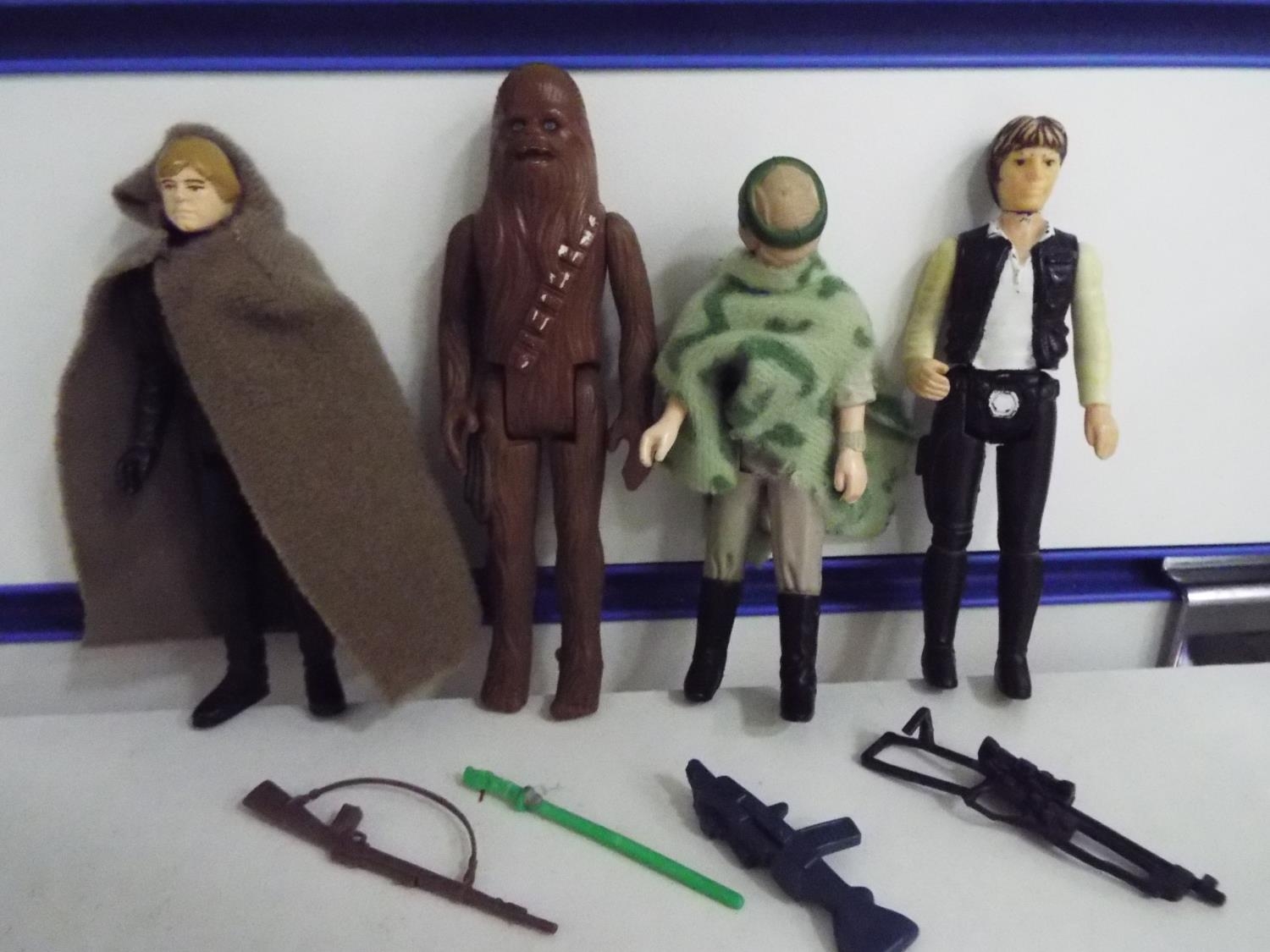 1977 Chewbacca (with gun) 1984 Princess Leia Endor (with Poncho) 1984 Han solo 1983 Luke Skywalker (with Jedi Sabre)