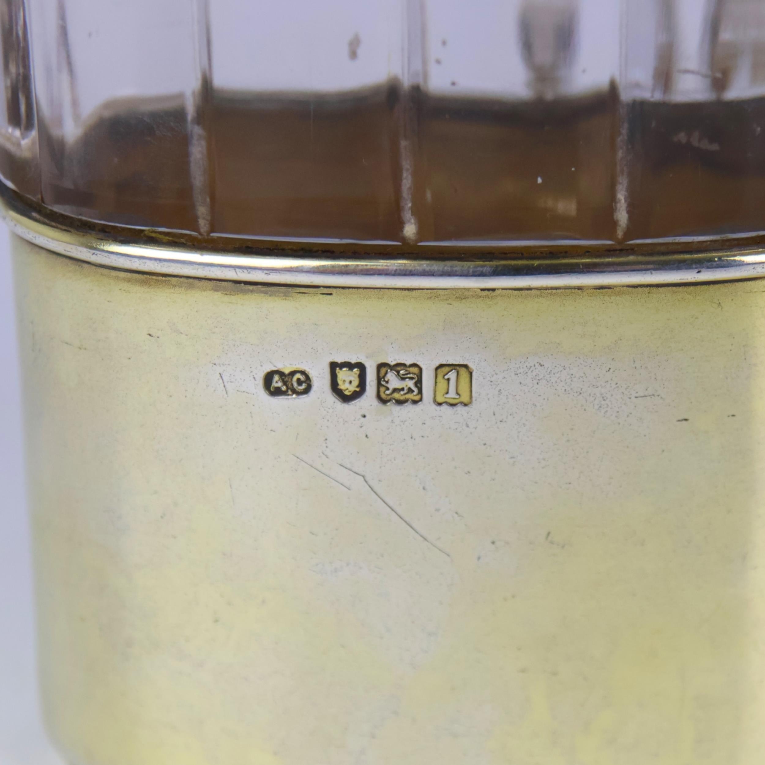 A Victorian silver mounted glass hip flask, Frederick Brasted, London 1886, the bayonet cap with applied monogram to top, above arched designed glass body and associated silver stirrup cup ('AC' London 1906) 14.5cm long