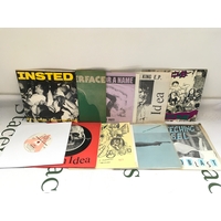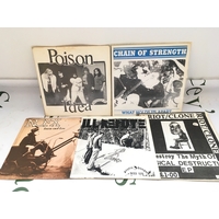 Five grunge, punk and hardcore 7" records by various artists including Screeching Weasel, The Apostles and others.