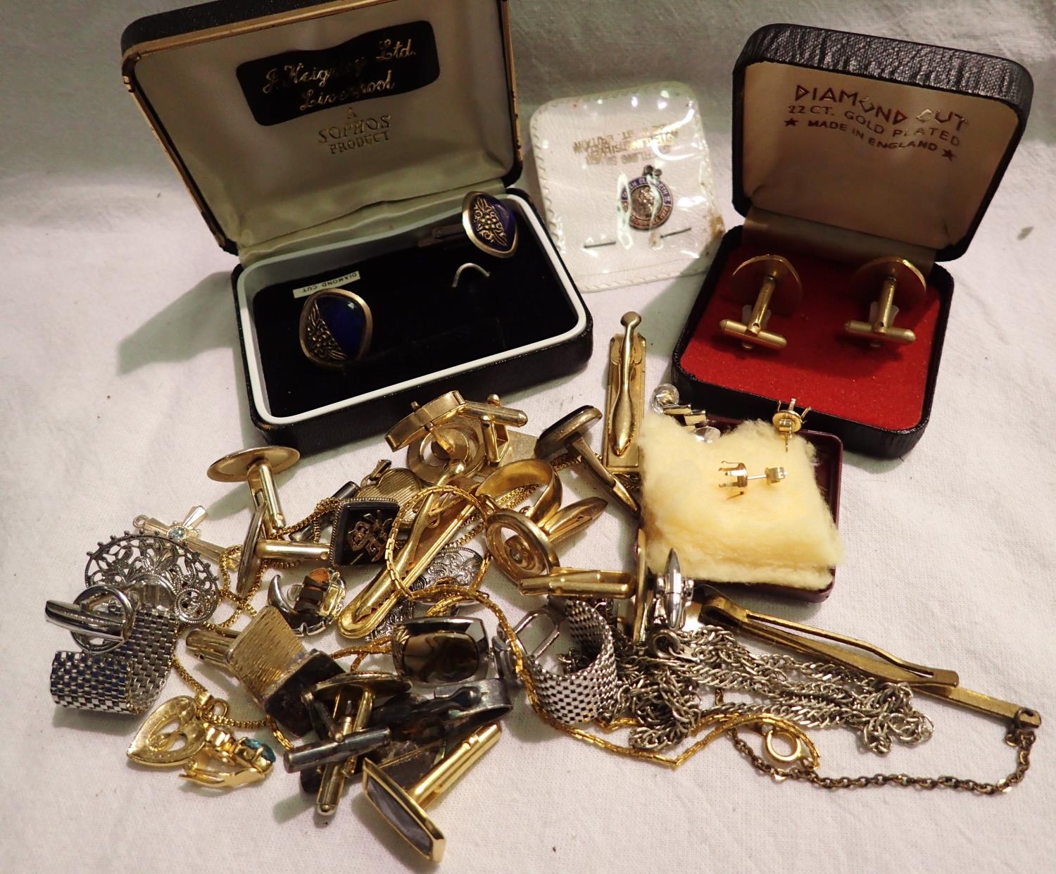 Mixed cufflinks and tie pins etc. P&P Group 1 (£14+VAT for the first lot and £1+VAT for subsequent lots)