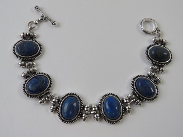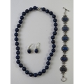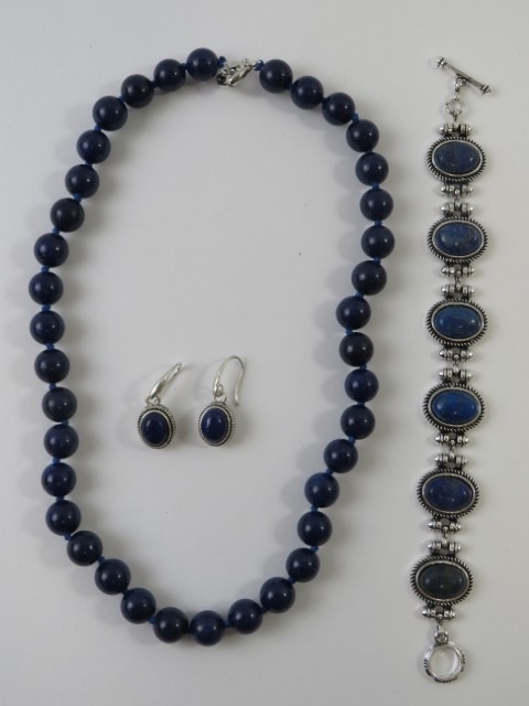 A suite of lapis lazuli jewellery to comprise beaded necklace, bracelet and earrings, 98gms approx (4).
