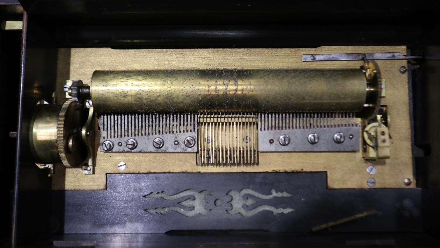 ***WITHDRAWN***Swiss music box playing ten tunes in an inlaid walnut case, L: 61 cm. Not available for in-house P&P