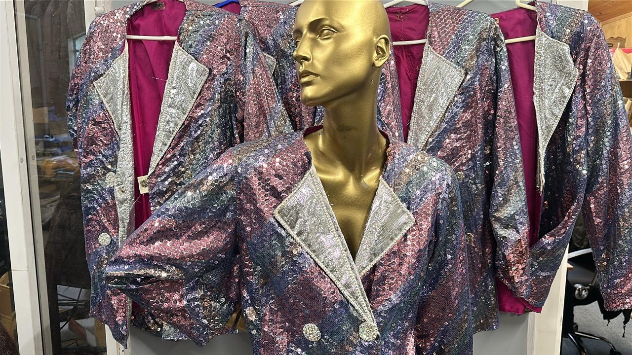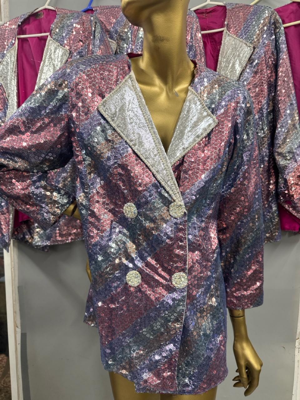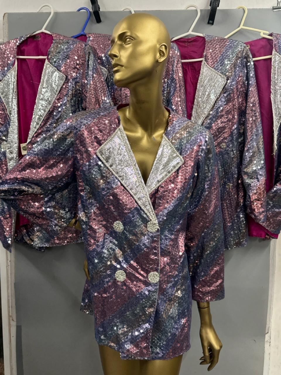 Seven sequinned double breasted dancers jackets. /Rail 1