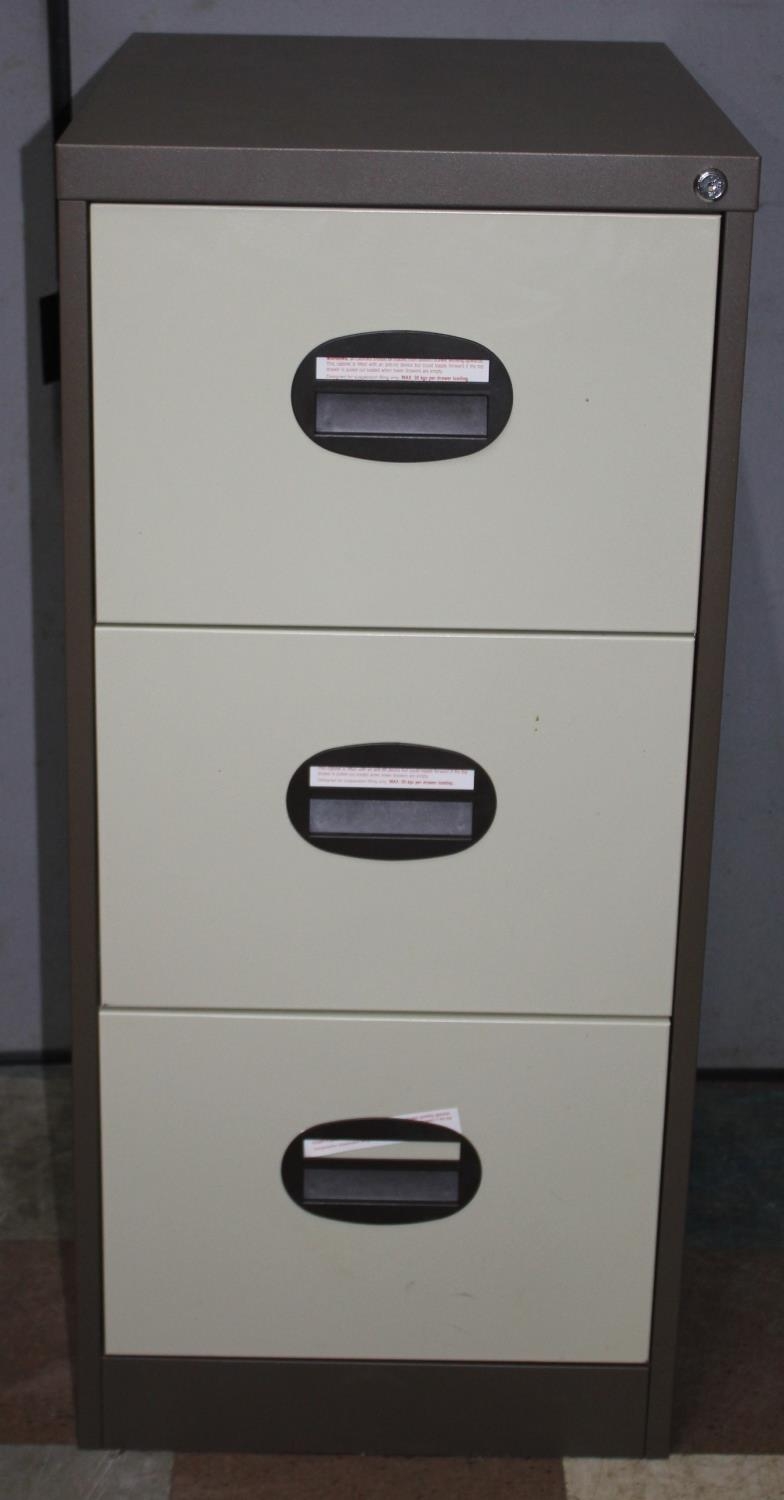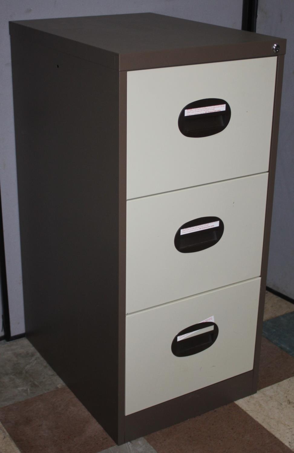 3-DRAWER BROWN AND CREAM FILING CABINET WITH KEY