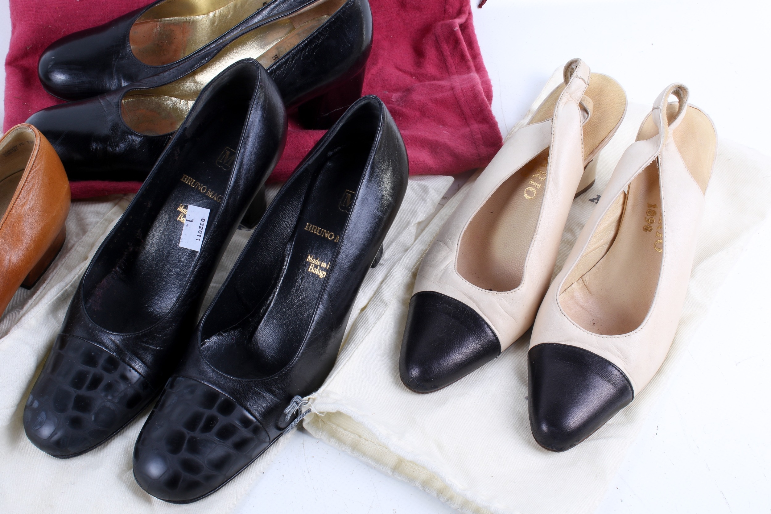 Five pairs of women's designer shoes. Inclduing Bally, etc, with some Bally dust bags, UK size 3.5, EU size 36/37