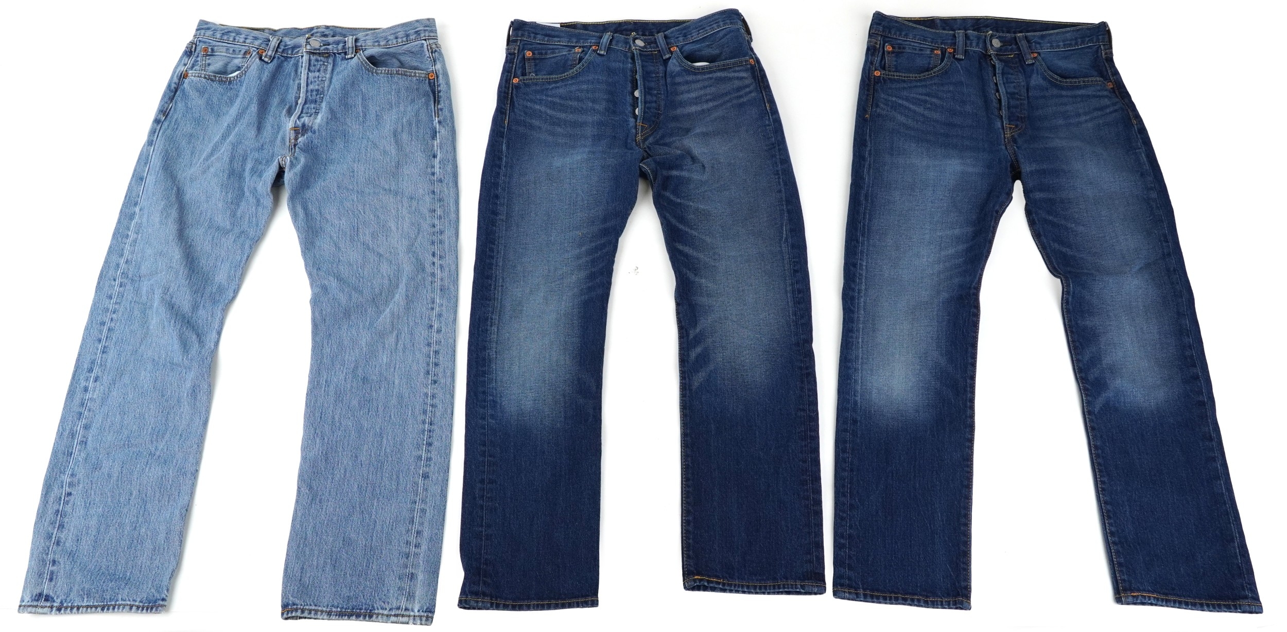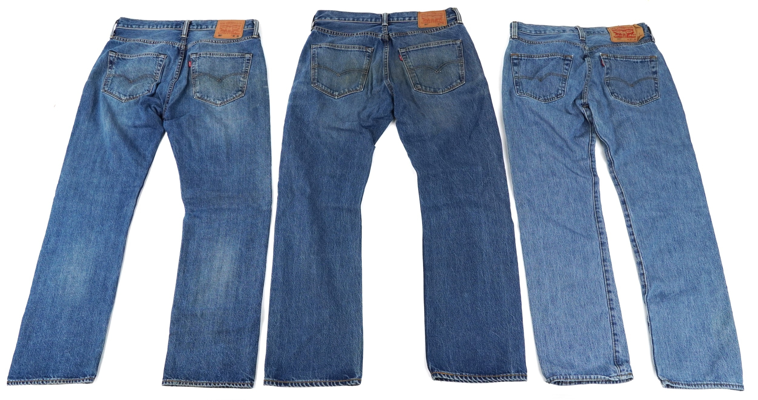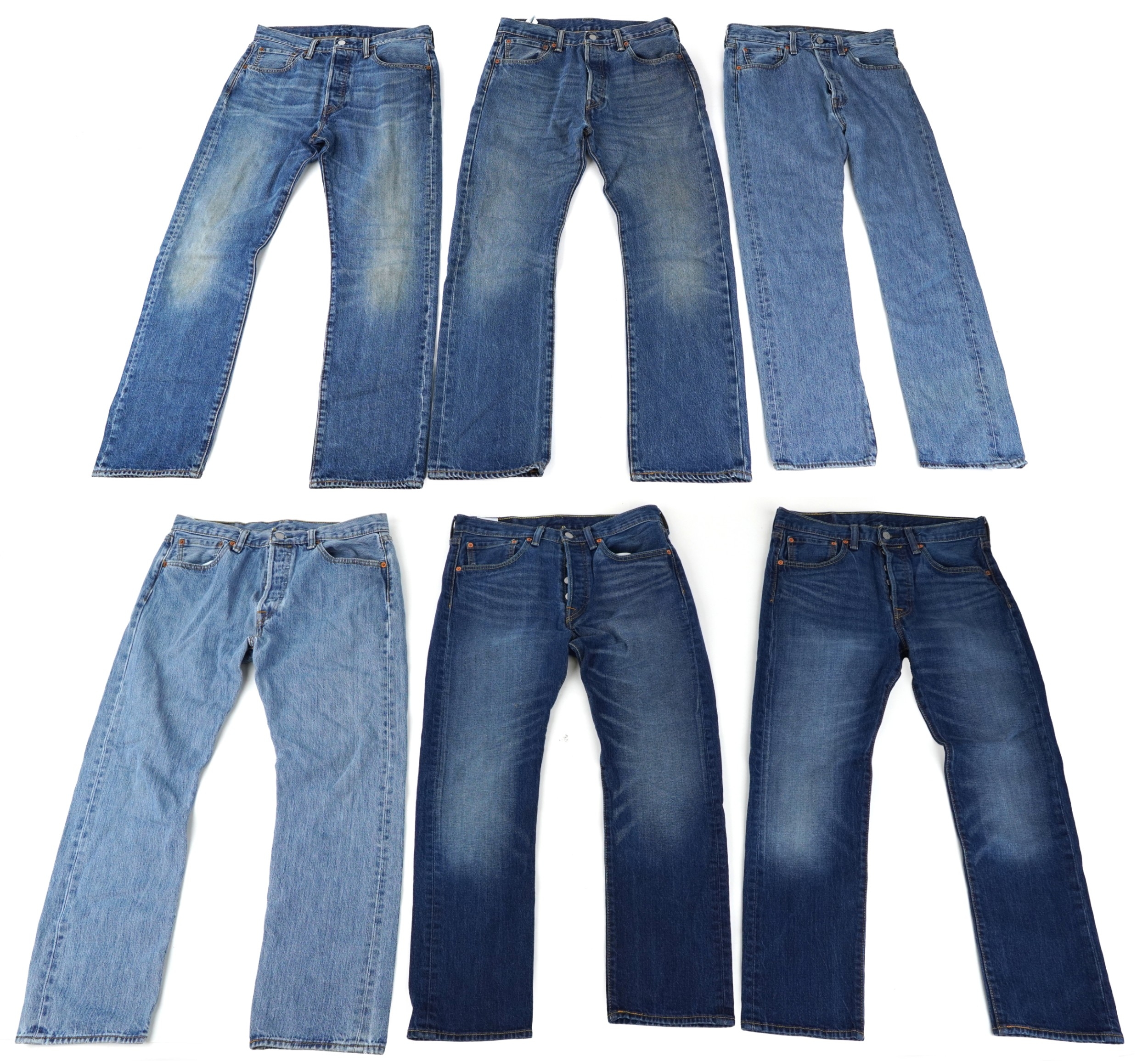 Six pairs of Levi Strauss & Co. denim jeans, leg length 30, waist size 31, 32 and 33.