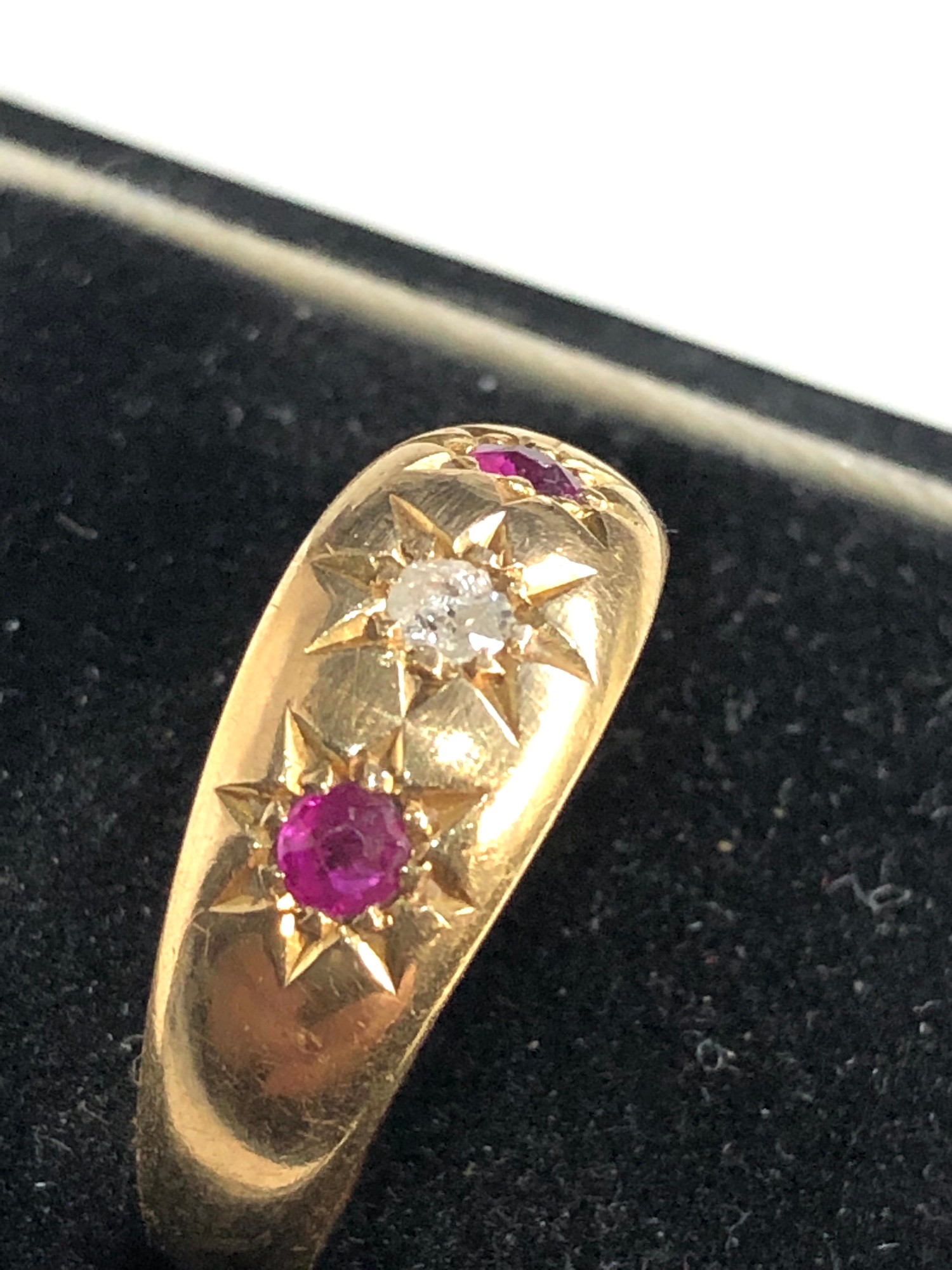 Antique 18ct gold diamond and ruby ring weight 4.5g