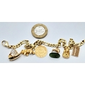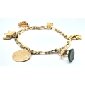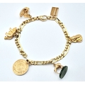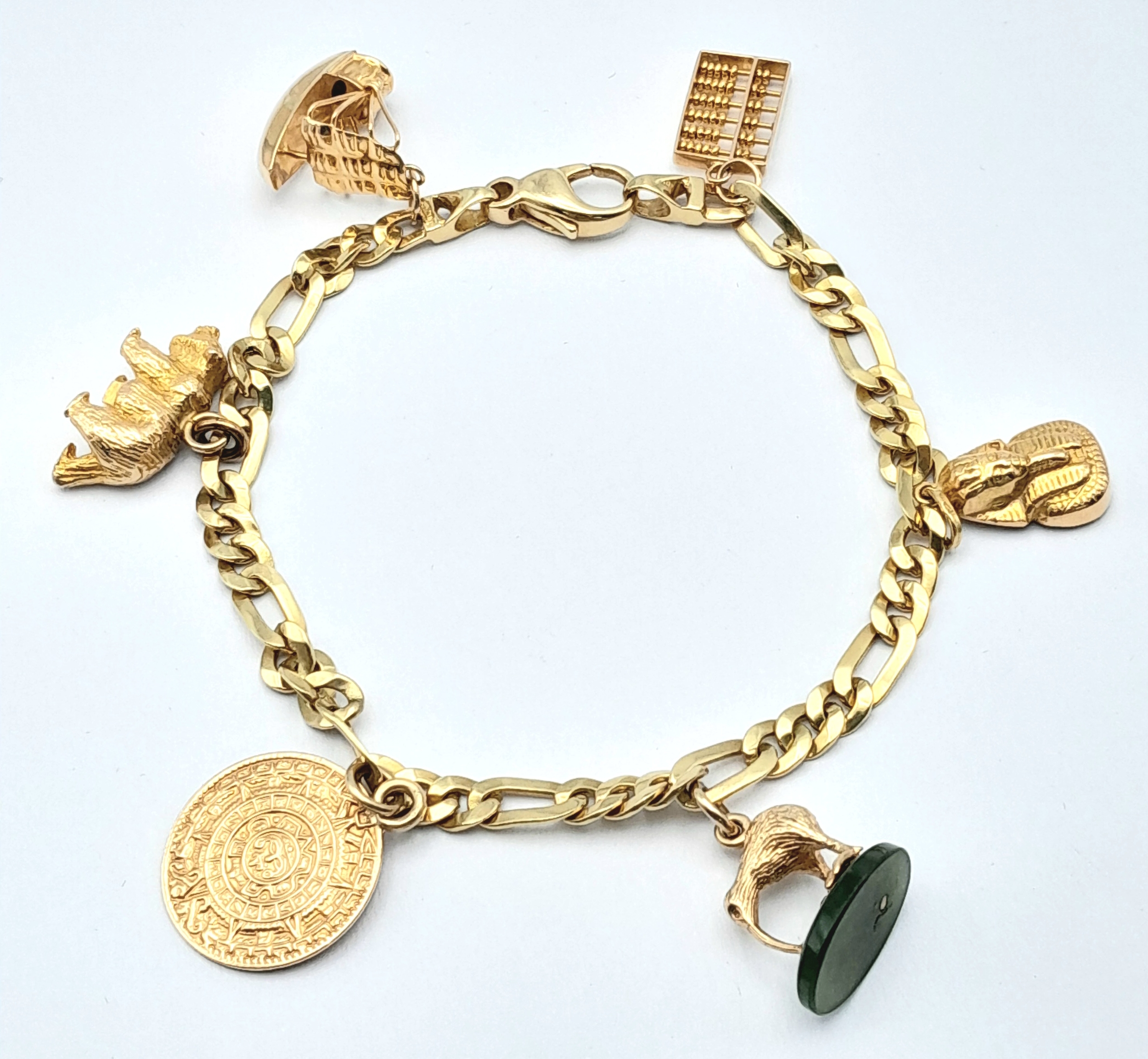 A 14K GOLD CHARM BRACELET WITH 6 CHARMS . 21.9gms