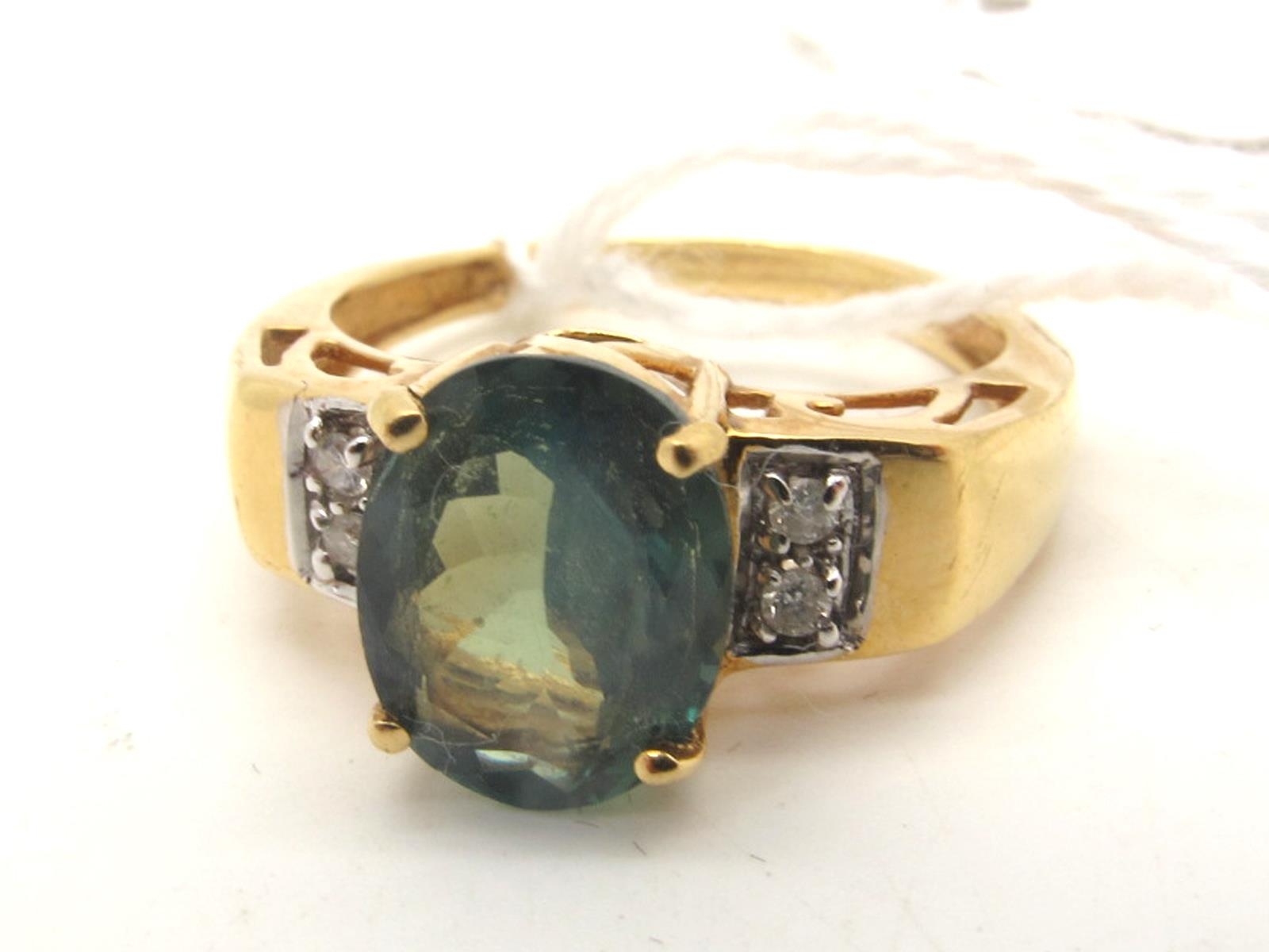 A Modern 18ct Gold Gems TV Russian Alexandrite Single Stone Dress Ring, oval four claw set, between inset shoulders (finger size N).
