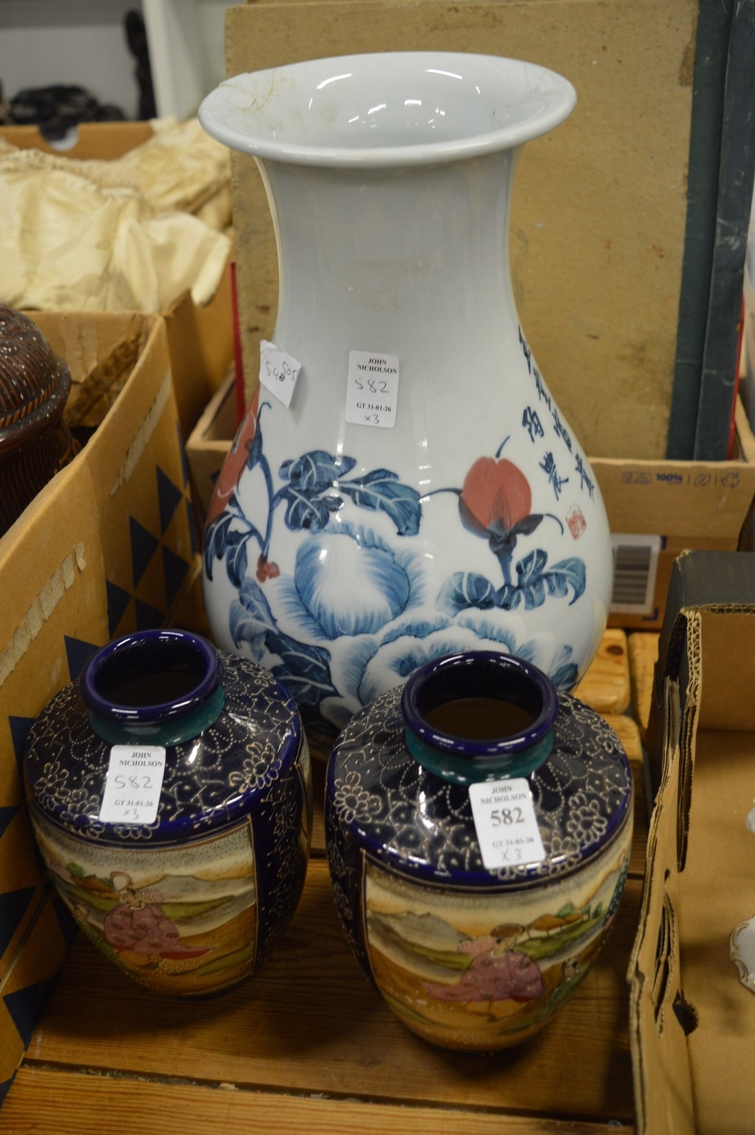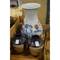 A pair of Satsuma vases and a Japanese vase (rim damage).