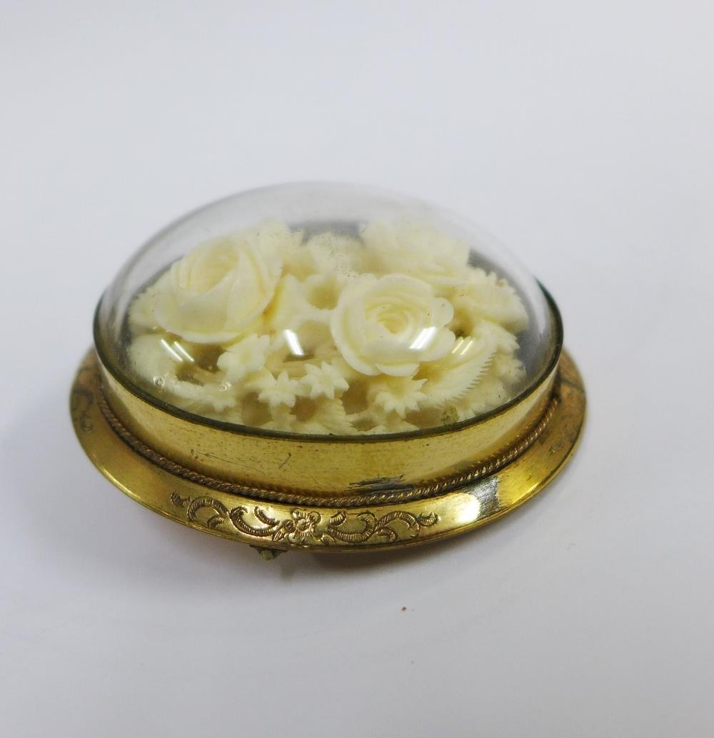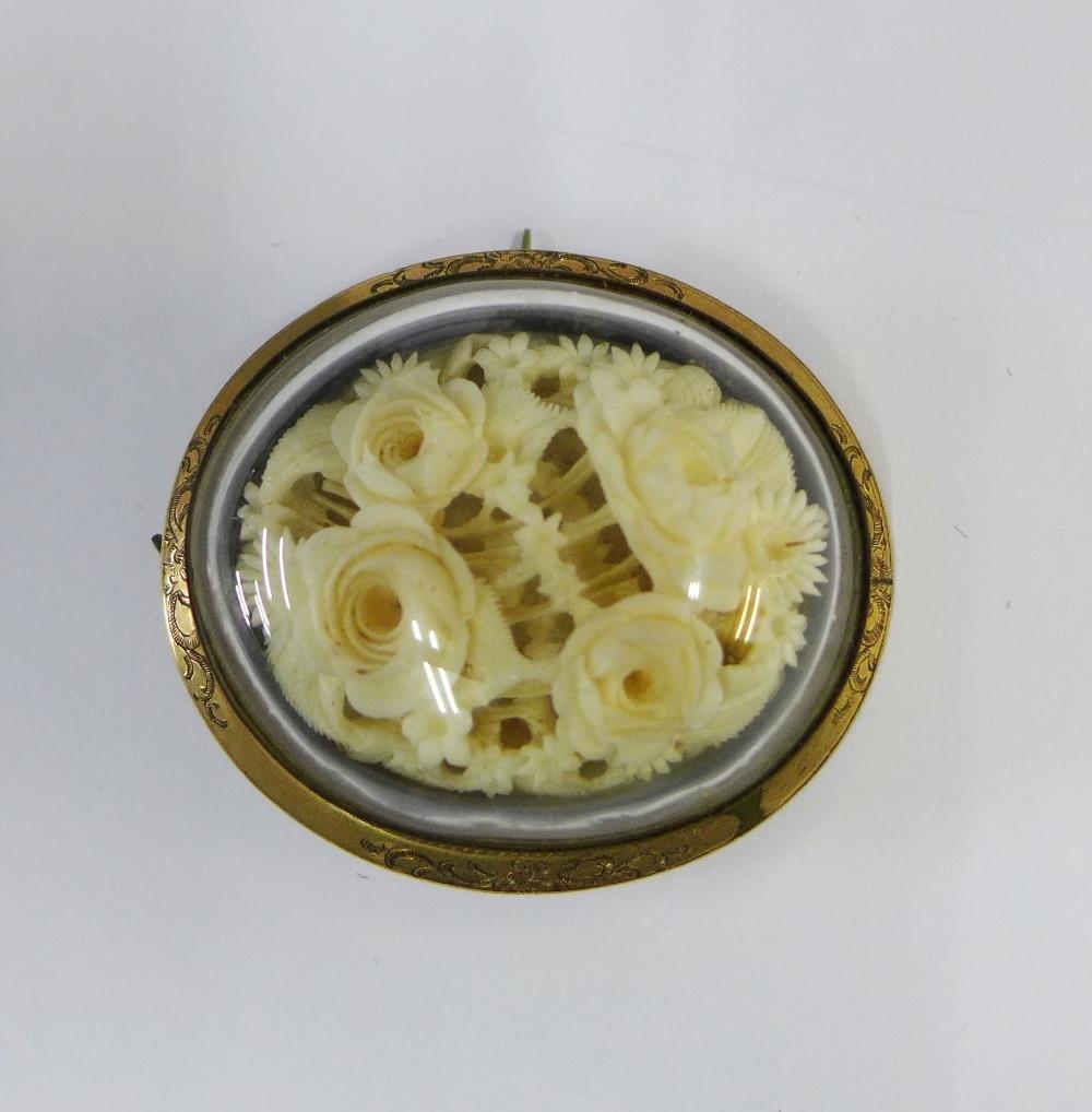 Victorian carved ivory and pinchbeck brooch, 6cm