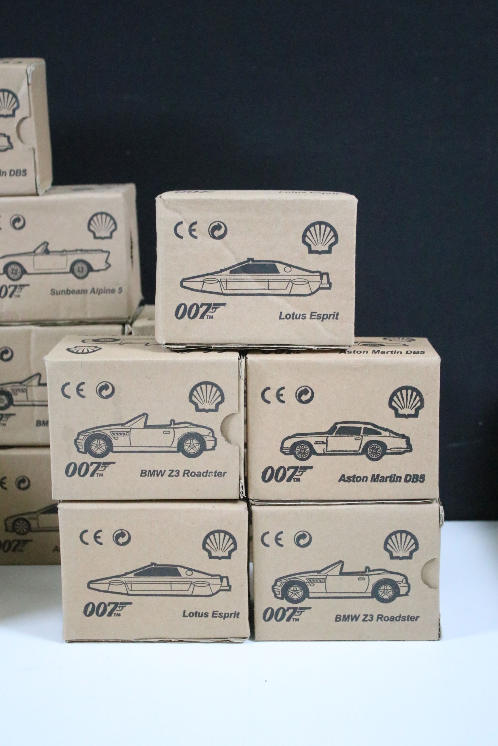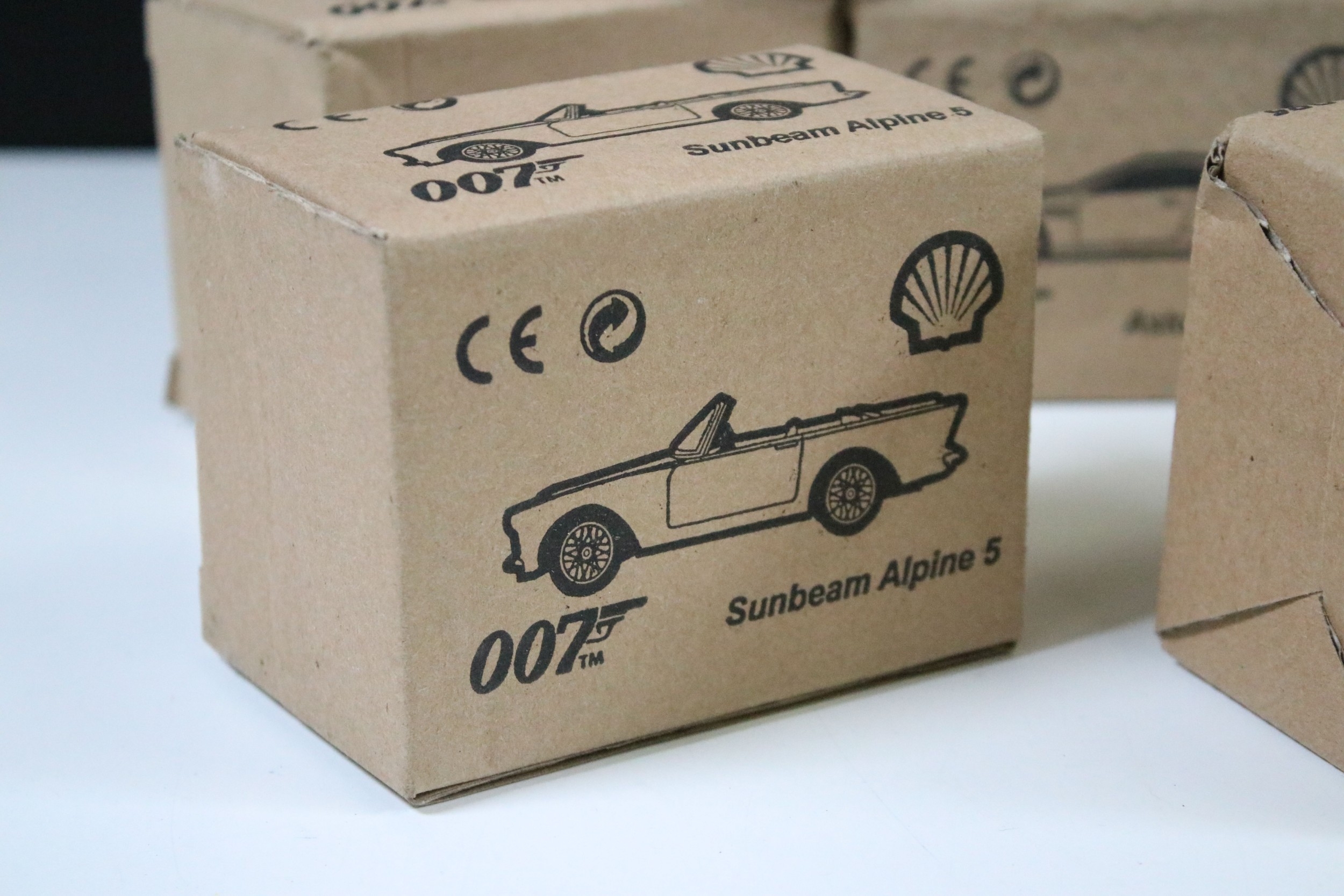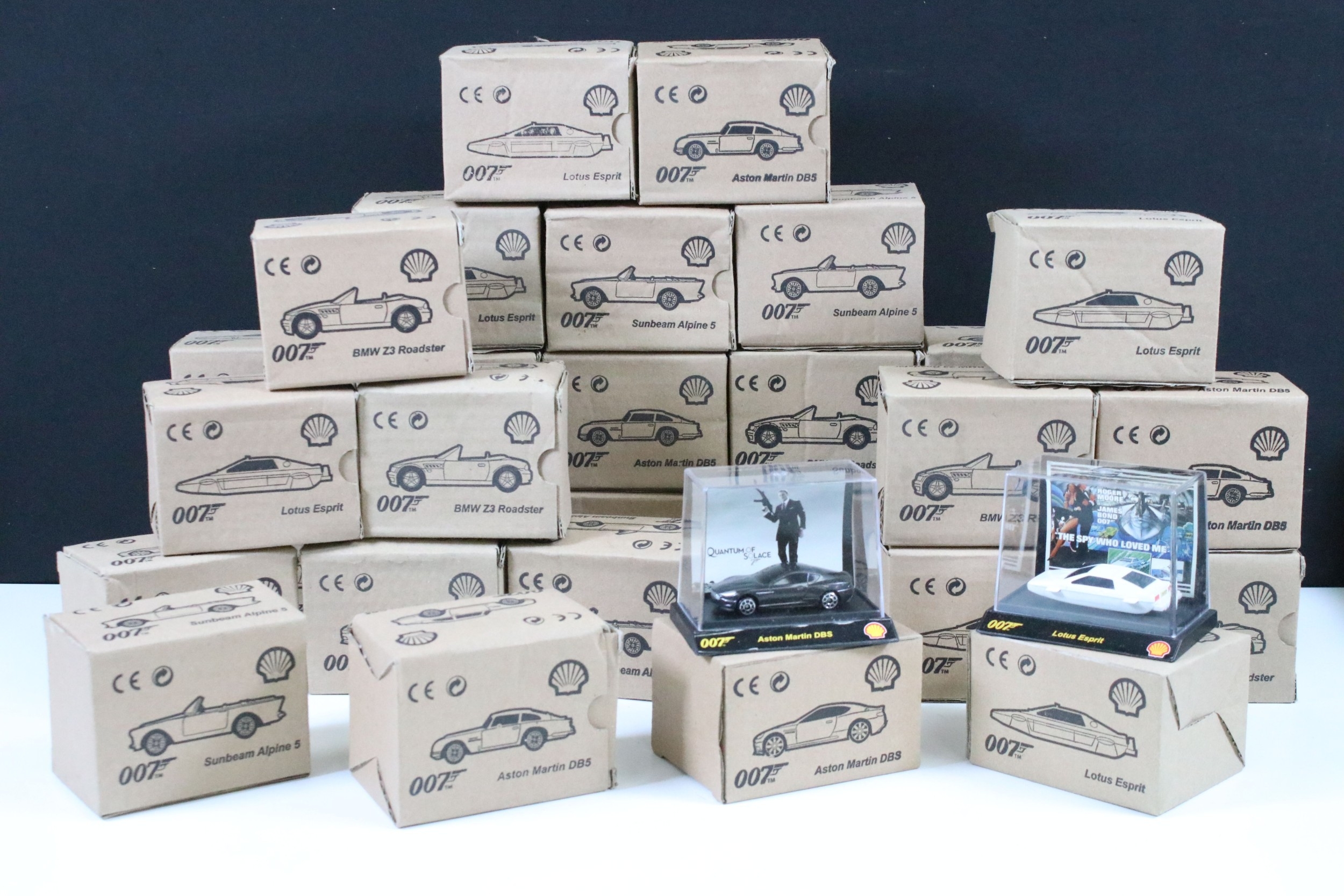30 Boxed Shell James Bond 007 diecast models to include BMW Z3 Roadster, Aston Martin DB5, Sunbeam Alpine 5, Lotus Esprit, etc, all ex