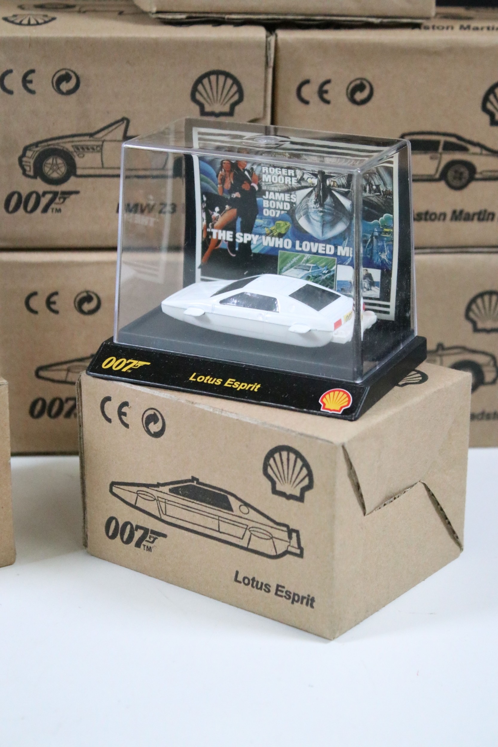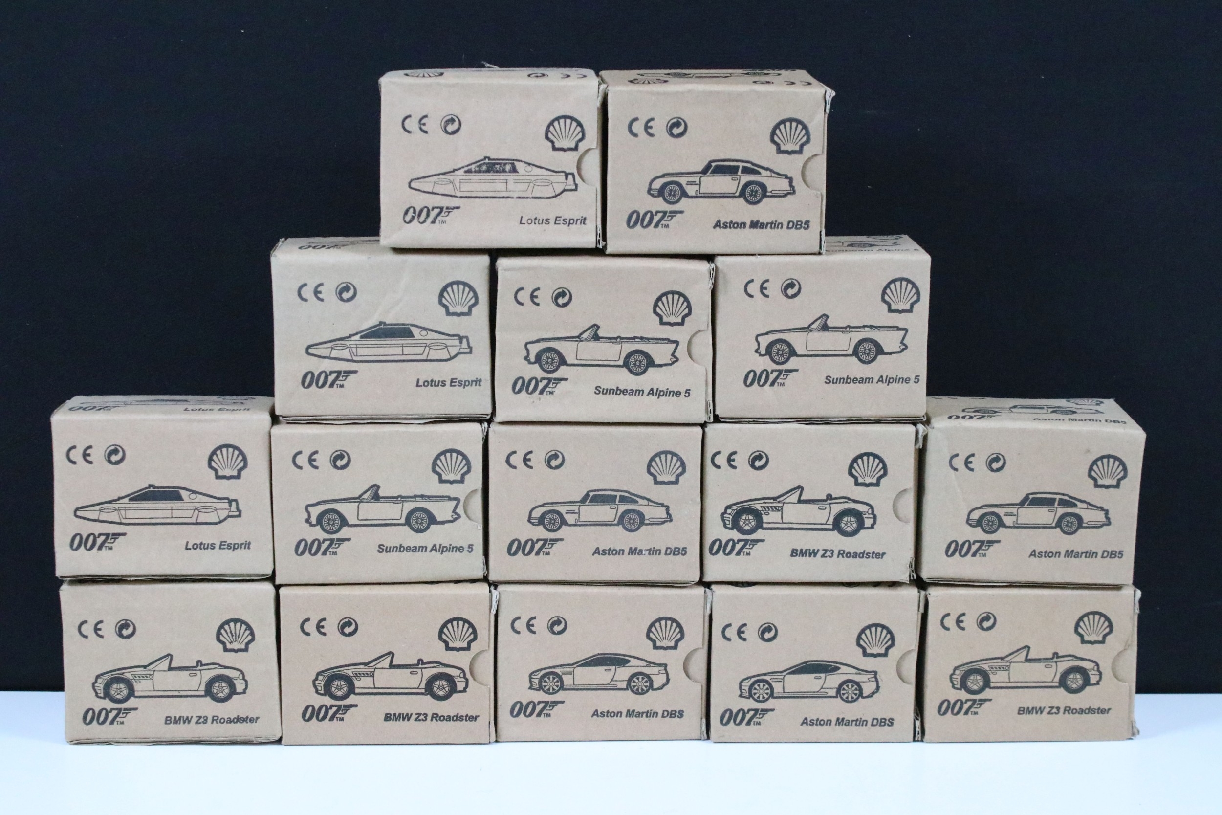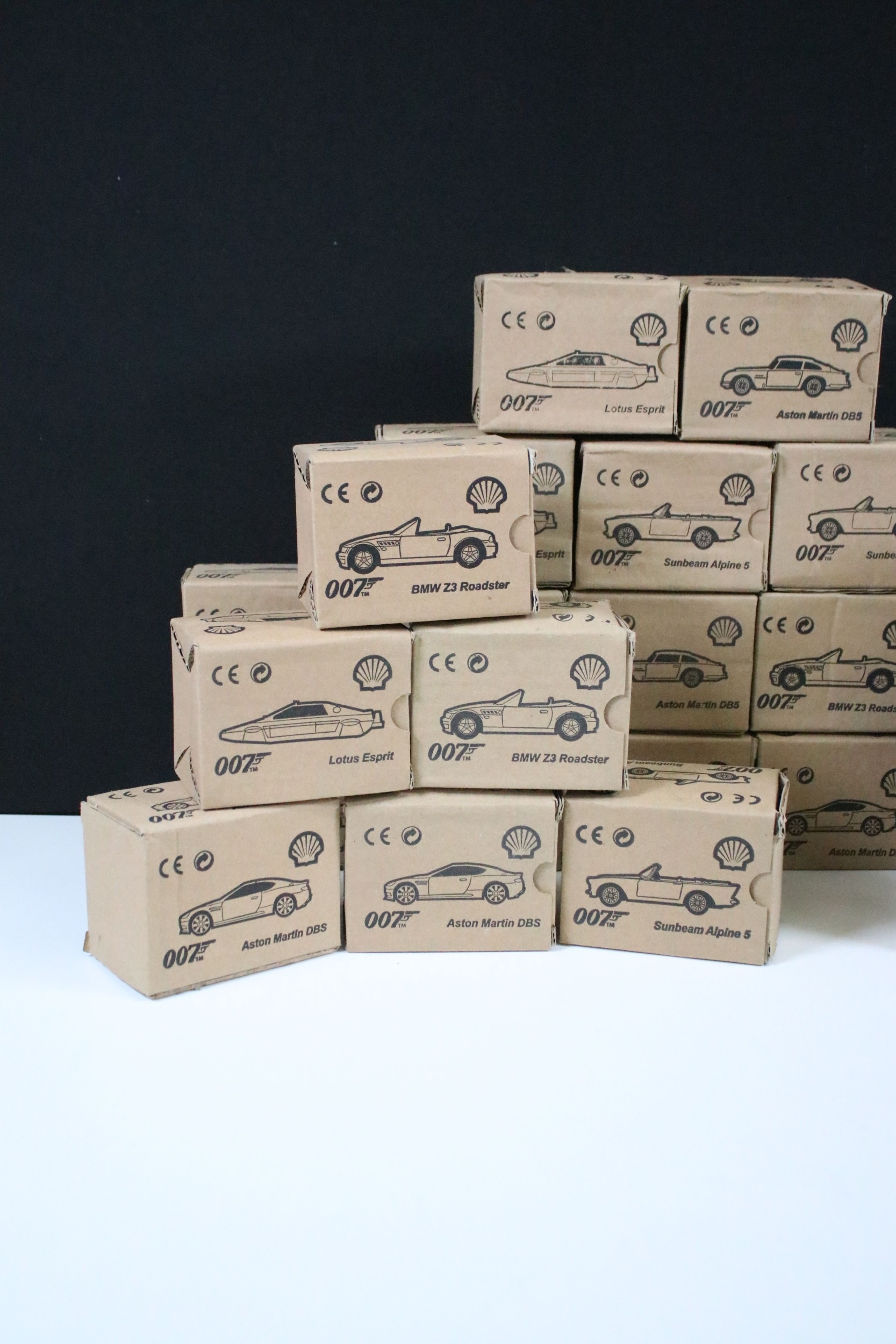 30 Boxed Shell James Bond 007 diecast models to include BMW Z3 Roadster, Aston Martin DB5, Sunbeam Alpine 5, Lotus Esprit, etc, all ex