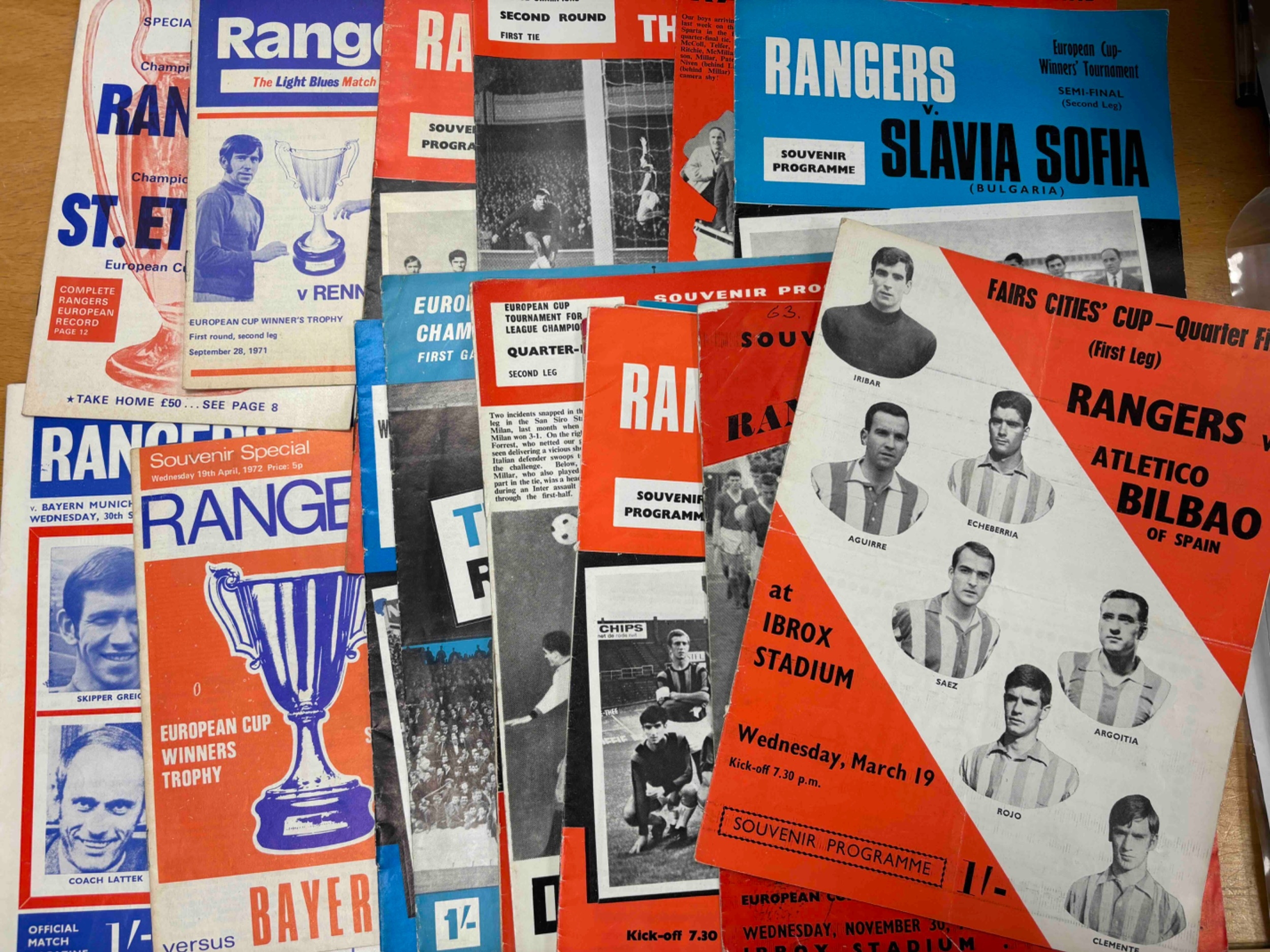 Glasgow Rangers, 23 home programmes in European Competition. 16 are pre-1970 inc Tottenham 62/63, Leeds 67/68 and Slavia Prague 66/67 semi-final. Generally good