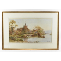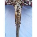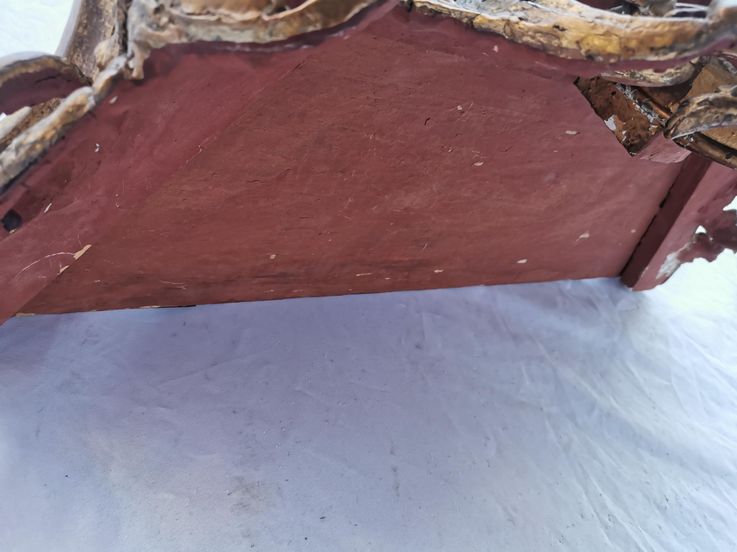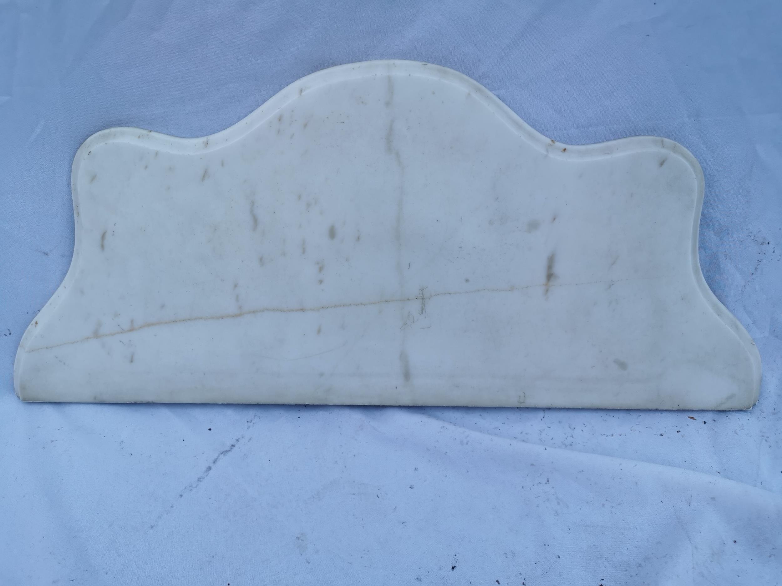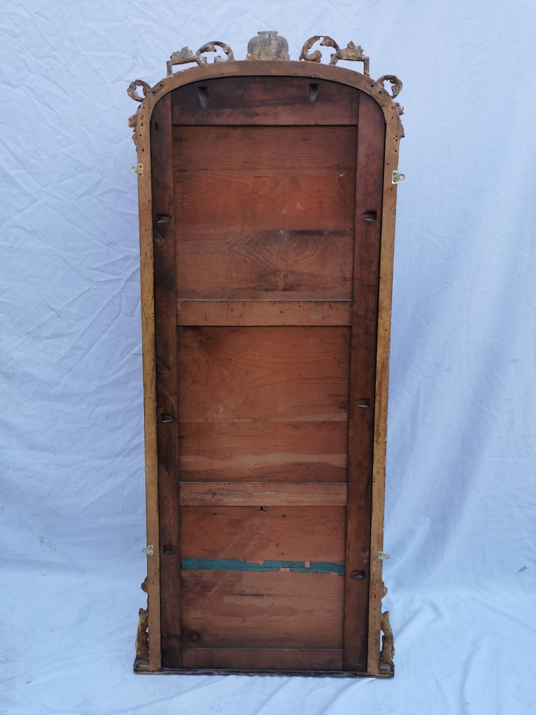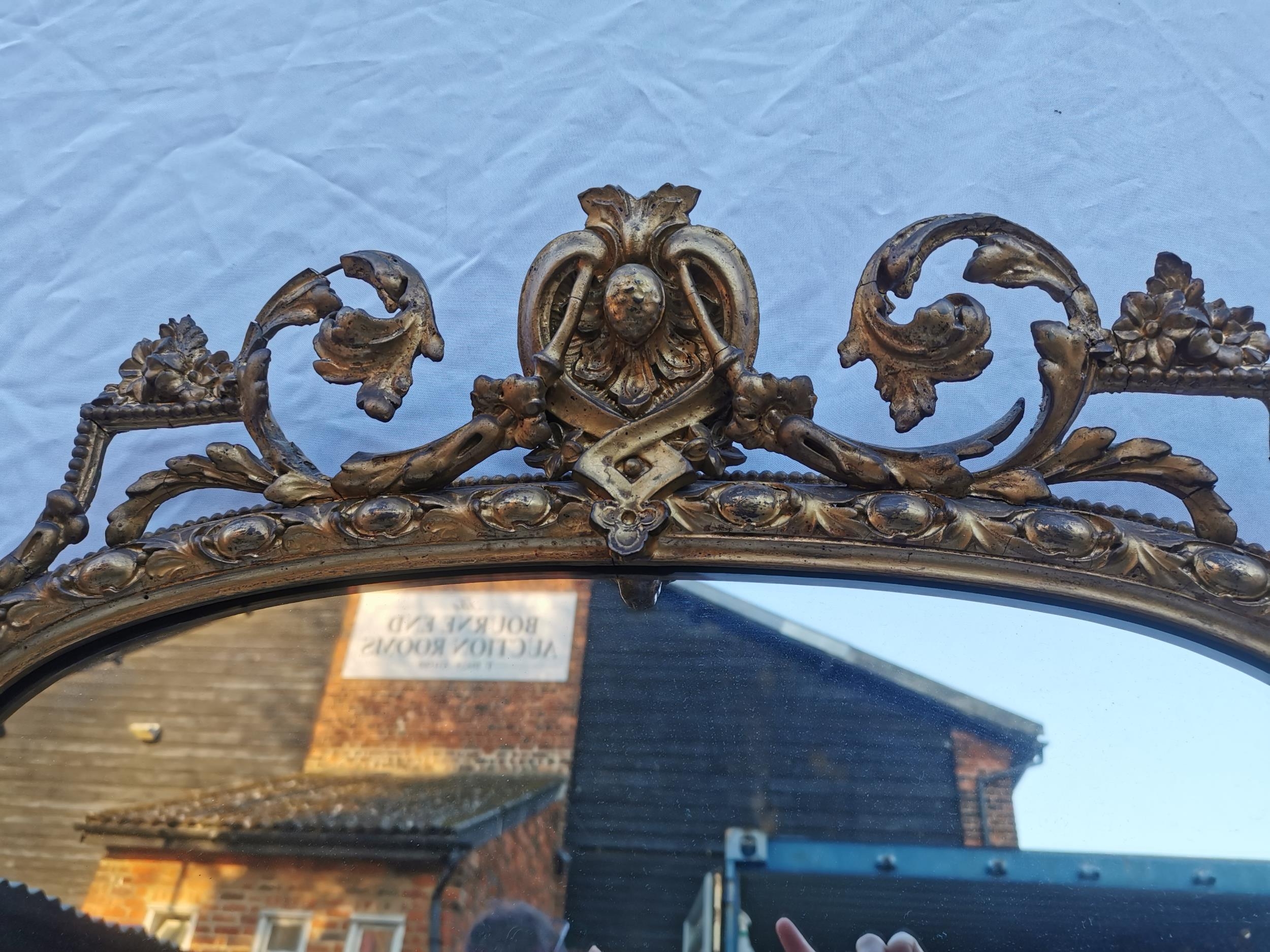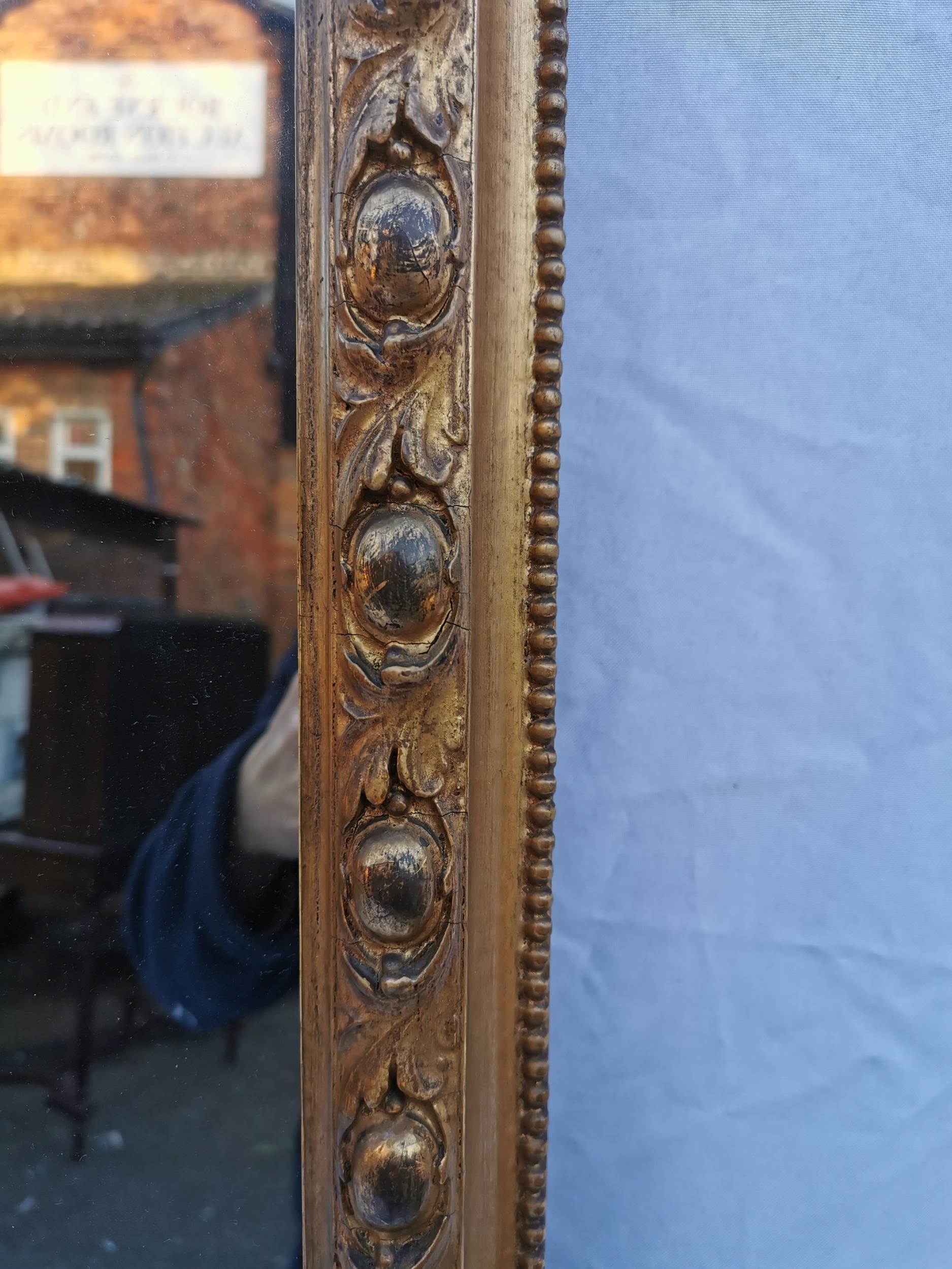 A 19th century giltwood and marble console table and mirror, the table with shaped white marble top, on a single carved foot, surmounted with a tall single plate giltwood mirror with cartouche and acanthus border and scrolled foliate finial, the table 89.5 cm high, the mirror 179 cm high x 67 cm wide