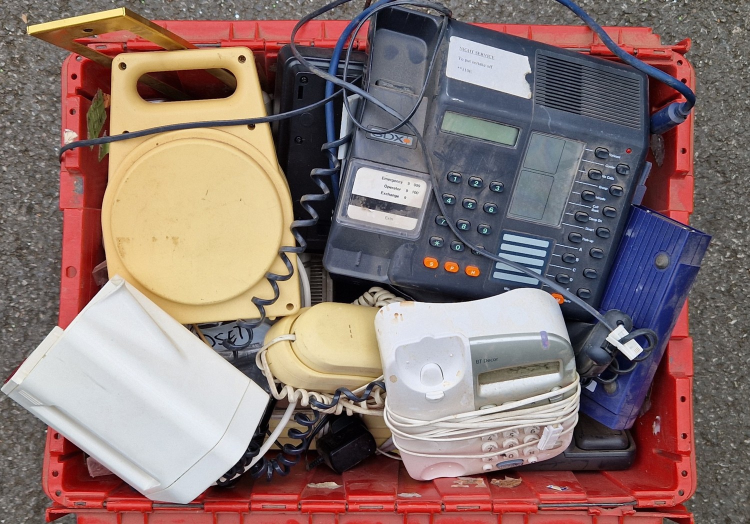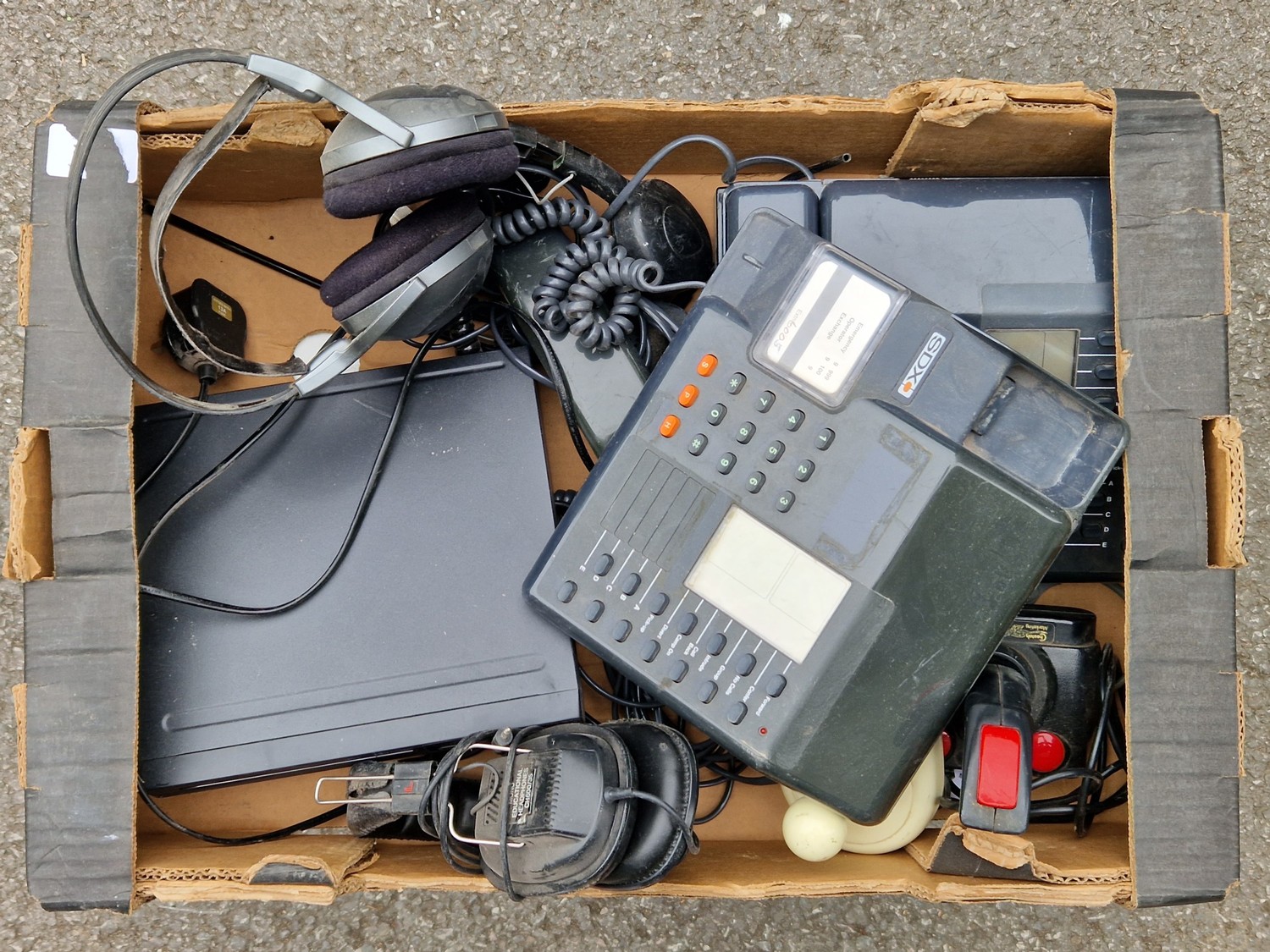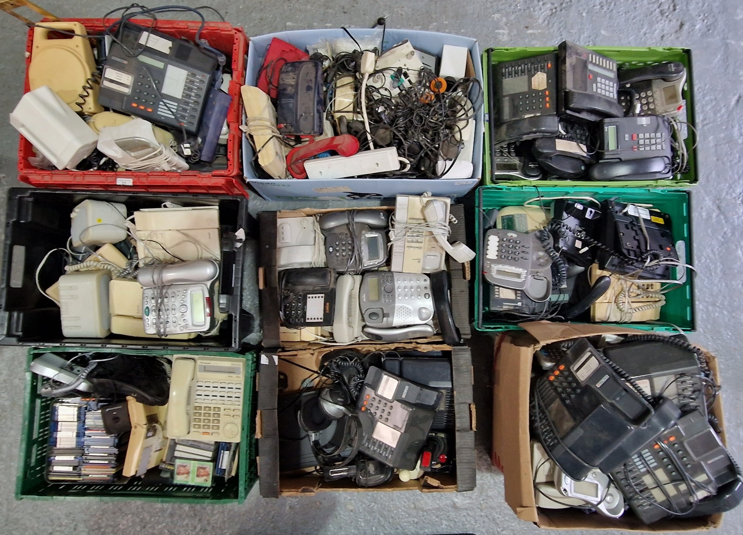 9 BOXES OF VINTAGE ELECTRONICS INCLUDING TELEPHONES ETC.