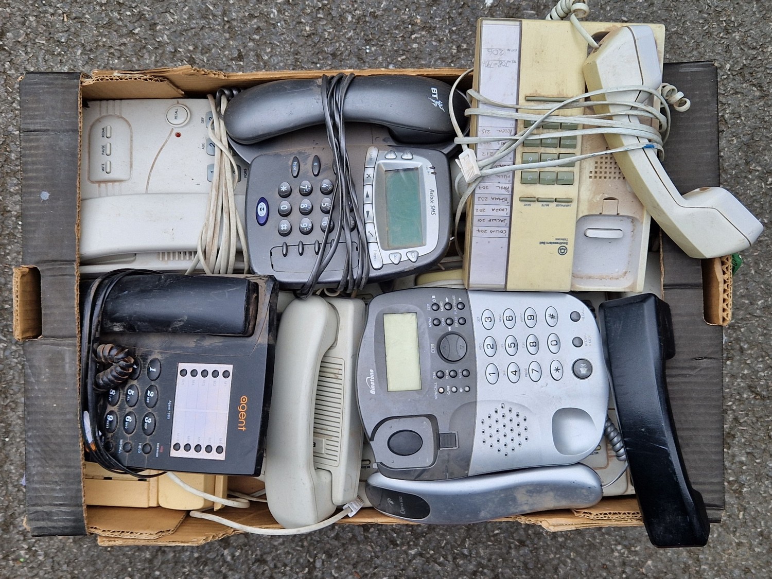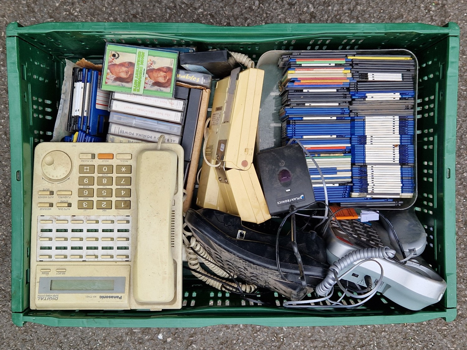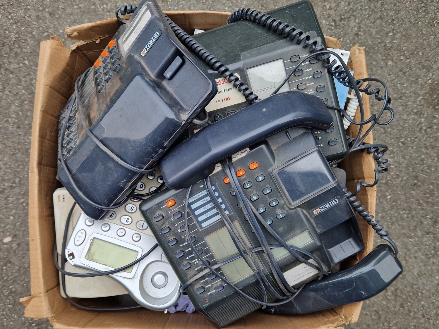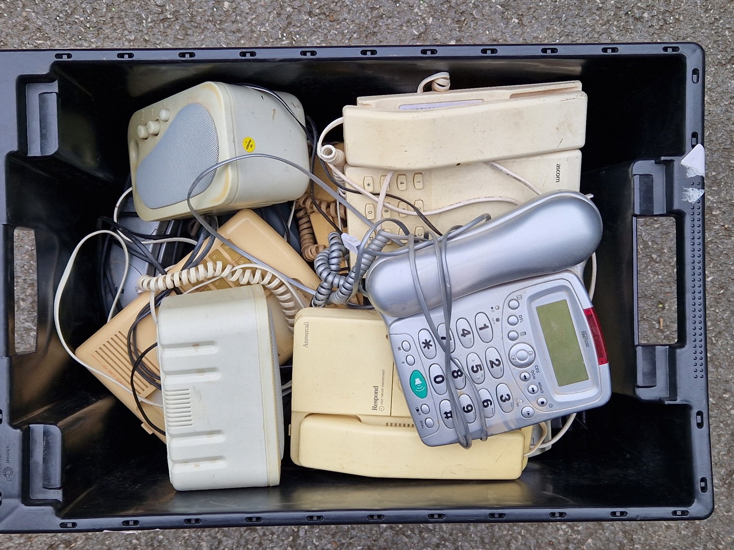 9 BOXES OF VINTAGE ELECTRONICS INCLUDING TELEPHONES ETC.