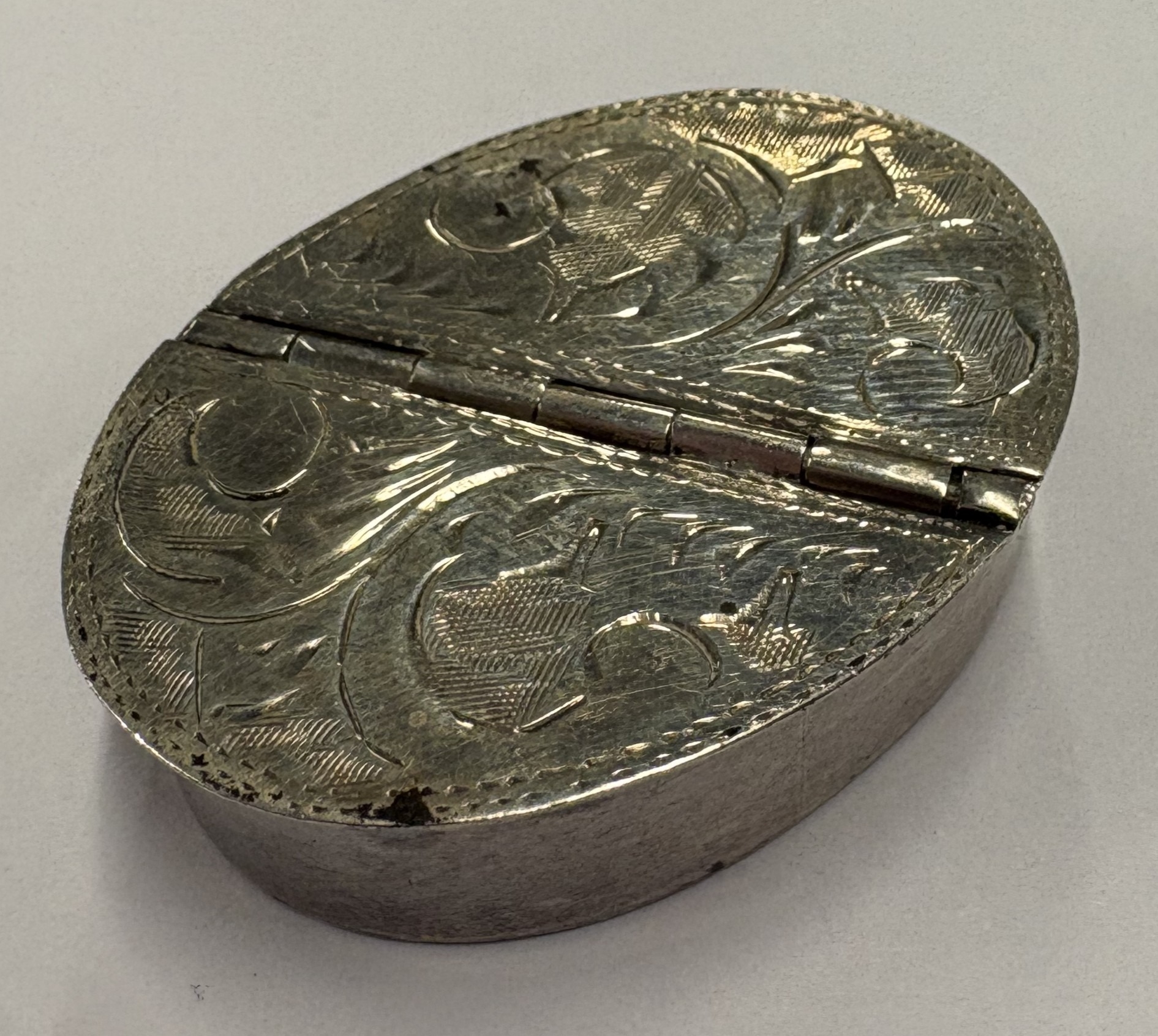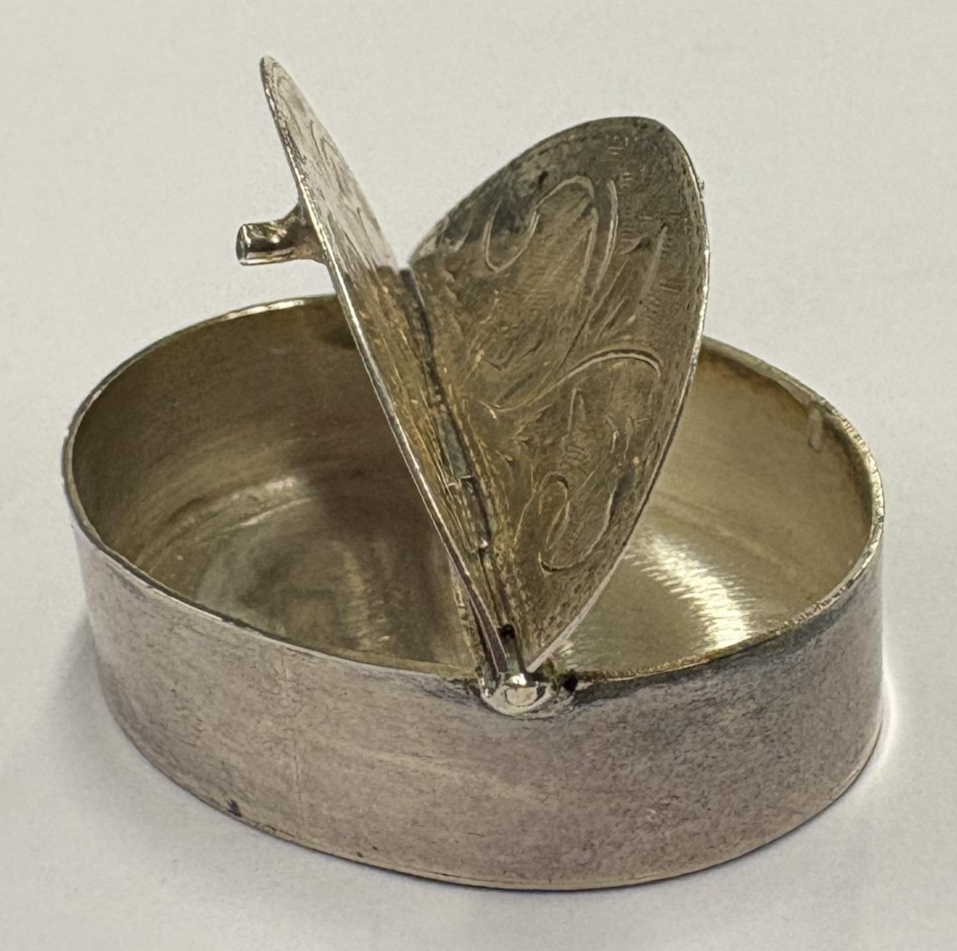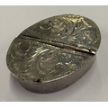 A double-opening silver pill box with engraved decoration. London 1996. Approx. 18 grams. Est. £50 - £80.