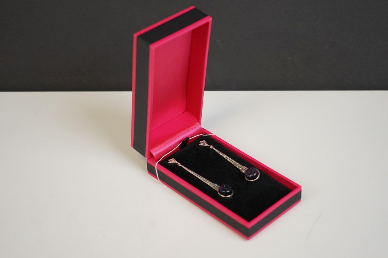 Pair of silver marcasite drop earrings