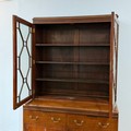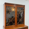 A 20th century Chinese hardwood display Cabinet/Bookcase, the moulded cornice above astragal glazed doors, the base raised upon cabriole claw supports, finished with brass escutcheons and swing handles, W 106 cm x H 200 cm x D 53 cm.