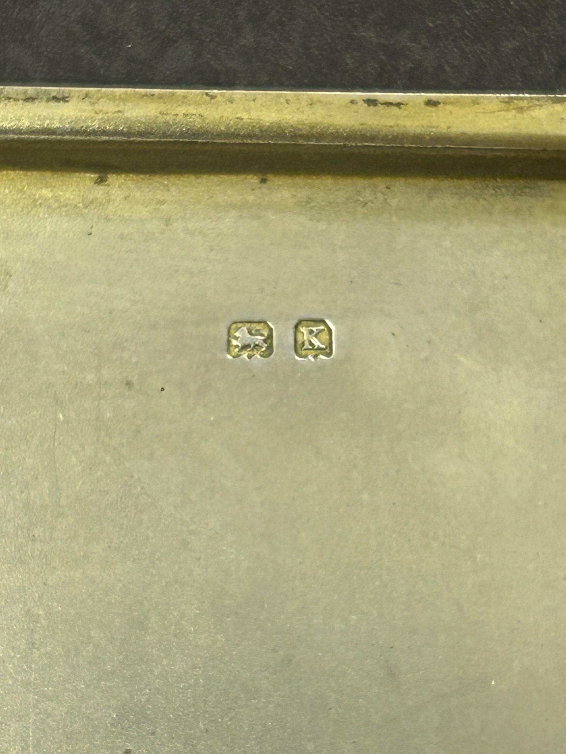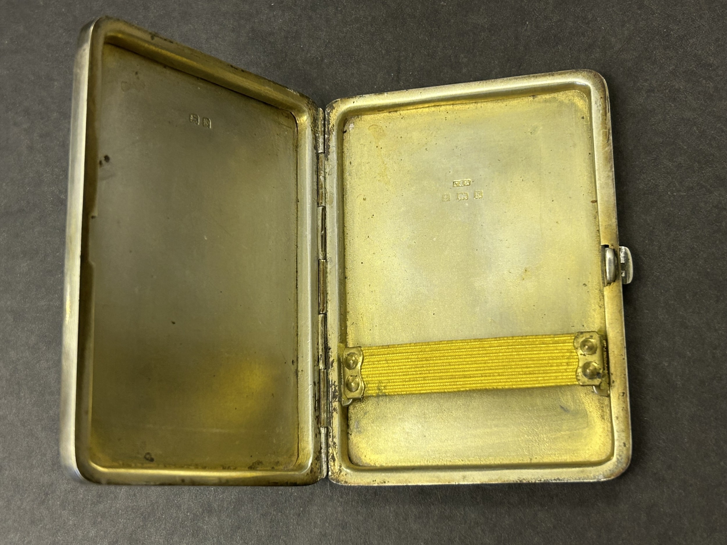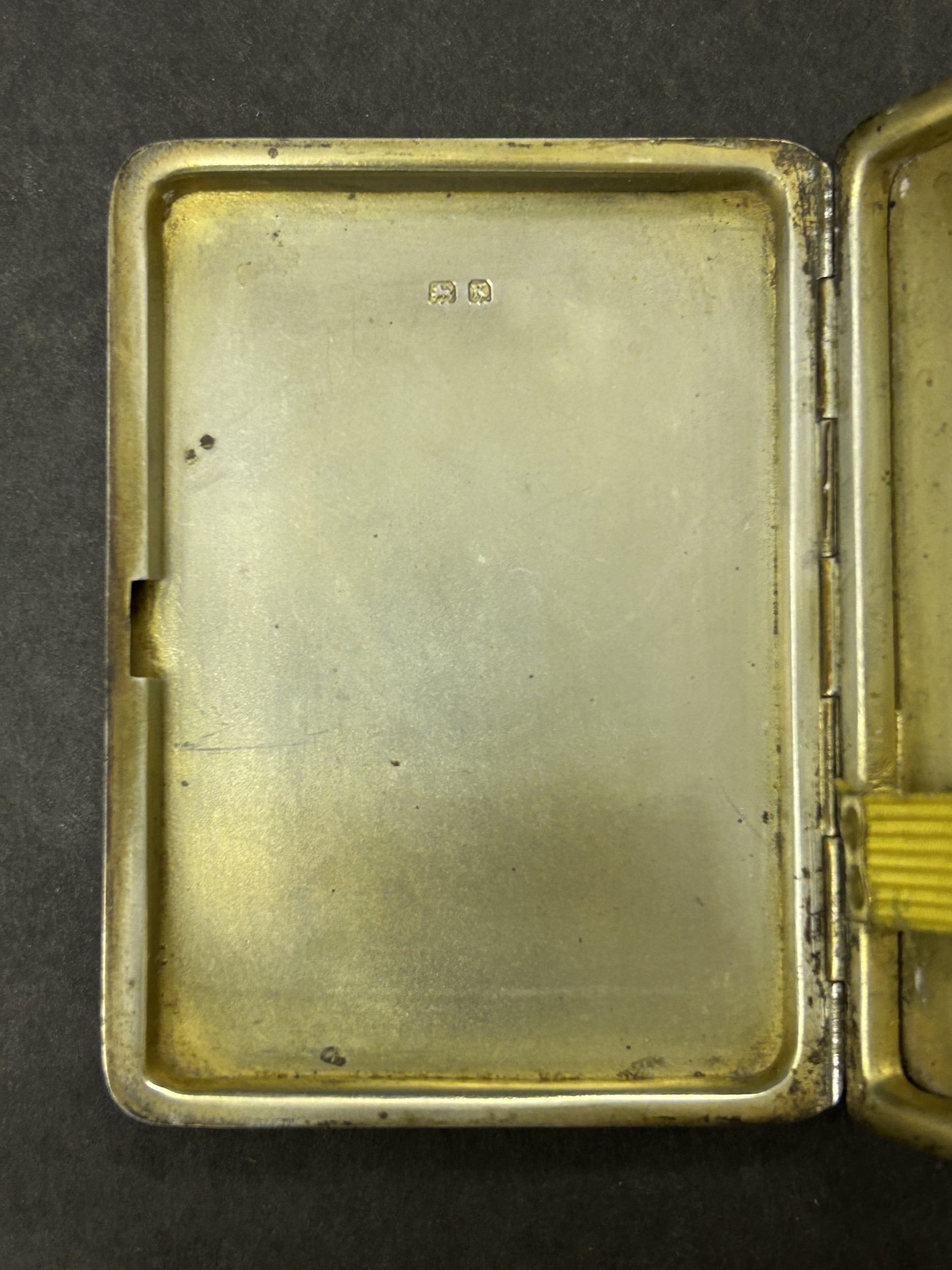 A hallmarked silver and blue enamel cigarette case, just over 3" long, total weight approx. 109g (loss to enamel on one corner and chip on another corner)