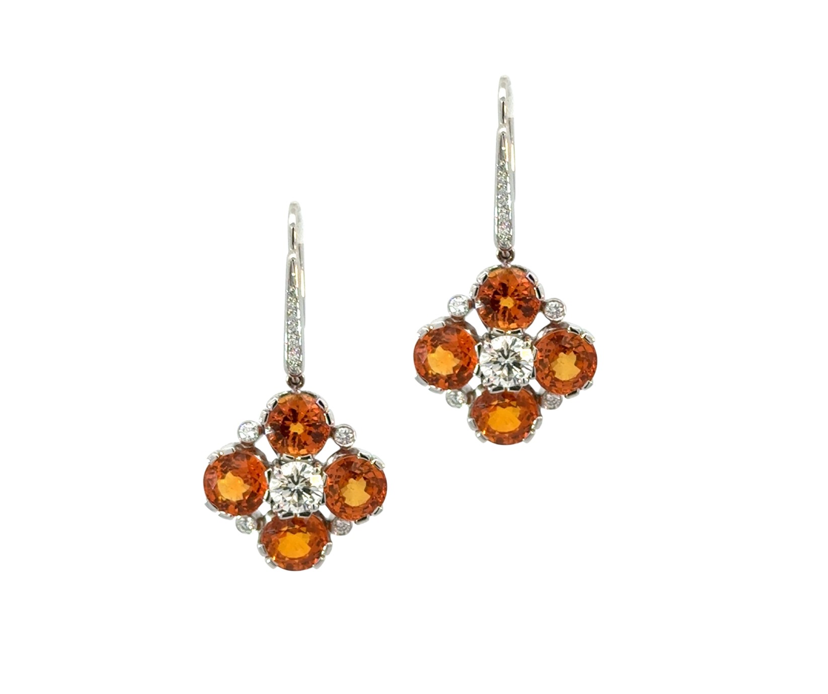 Natural Yellow Sapphire & Diamond Drop Earrings A pair of floral natural yellow sapphire and diamond drop earrings. Approximately 11ct of natural yellow sapphires, and 1.03ct of natural diamonds. Excellent condition.