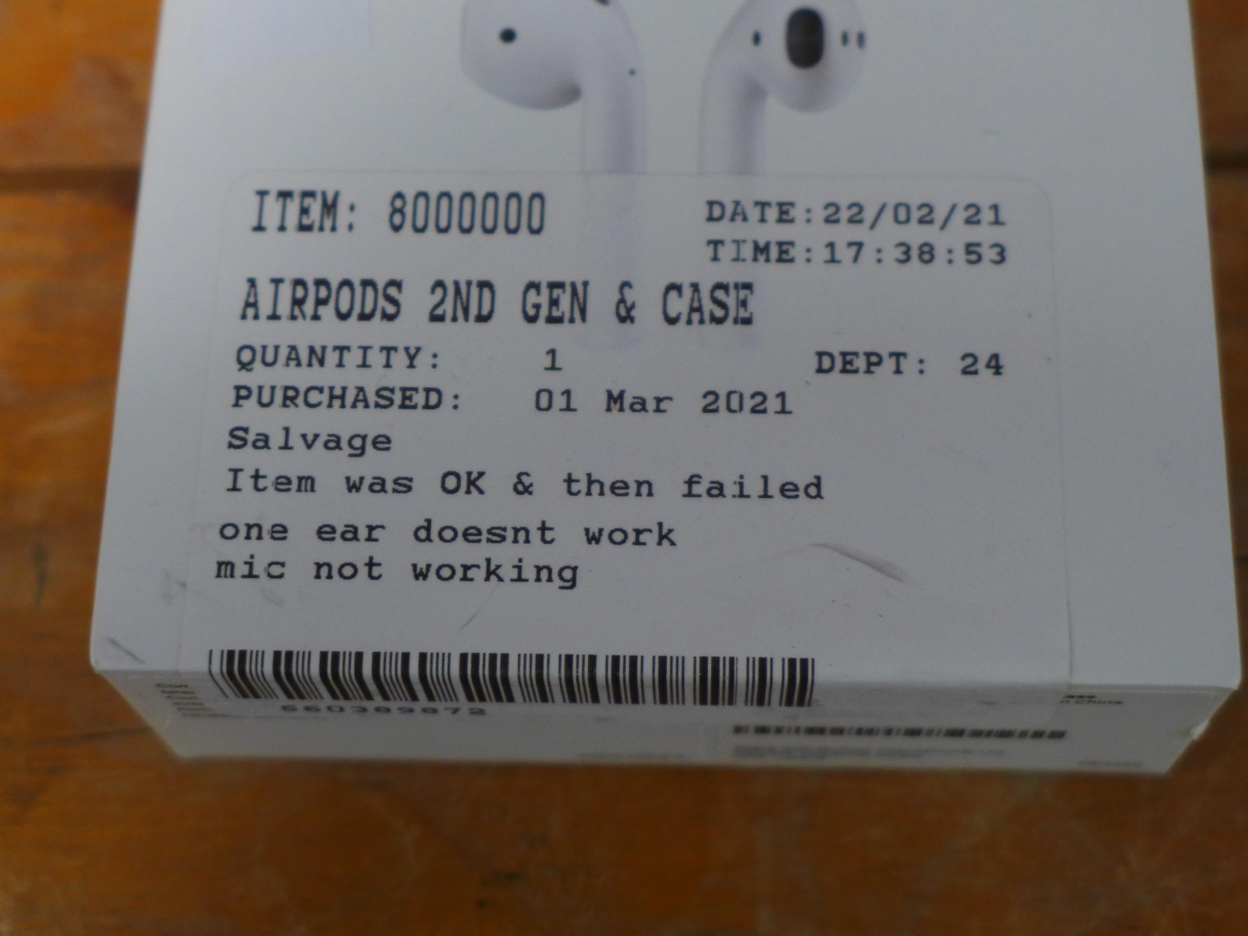 Airpods 2Nd Gen & Case - Mv7N2Zma , (249-463) * This lot is subject to vat