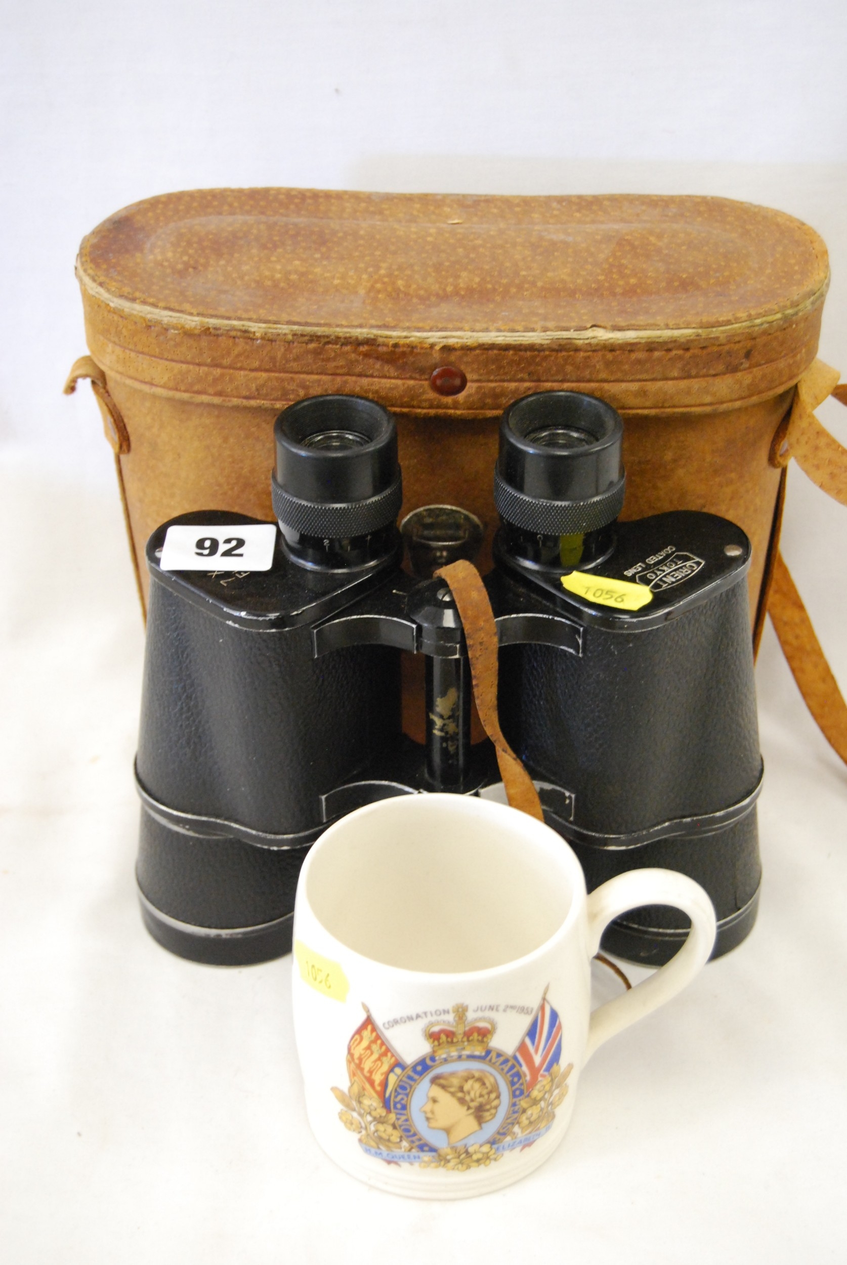 ORIENTAL PAIR OF 7 X 50 BINOCULARS IN CASE AND QUEEN ELIZABETH II 1953 CORONATION MUG