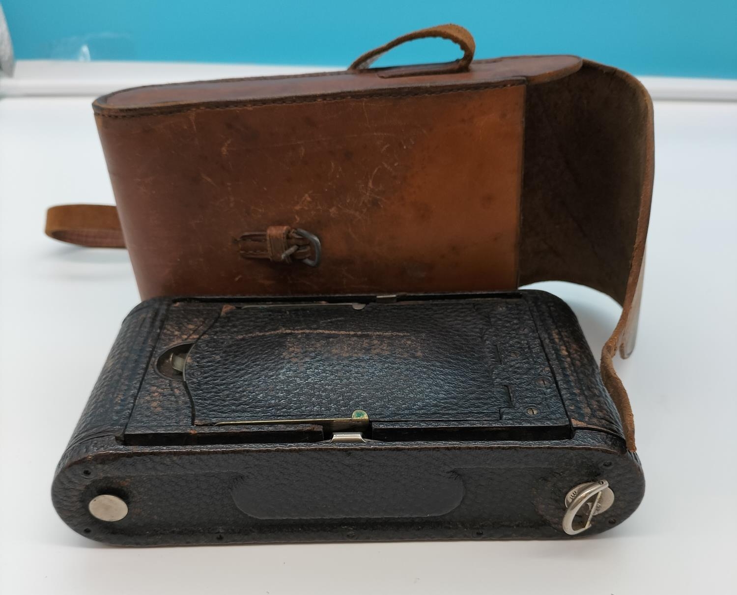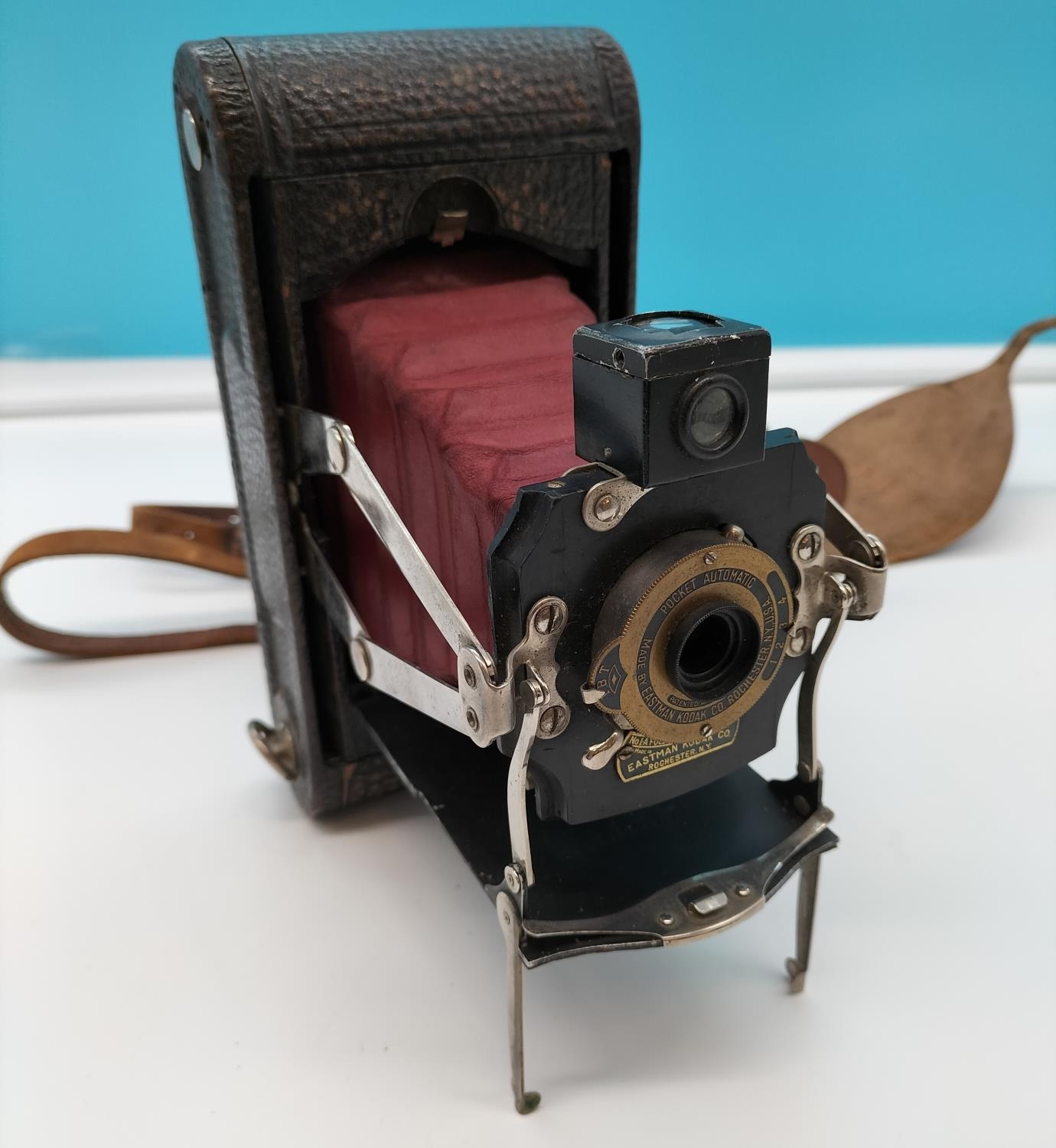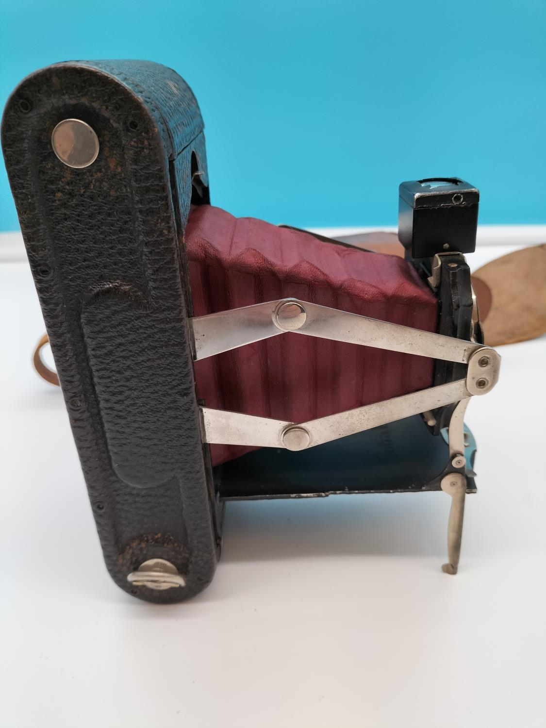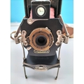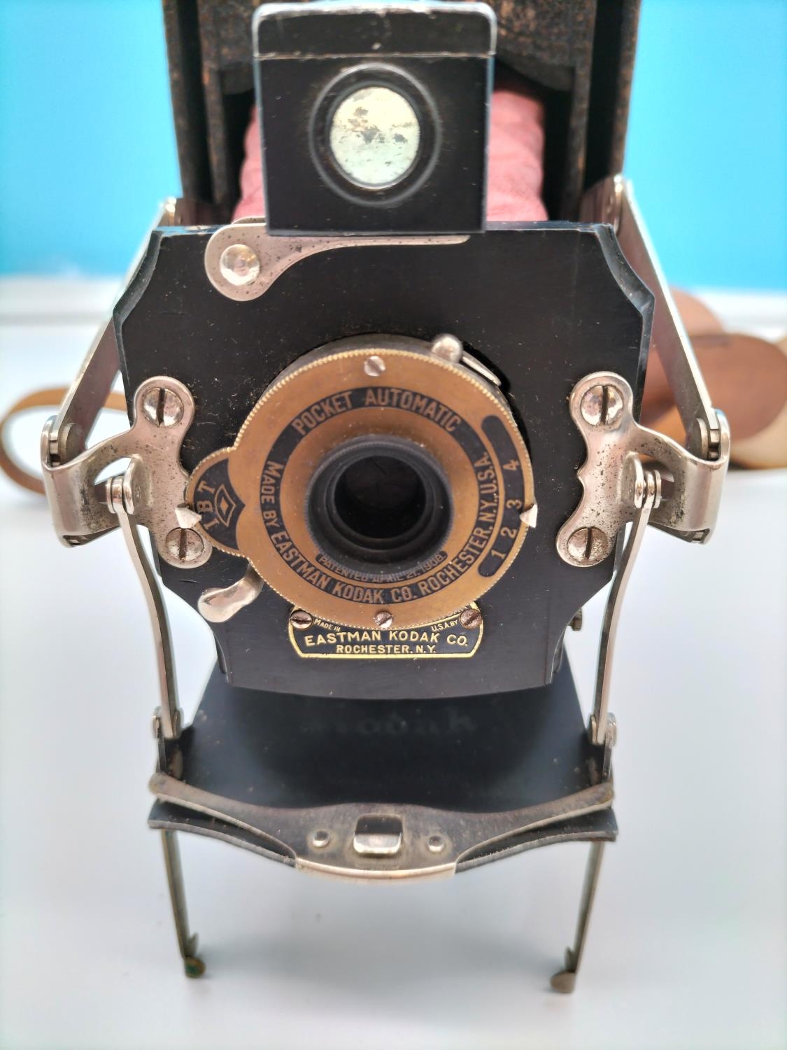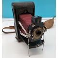 Eastman Kodak Pocket Camera with Maroon Coloured Bellows and Brass Front. Cased.