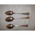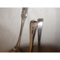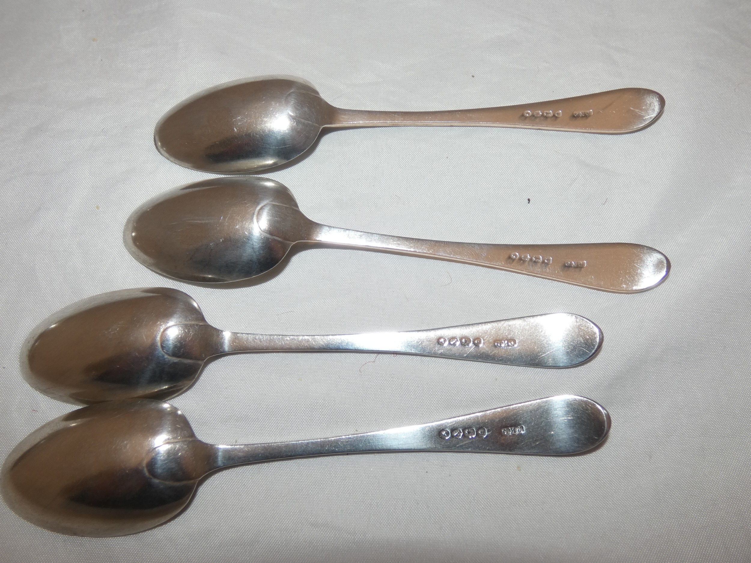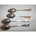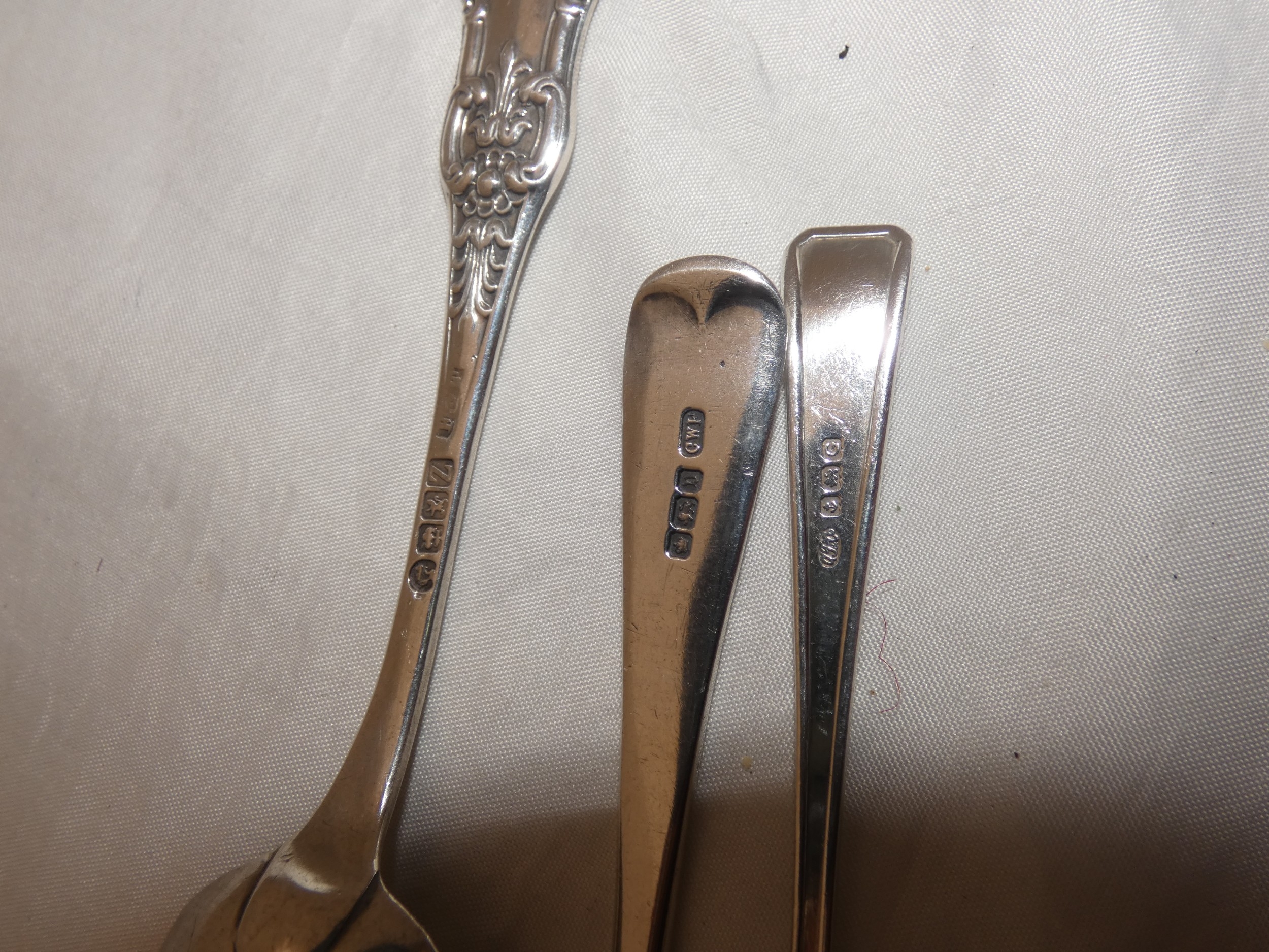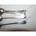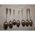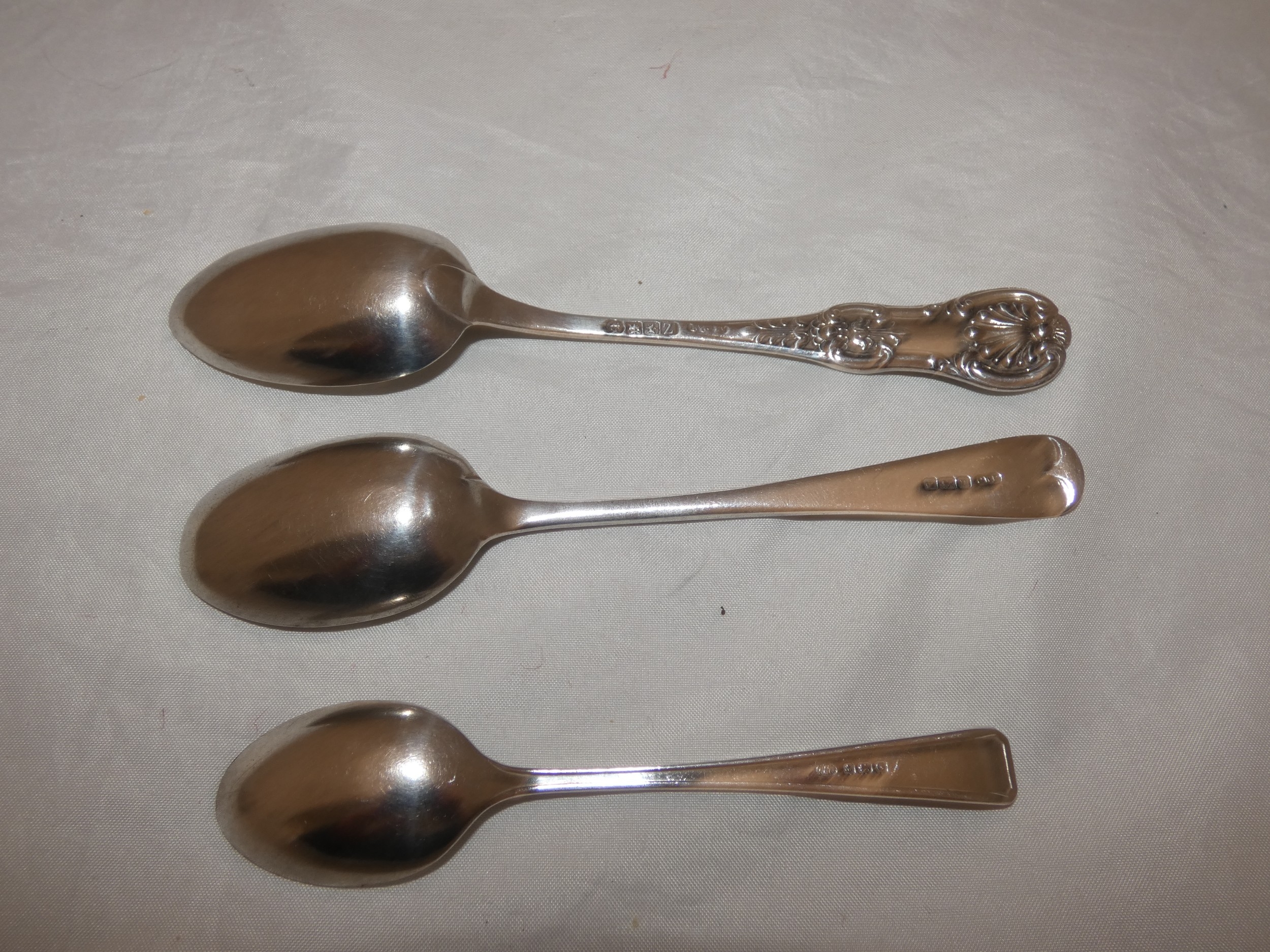 19th century Scottish silver spoon, Glasgow marks, two other silver spoons marked for Birmingham and Sheffield, and a set of four matching Victorian silver teaspoons, London marks, 129g gross. (7)