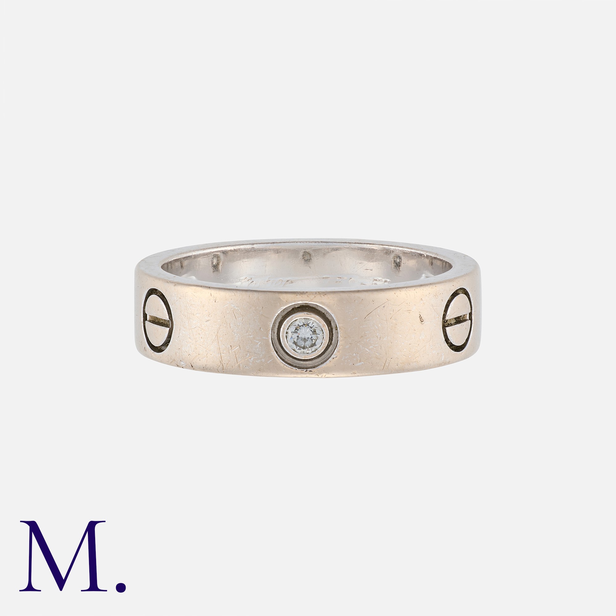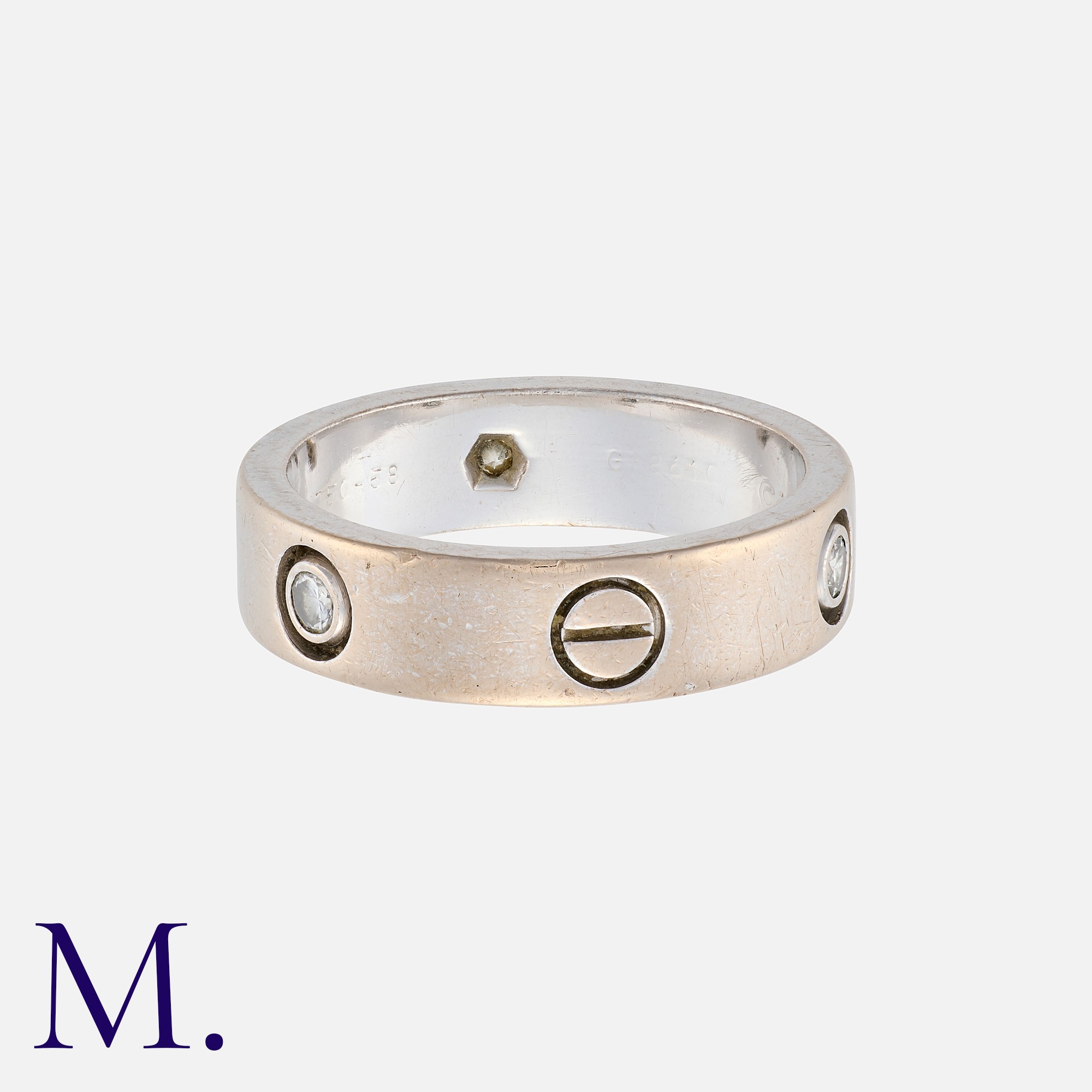 CARTIER. A Classic 3-Diamond Love Ring in 18K white gold set with three diamonds. Signed and serial numbered. With box and Cartier certificate (matching serial number).