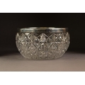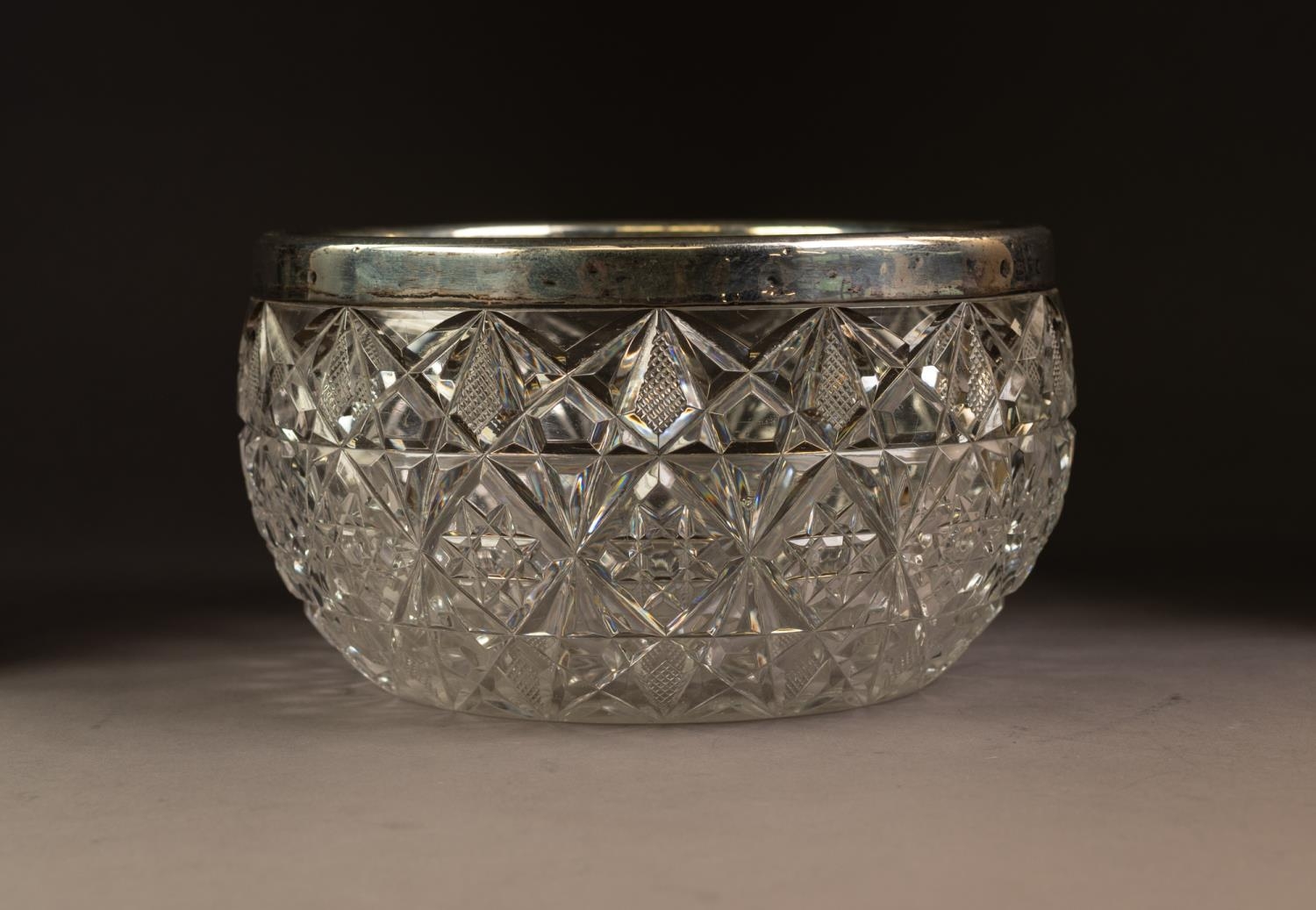 VICTORIAN CUT GLASS SALAD BOWL WITH SILVER RIM, 5” (12.7cm) high, 8 ½” (21.6cm) diameter, Birmingham 1898
