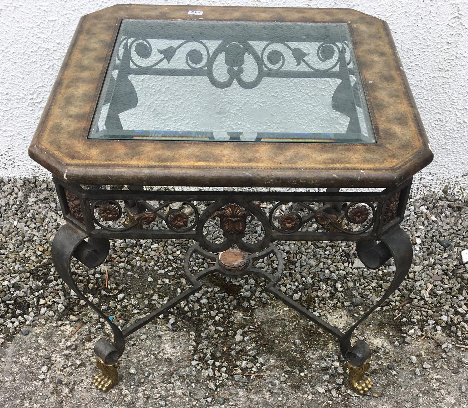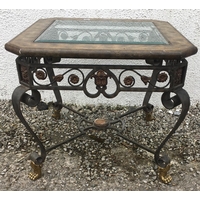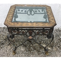 A lovely Metal Coffee Table with a timber top. 74 x 74 cms approx. No glass.