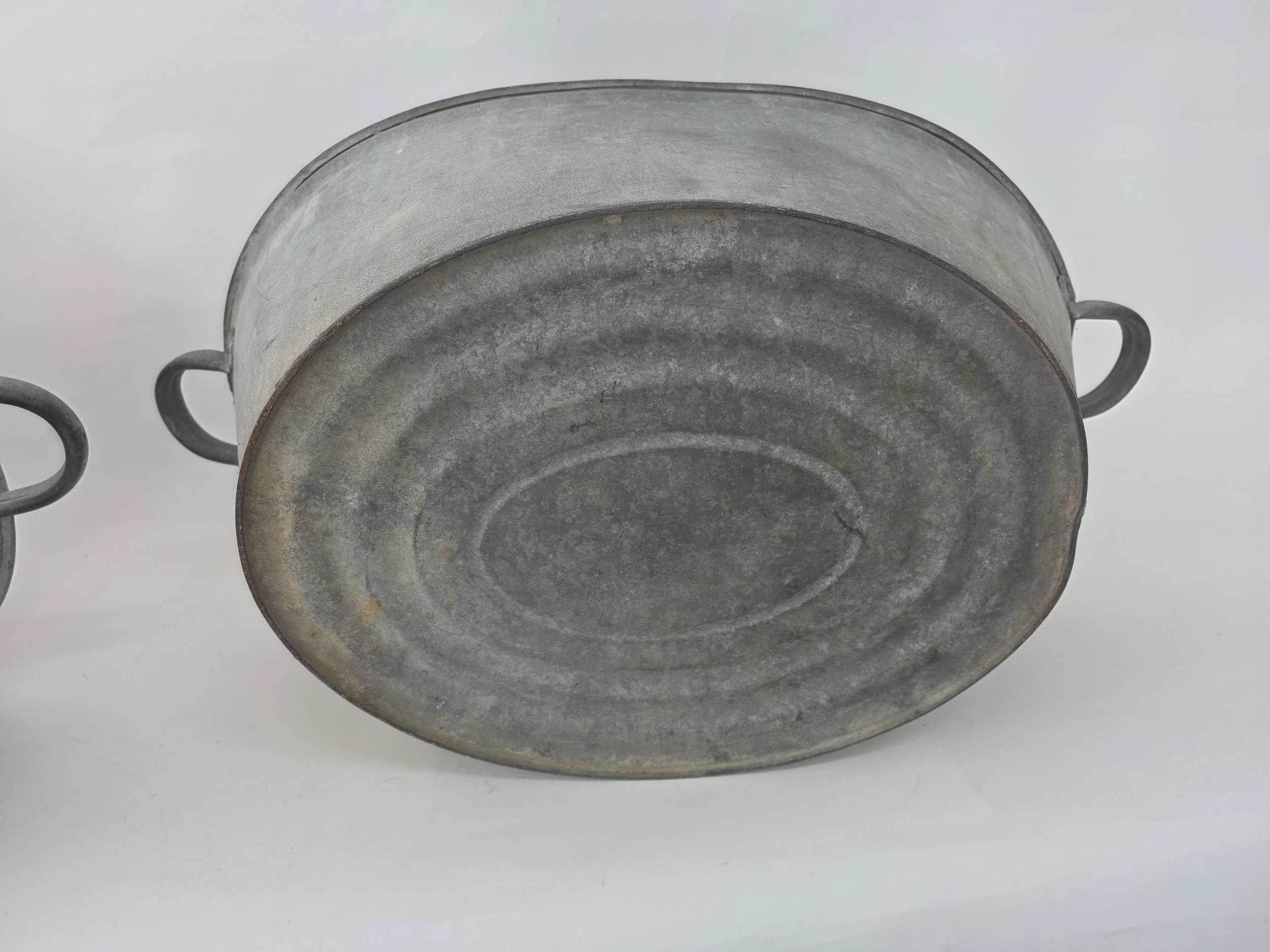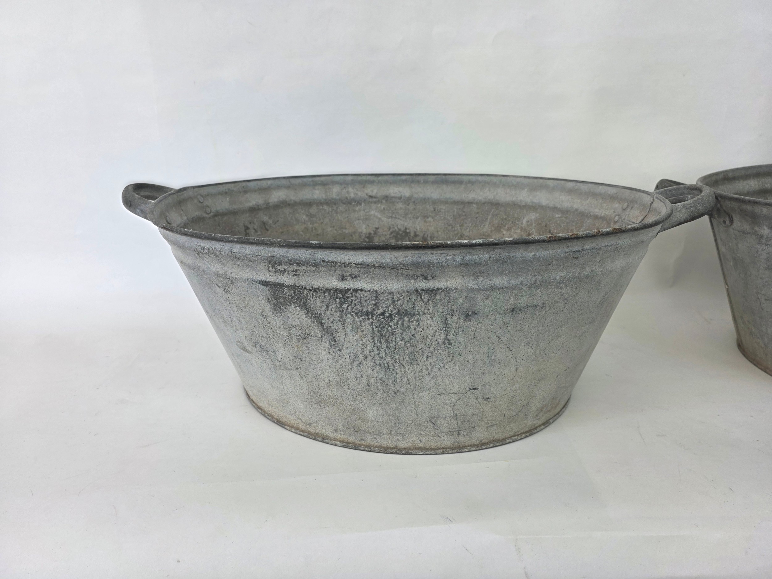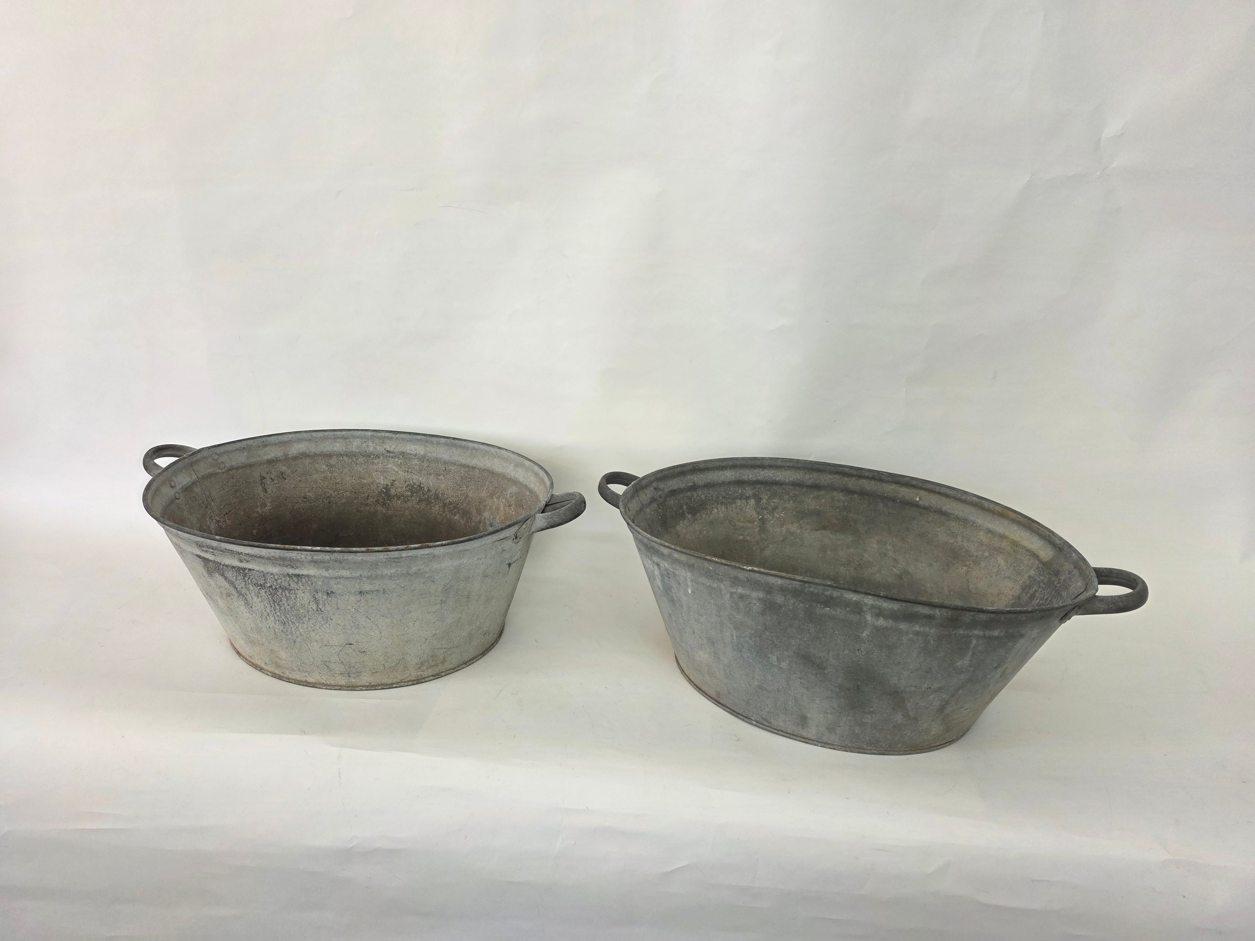 A pair of vintage galvanised metal baths 63cm (L) 35cm (W) 22cm (H)