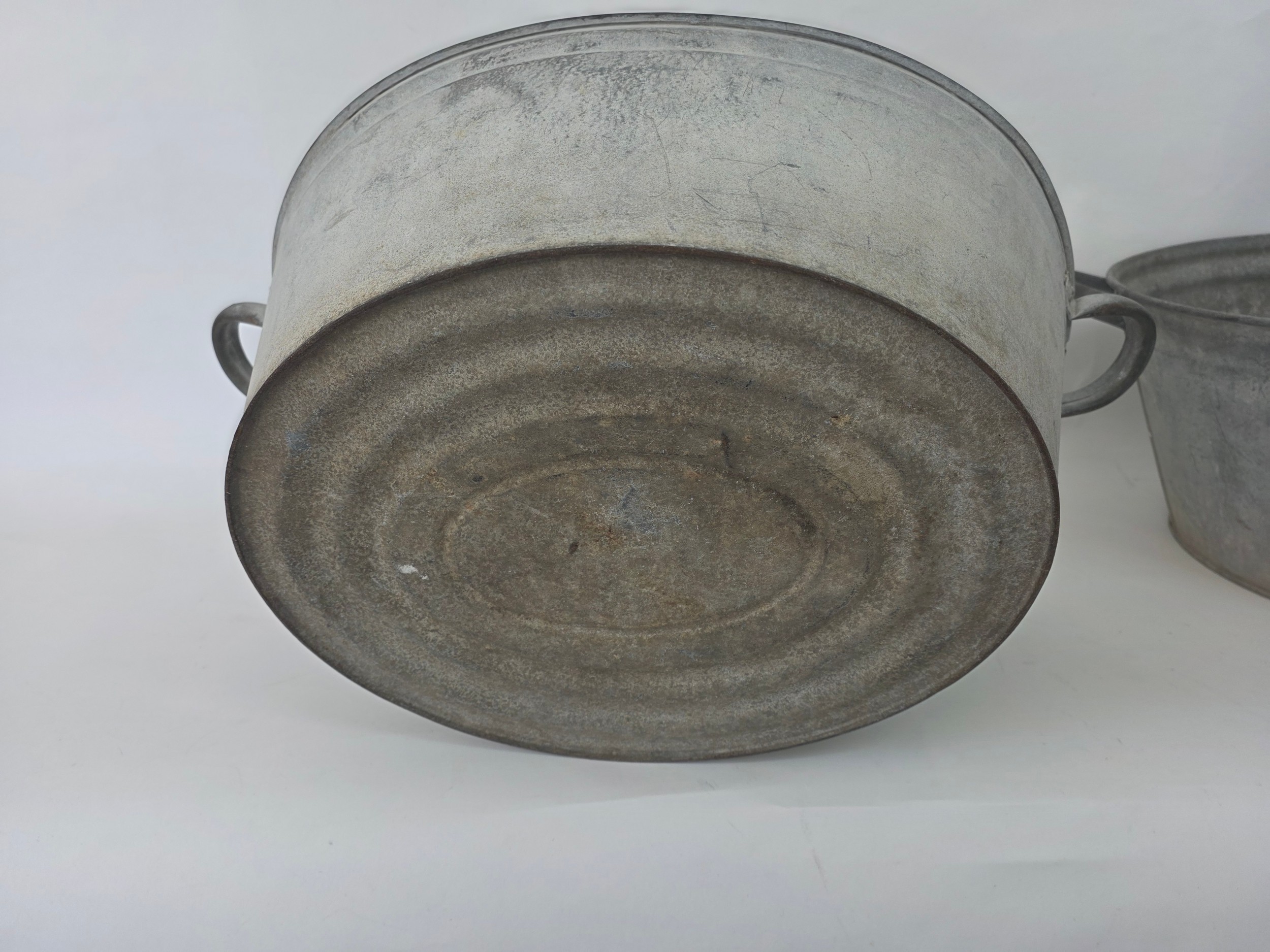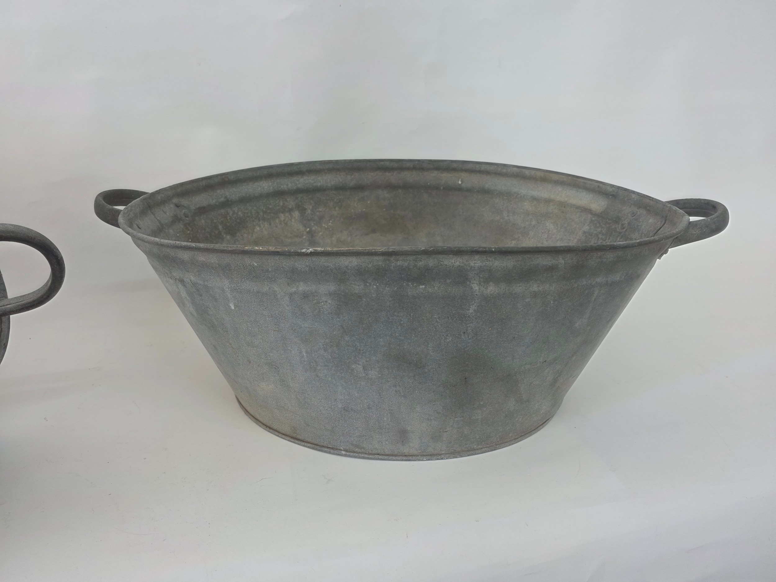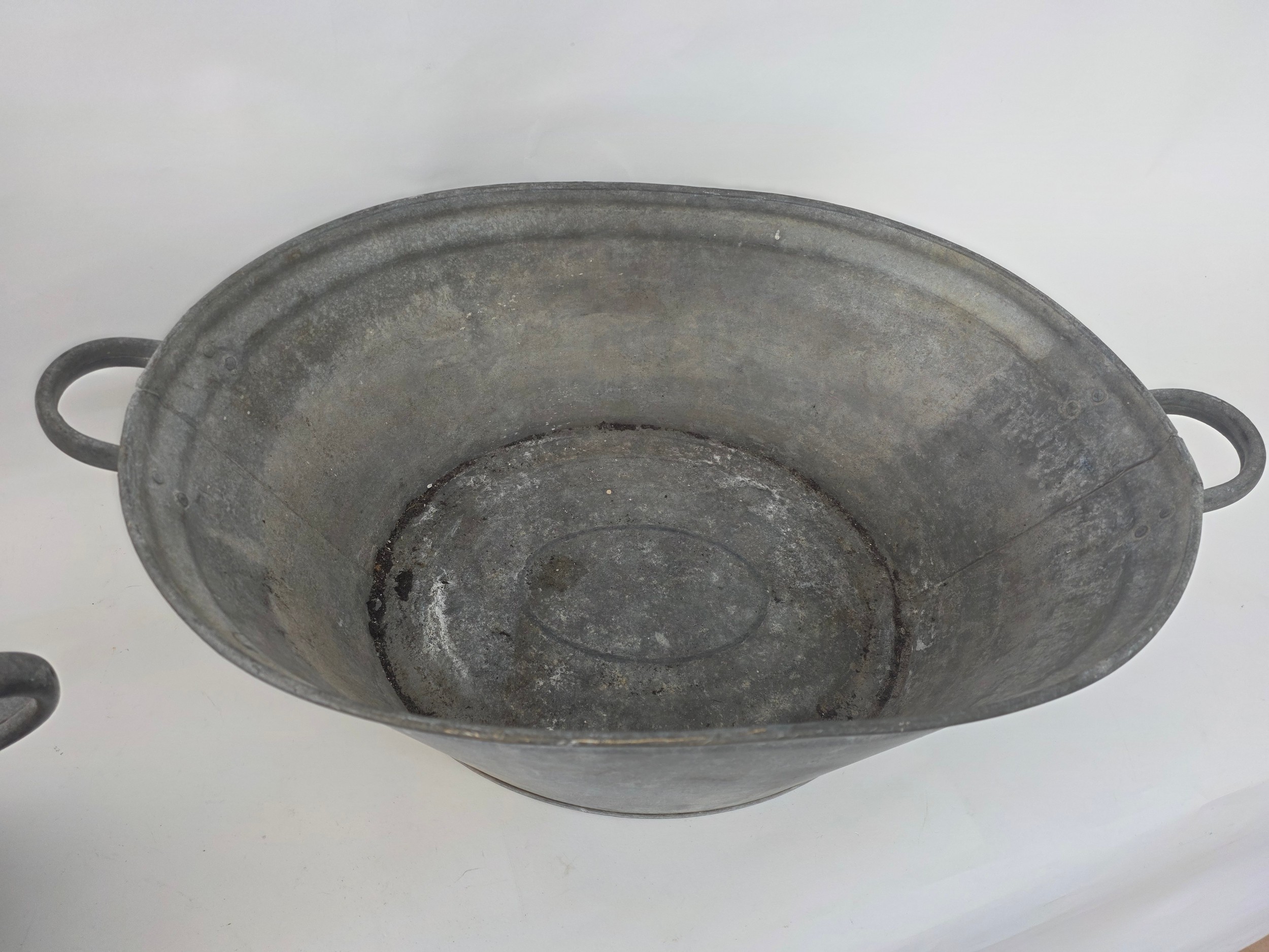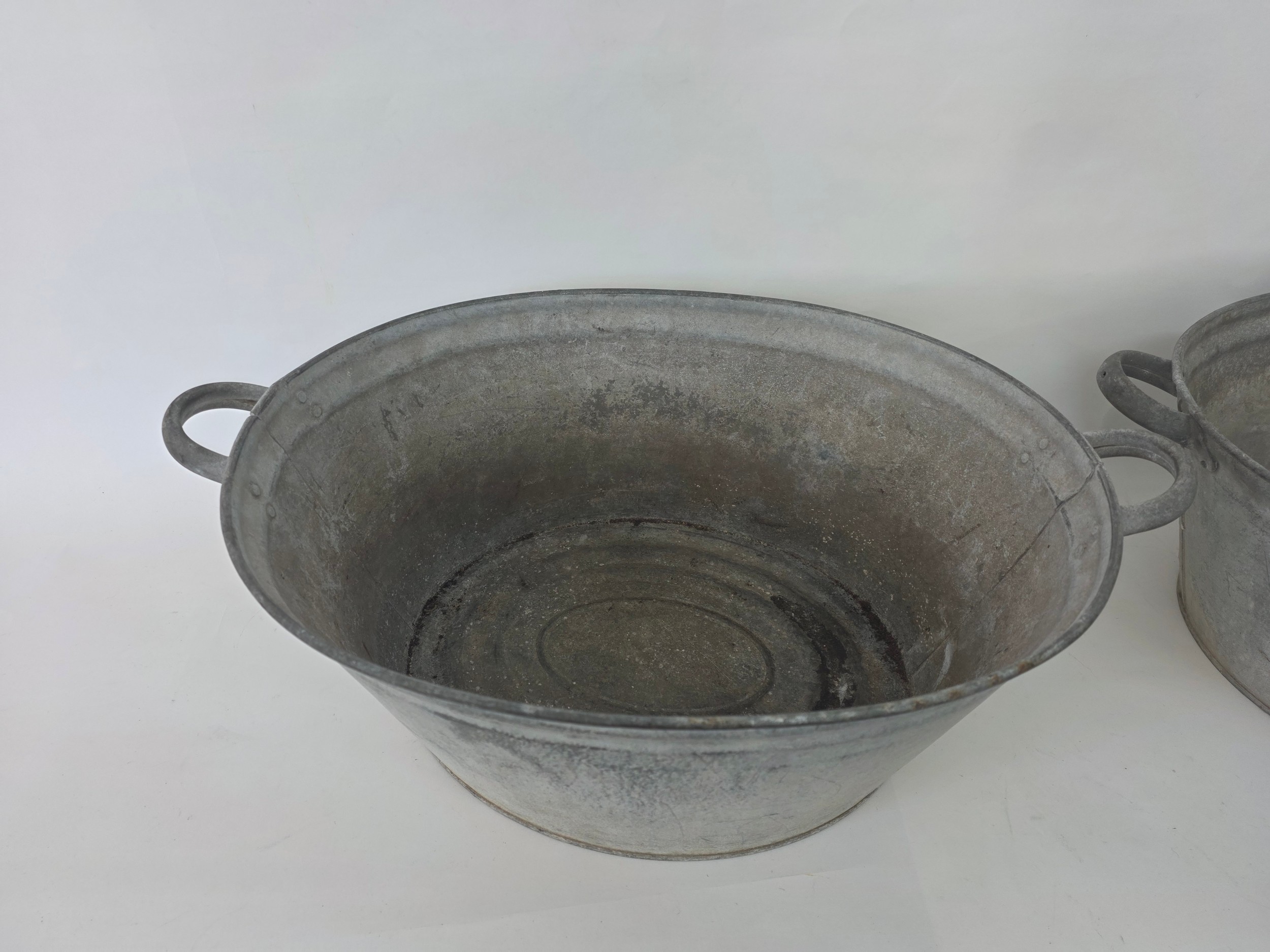 A pair of vintage galvanised metal baths 63cm (L) 35cm (W) 22cm (H)